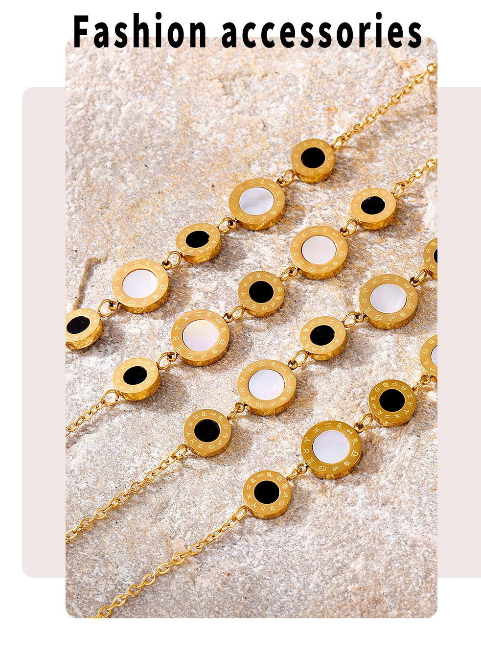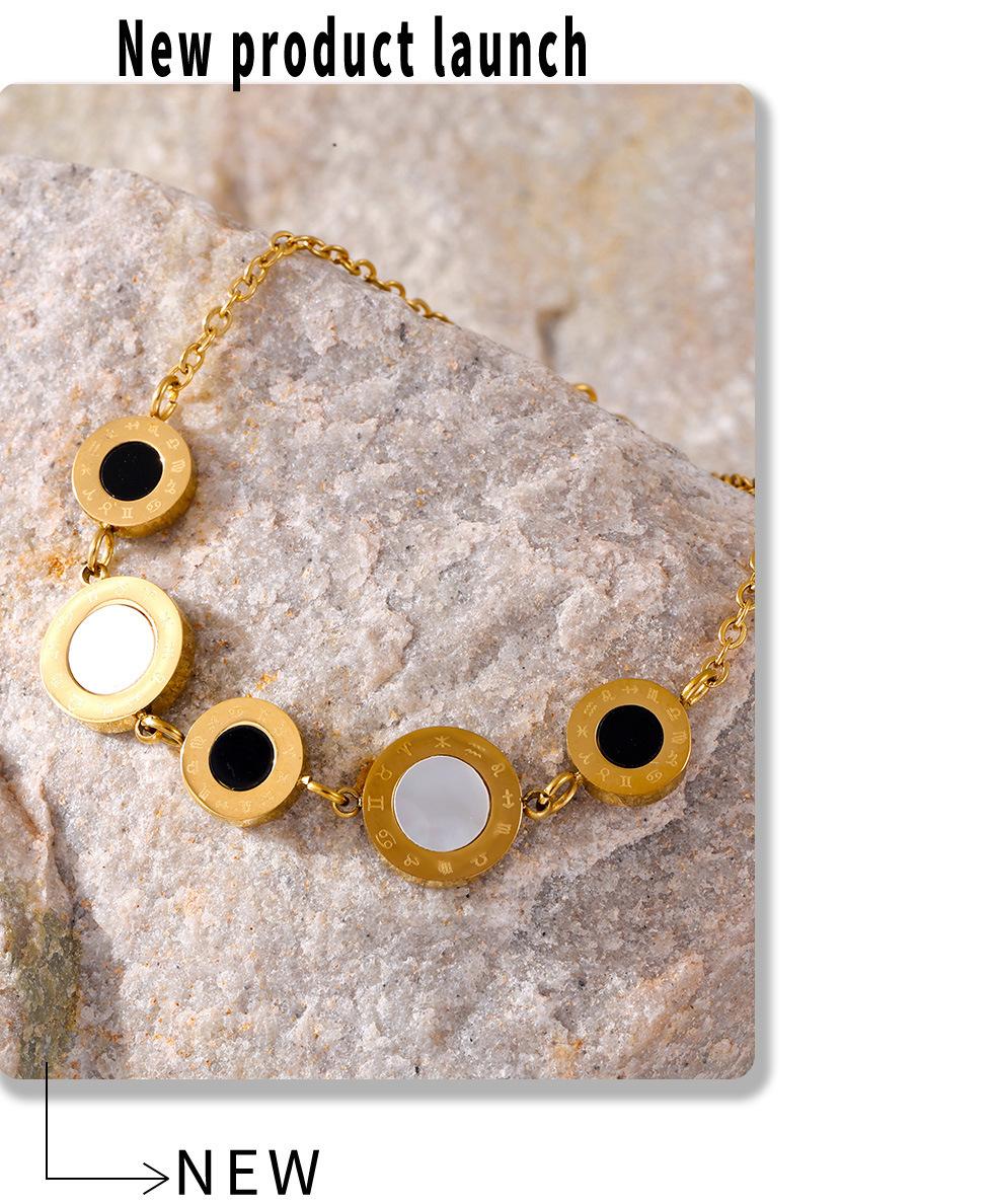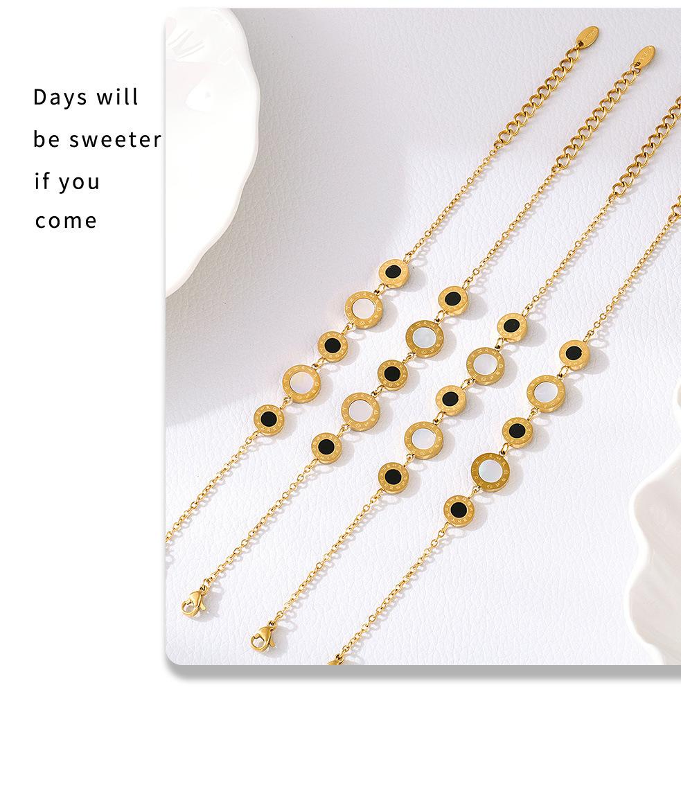 Pulseira Europeia e Americana Estilo Ins Números Romanos Face Única Madrepérola Preto e Branco Design Simples de Nicho Aço Inoxidável Joias Elegantes