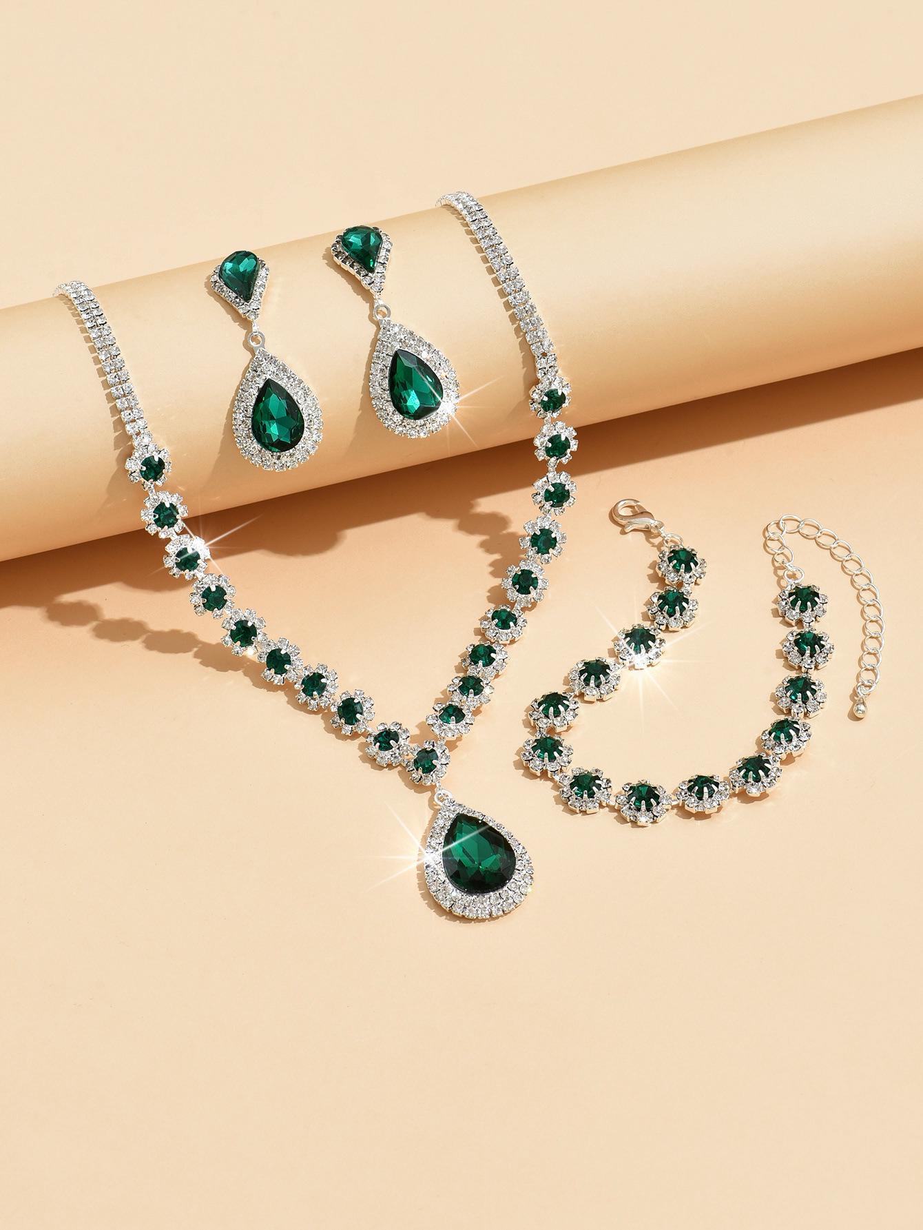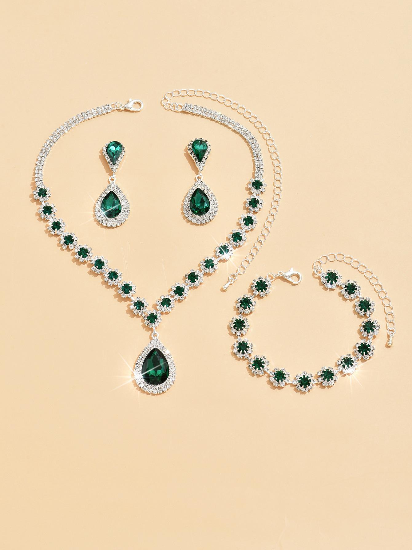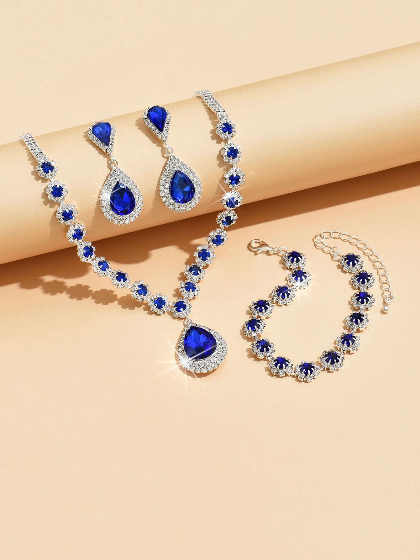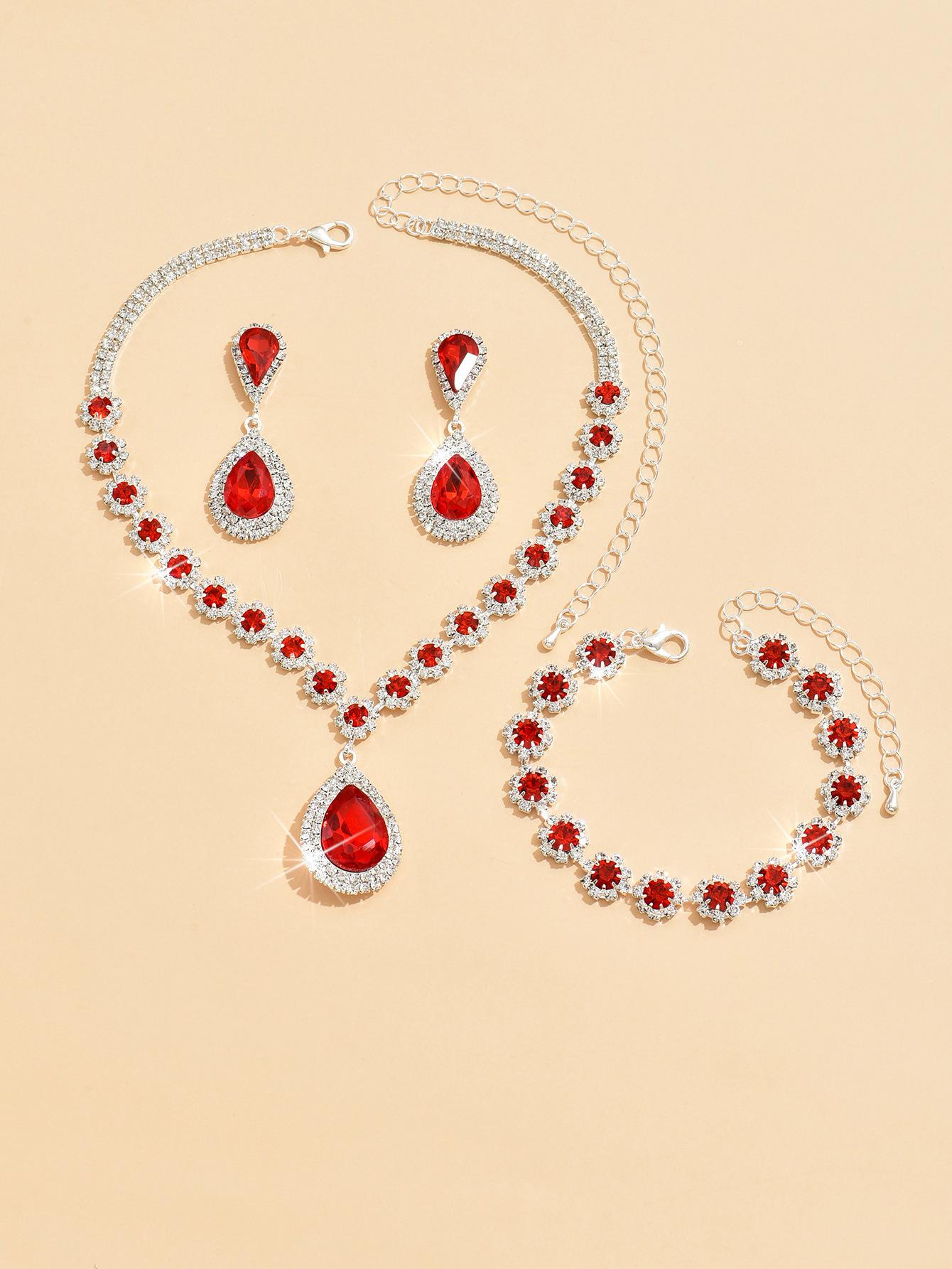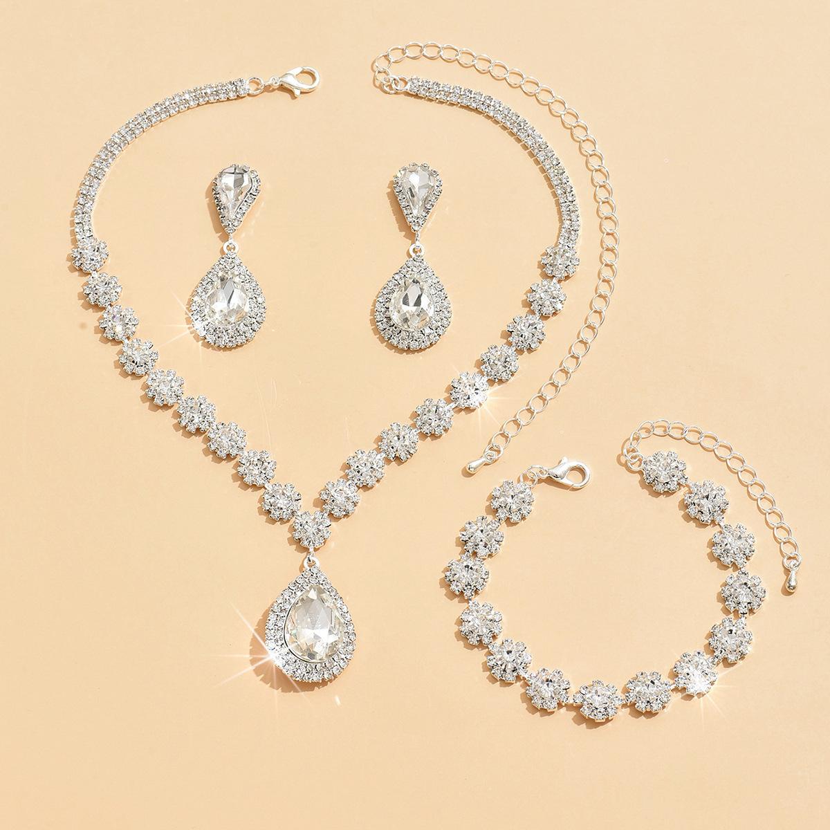 Fábrica atacado casamento nupcial jóias terno colar brincos pulseira três peças diamante cheio flor multicolorido terno