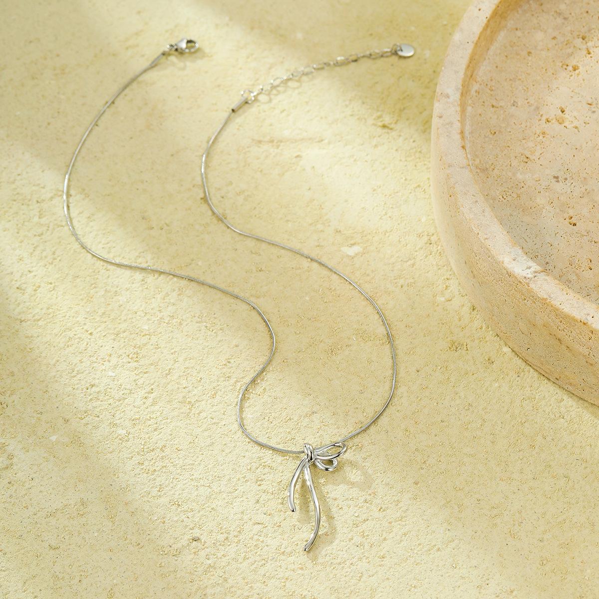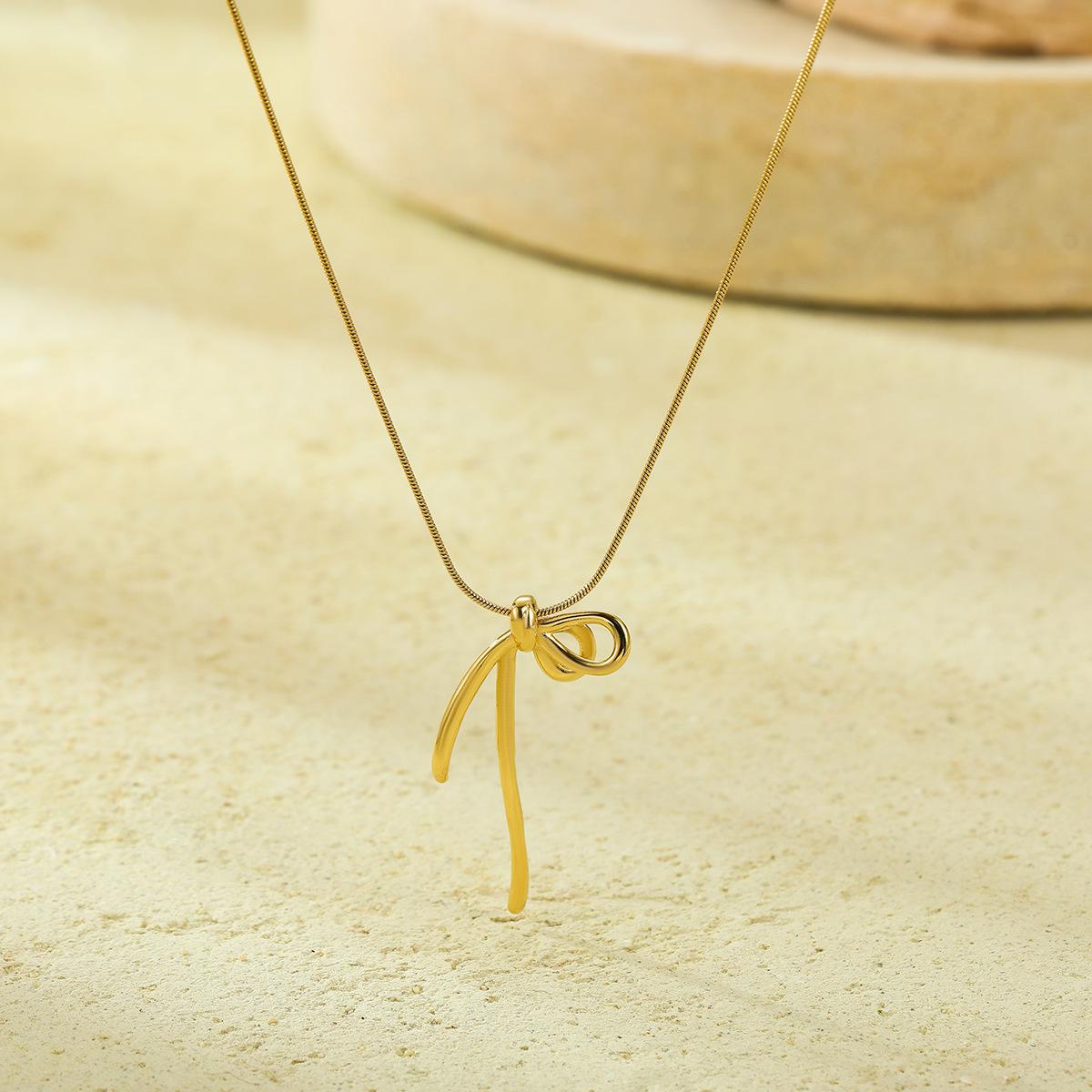 Ins Simples High-end Niche Bow Pingente Colar de Clavícula Moda All-match Aço Inoxidável 18K Banhado a Ouro Jóias