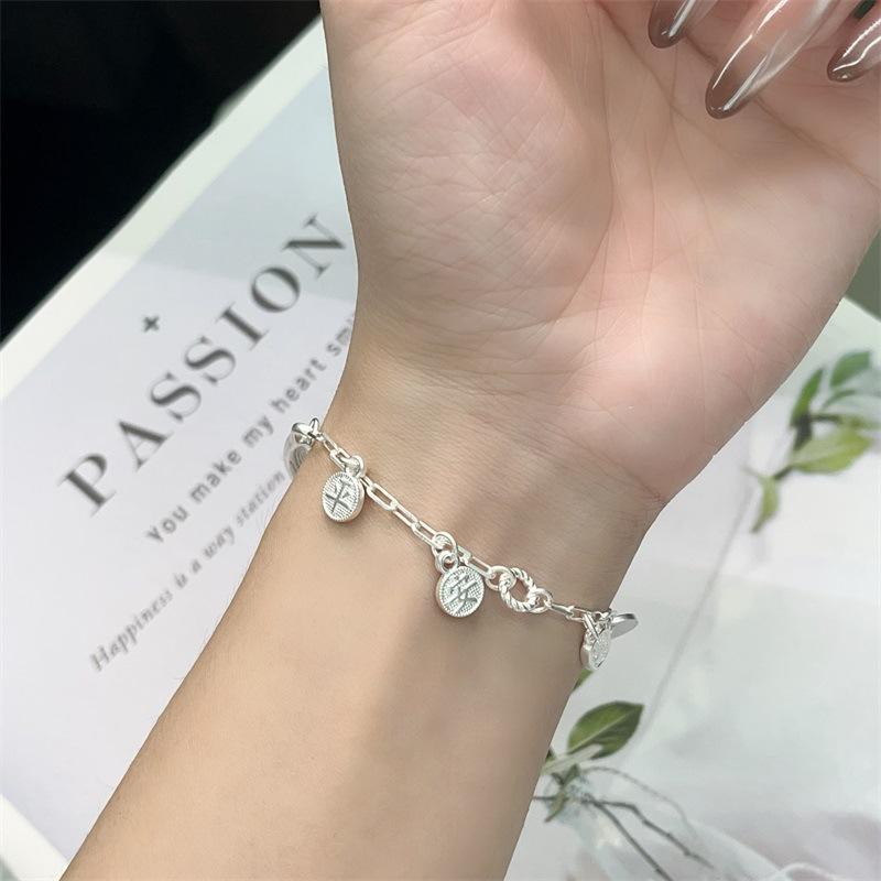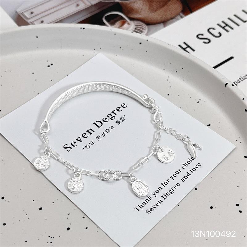 Pulseira de prata esterlina 9999, meia pulseira feminina, personalizada, para todos os gostos, segura, feliz, pulseira fashion, alta qualidade, jovem, pulseira
