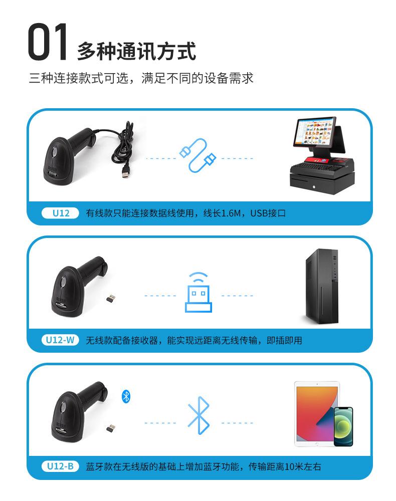 Leitor de código de barras bidimensional com fio sem fio, scanner portátil de supermercado com luz vermelha Express