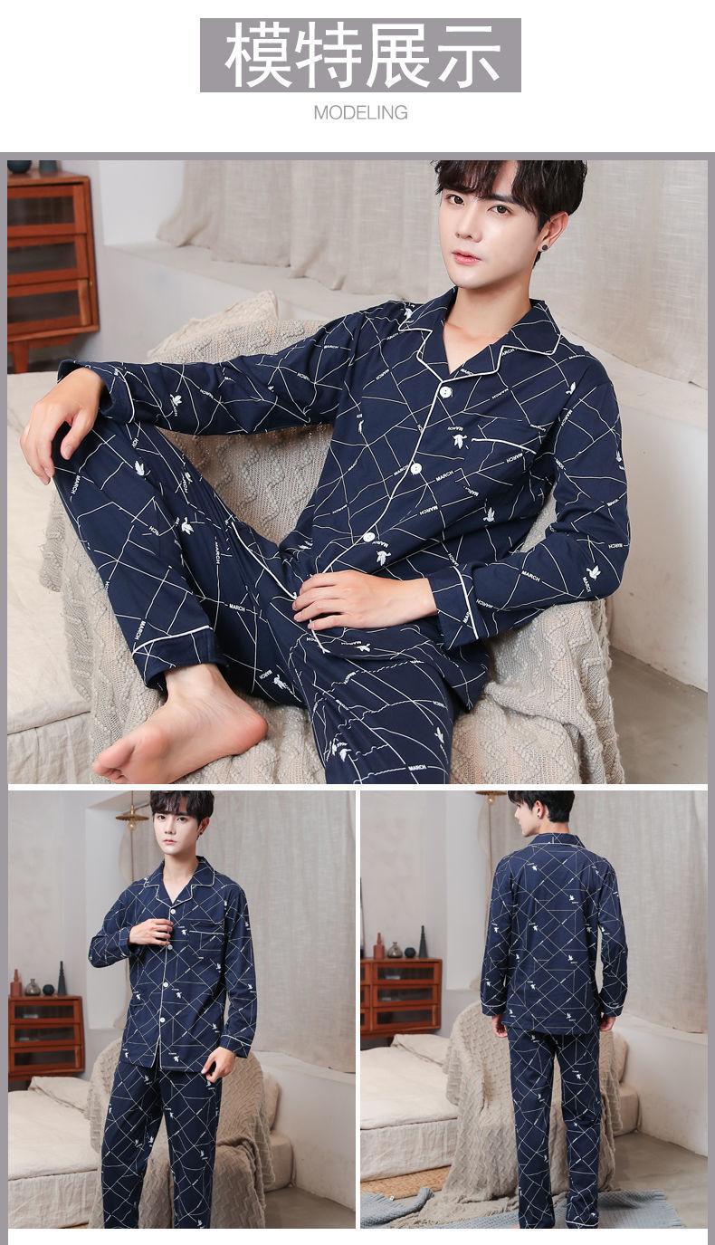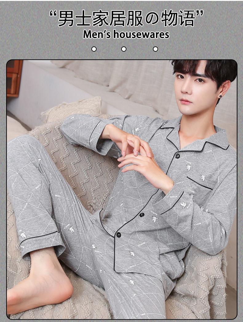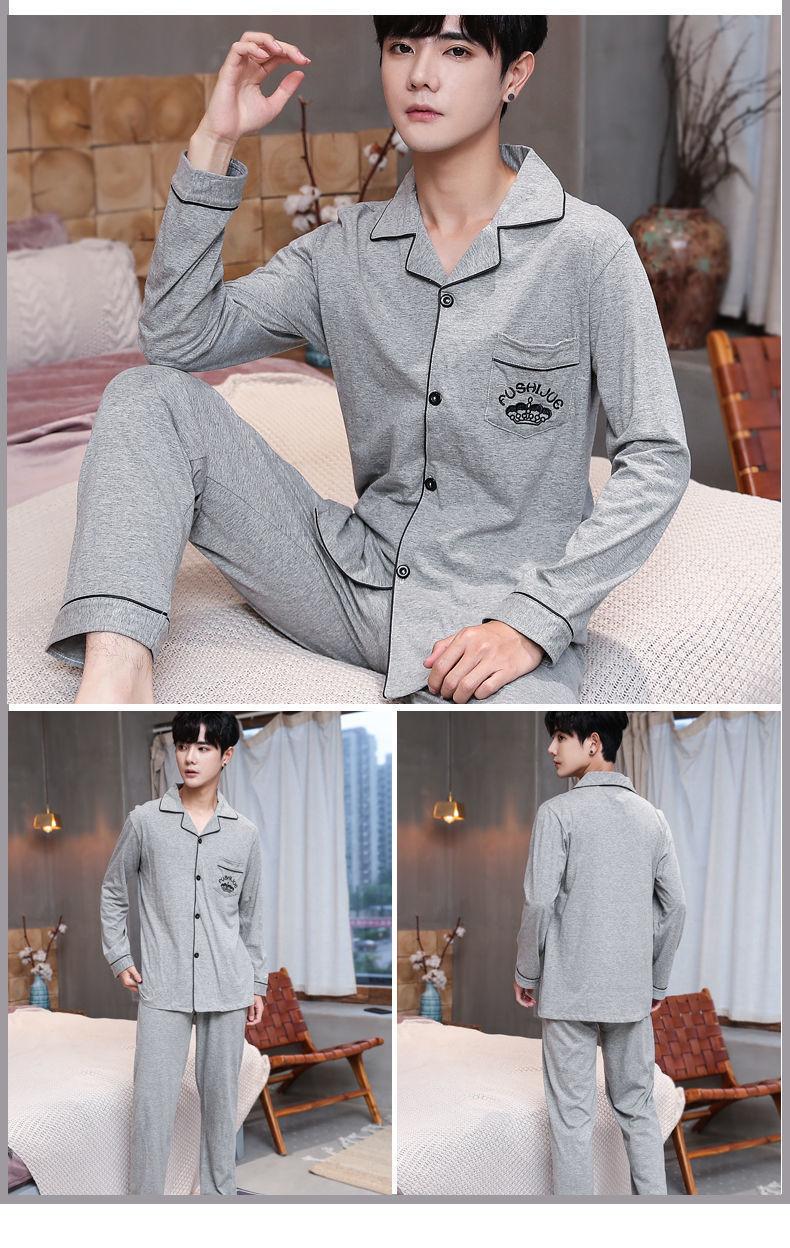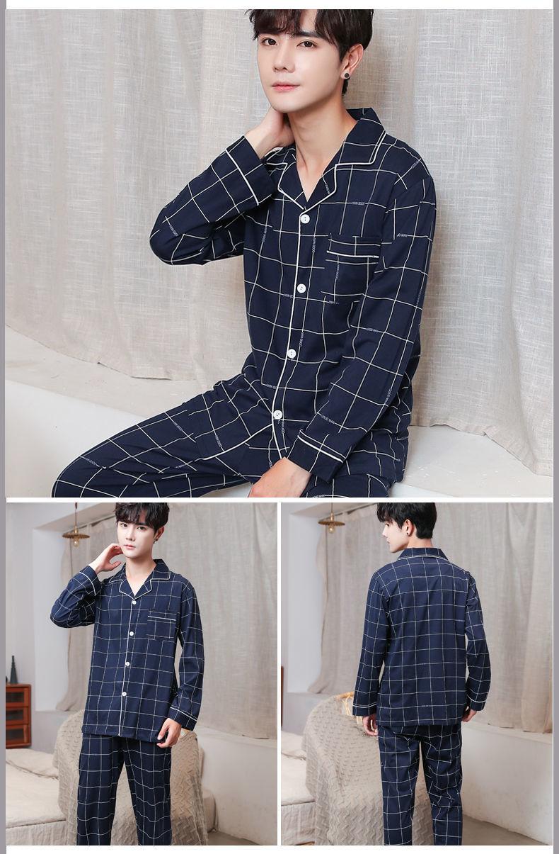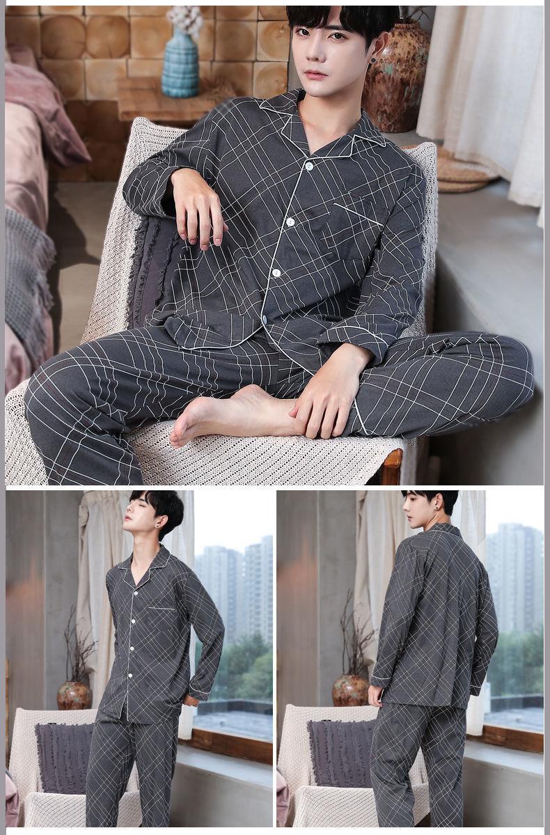 Pijama masculino 100 algodão manga longa primavera outono inverno algodão fino solto casual confortável roupa de casa manga curta terno