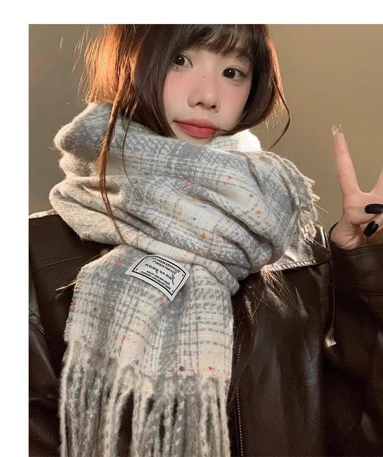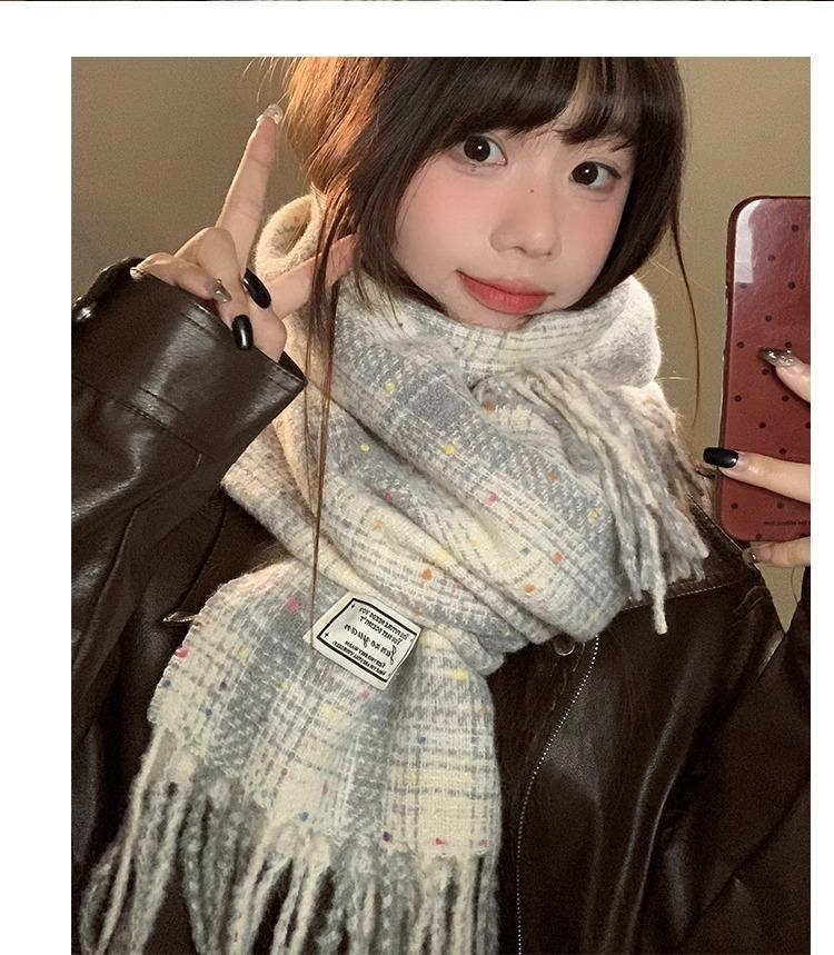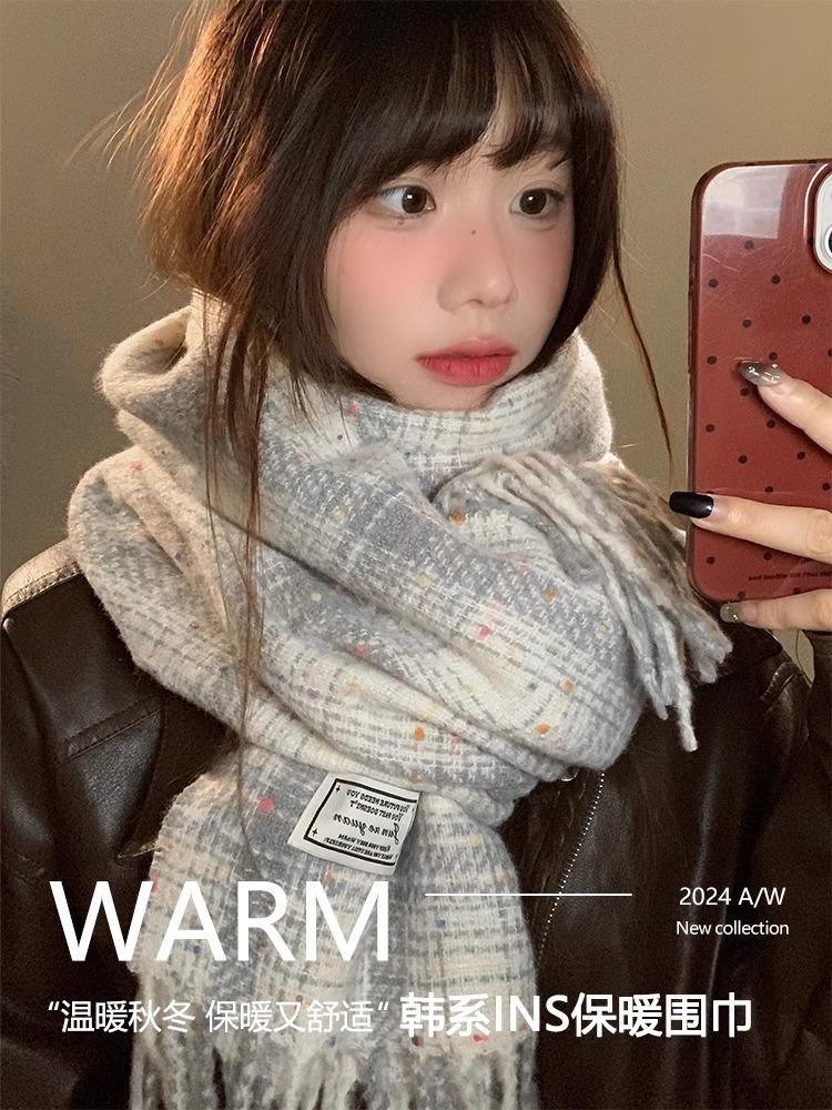 Coreano Ins Cachecol Quente para Mulheres Outono e Inverno 2024 Novo Colorido Bolinhas Imitação Cashmere Xale Versátil e Cachecol Dupla Utilização