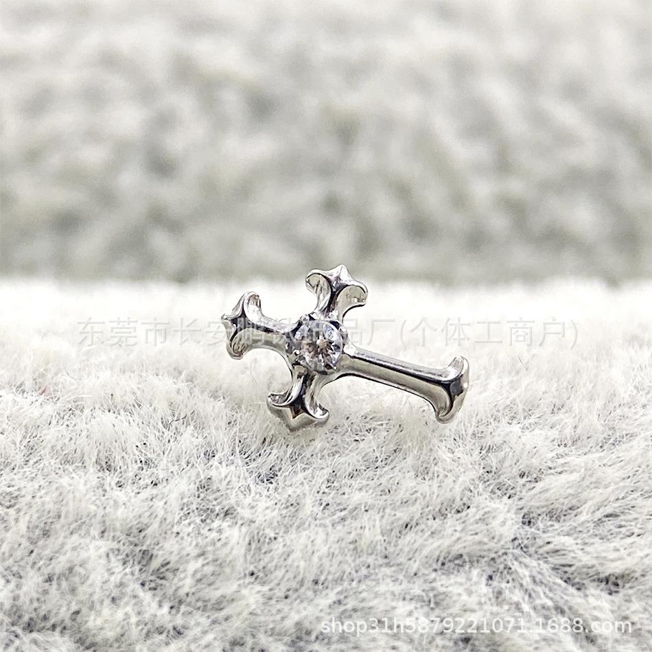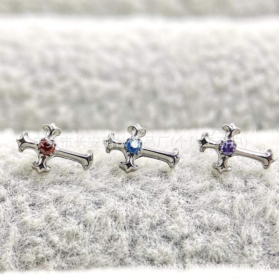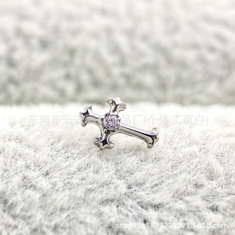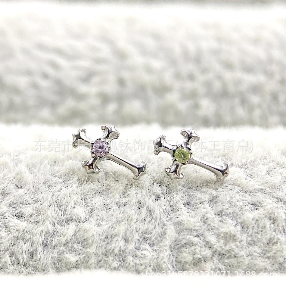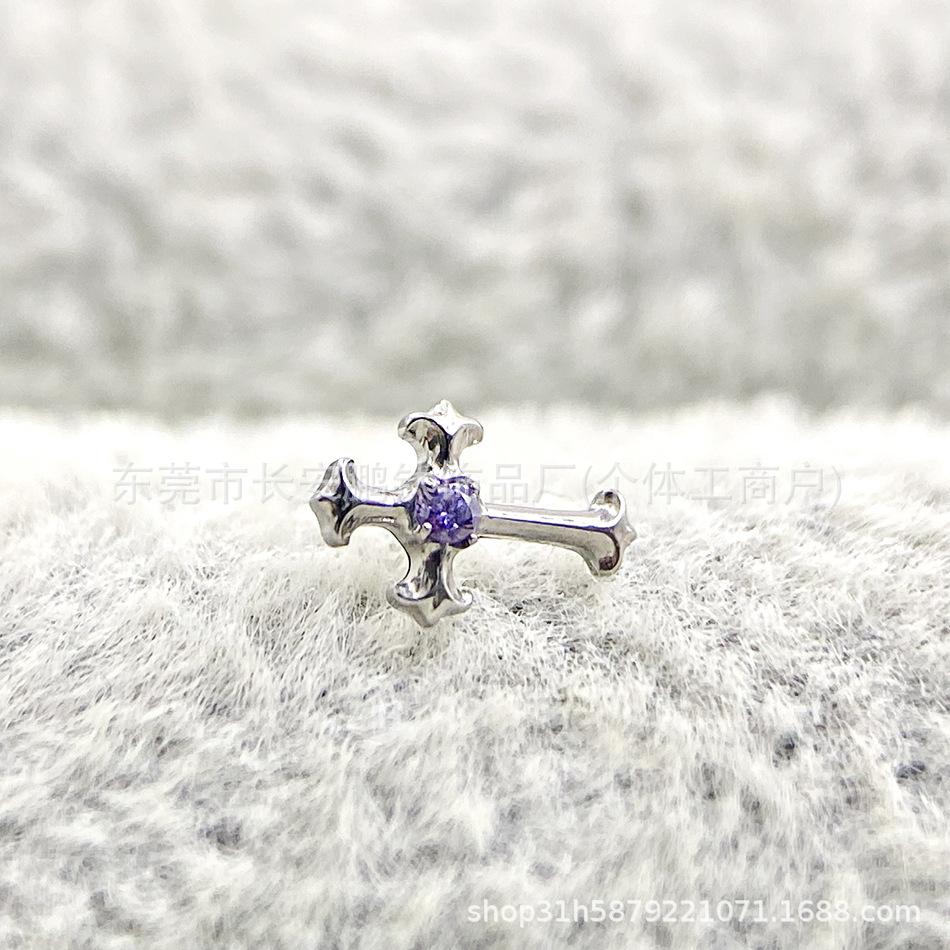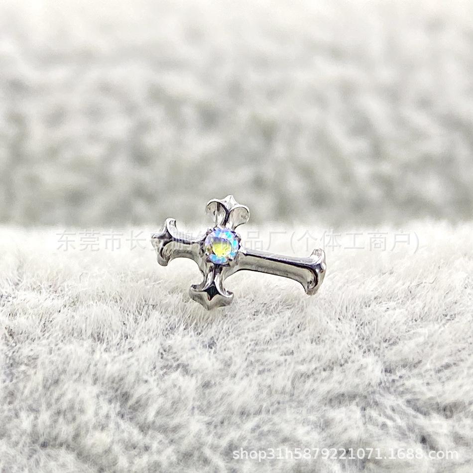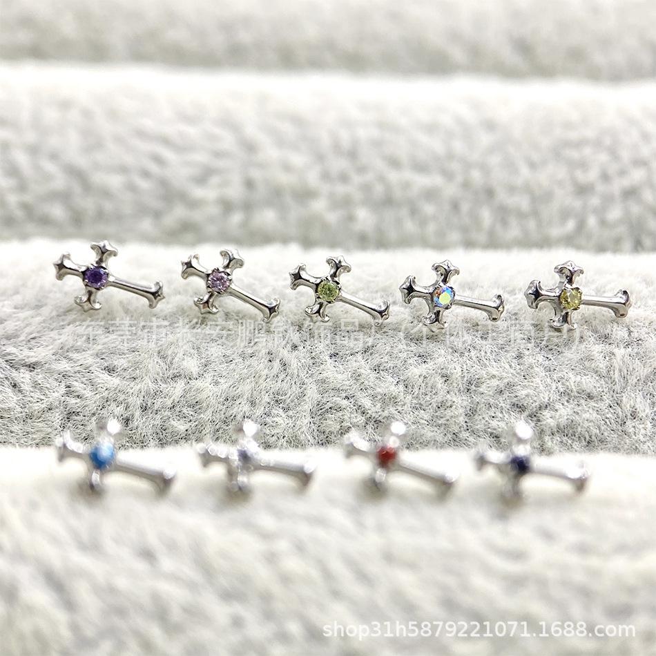 Compre Astm F-136 Titânio Multi-Color Diamante Retro Cruz G23 Titânio Incrustado Zircônio Cruz Osso Da Orelha Brincos Piercing Unhas no atacado no Joom.pro