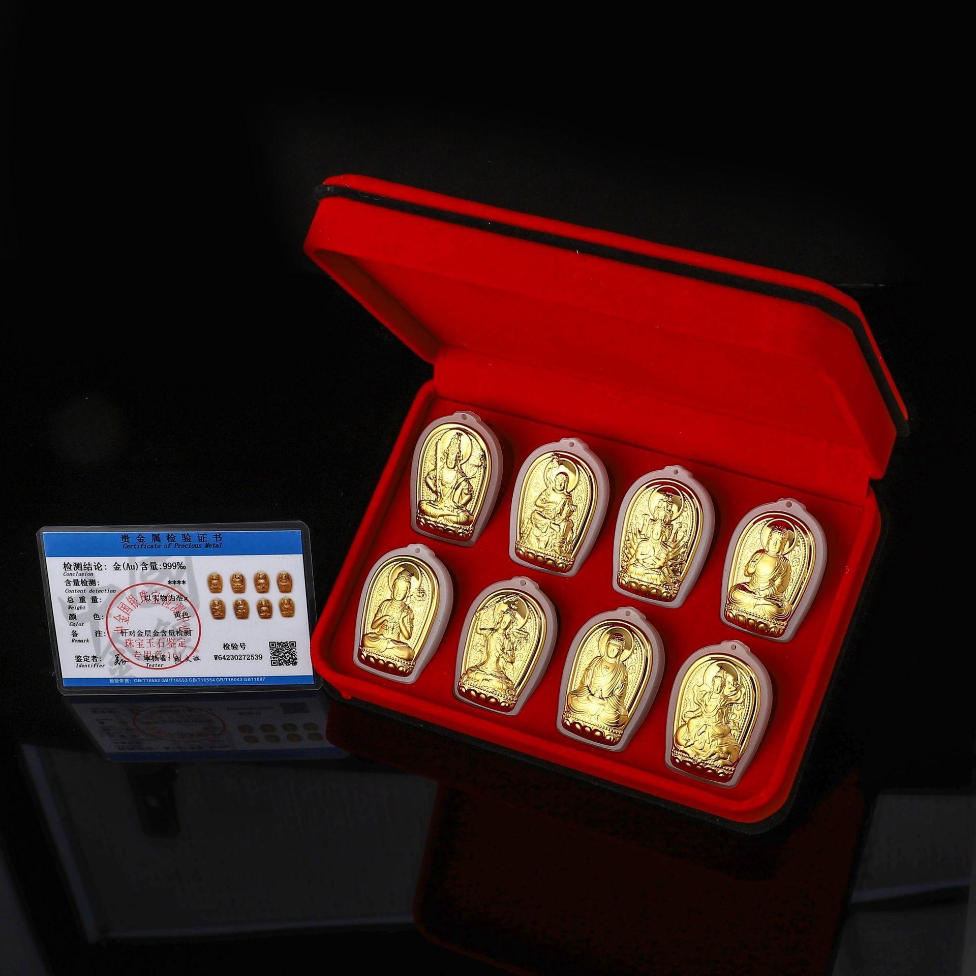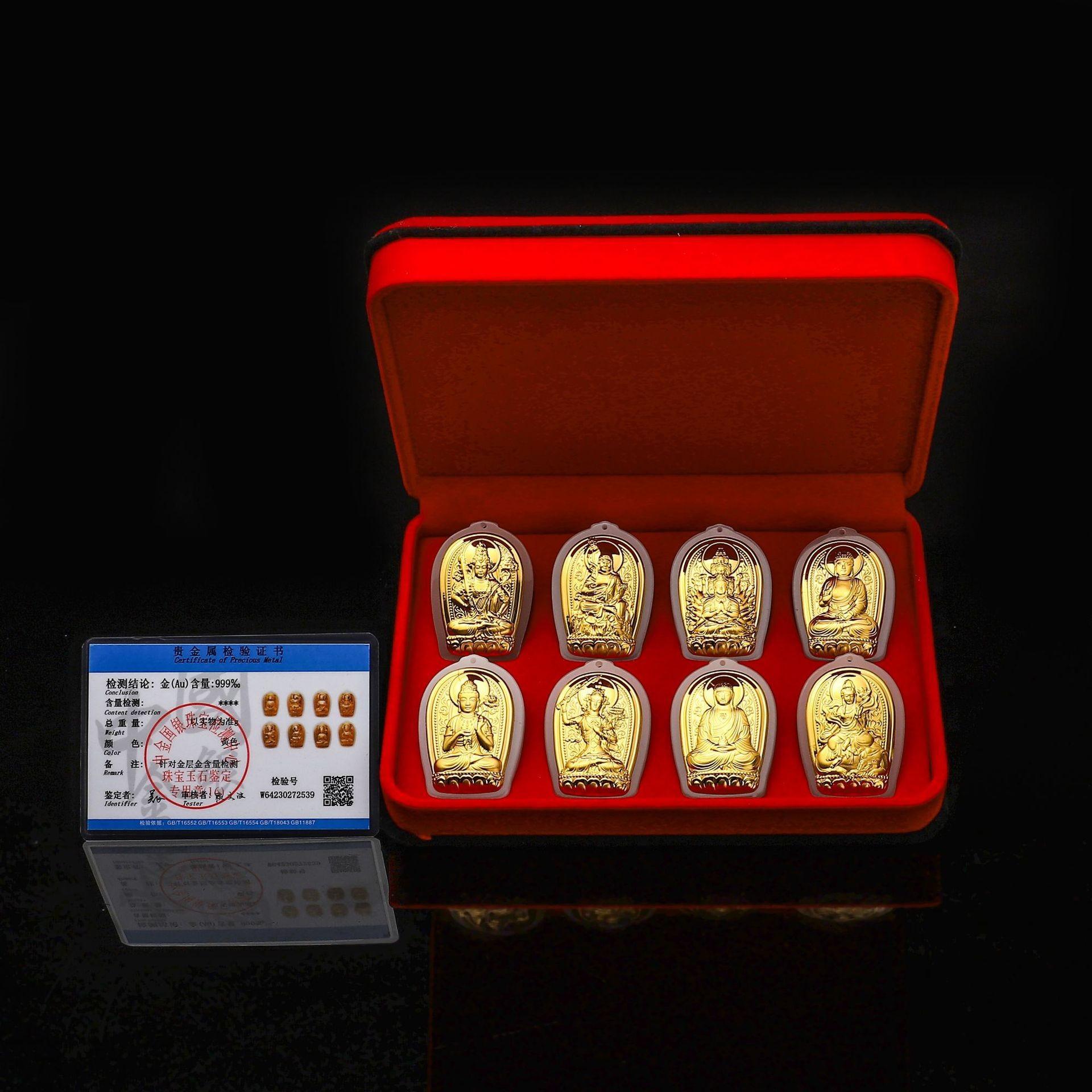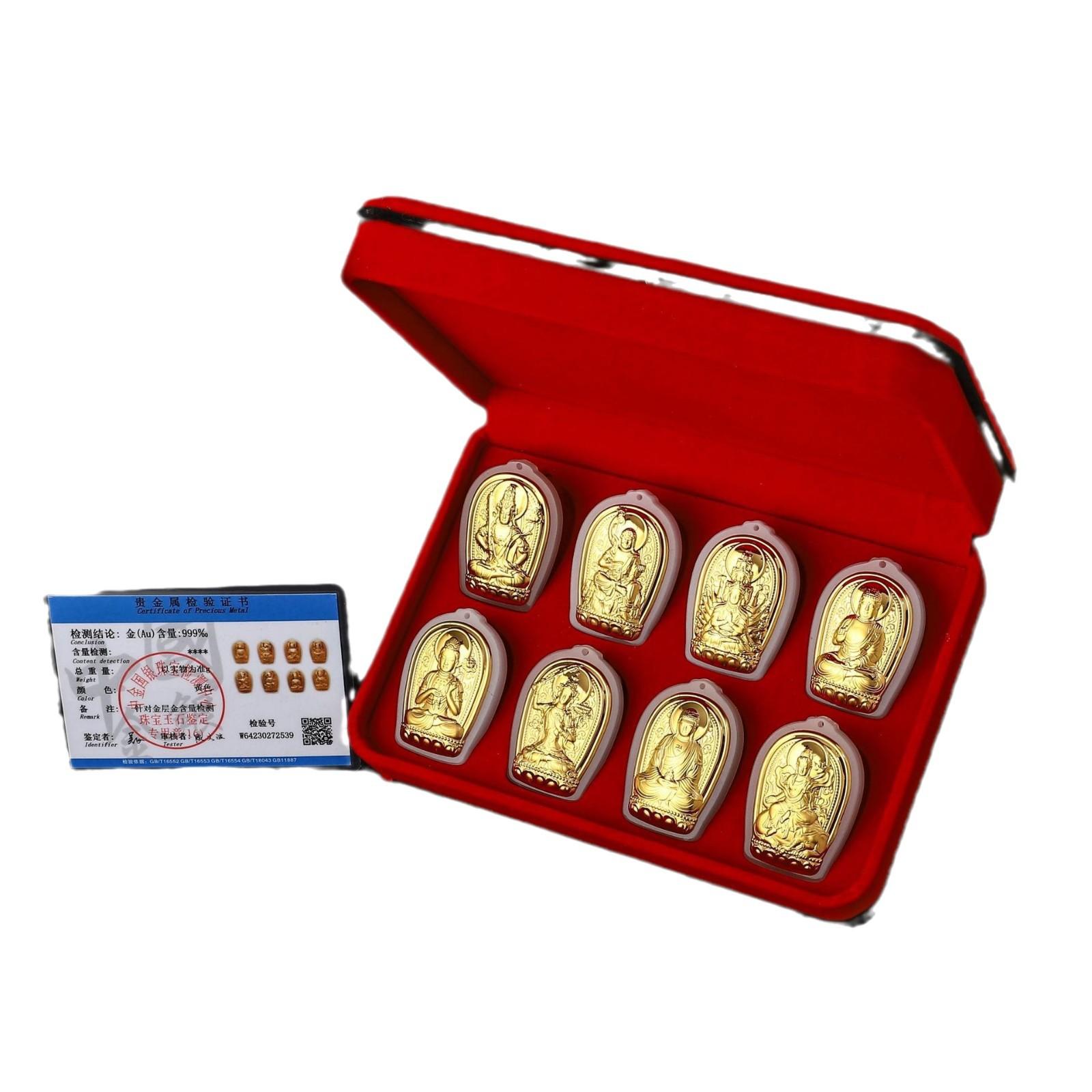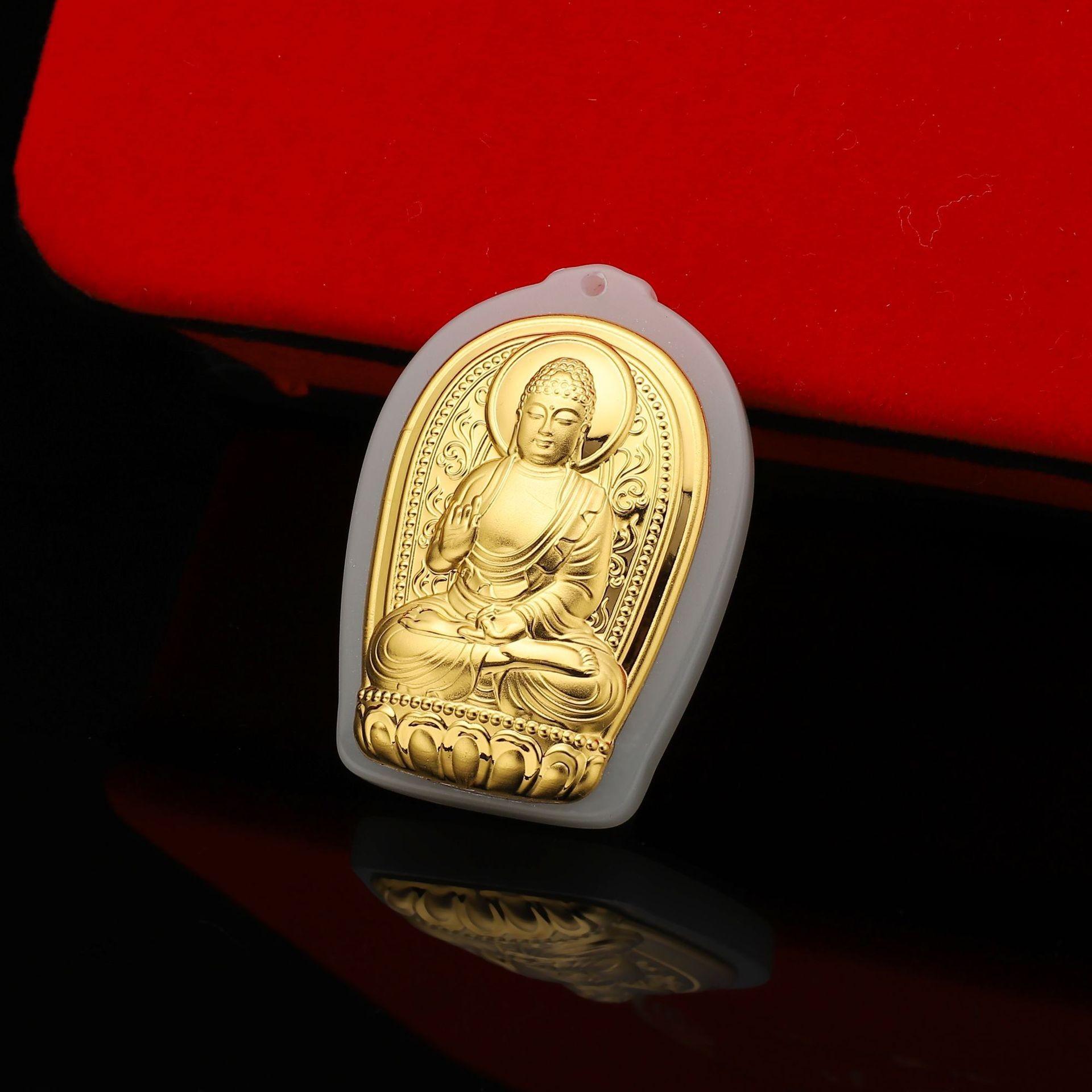 Pingente de santo padroeiro de jade incrustado de ouro oito Buming Buda girando roda presente para homens e mulheres explosão ao vivo memorial de viagem