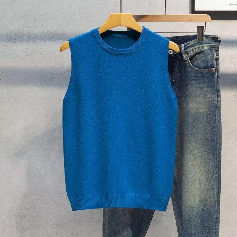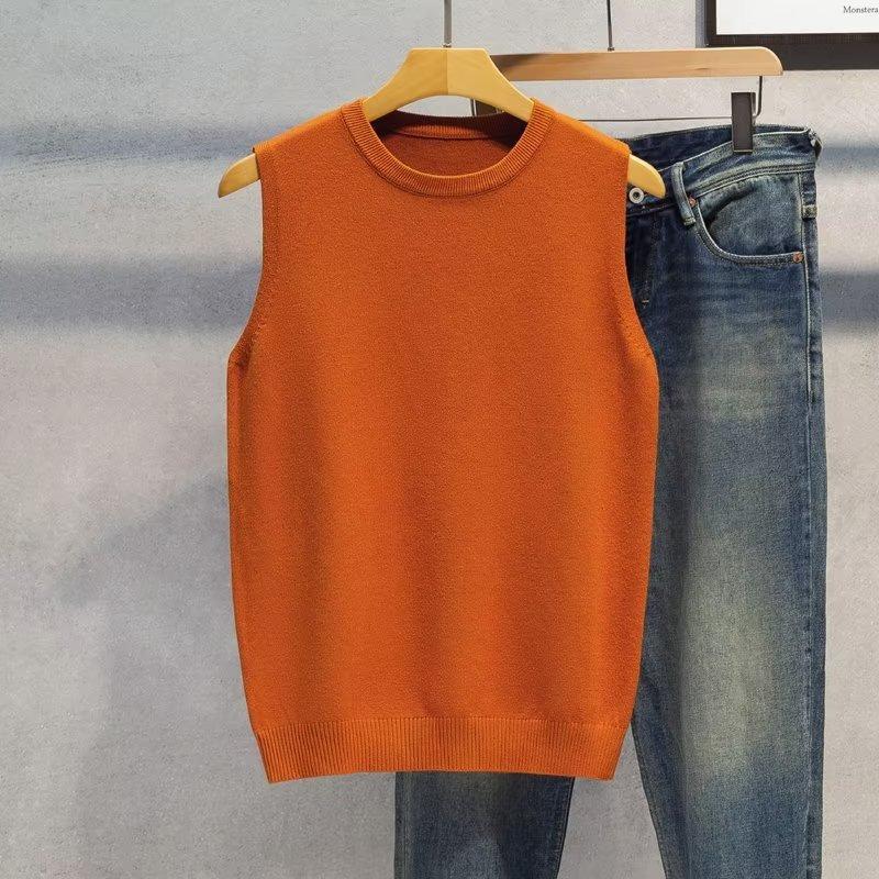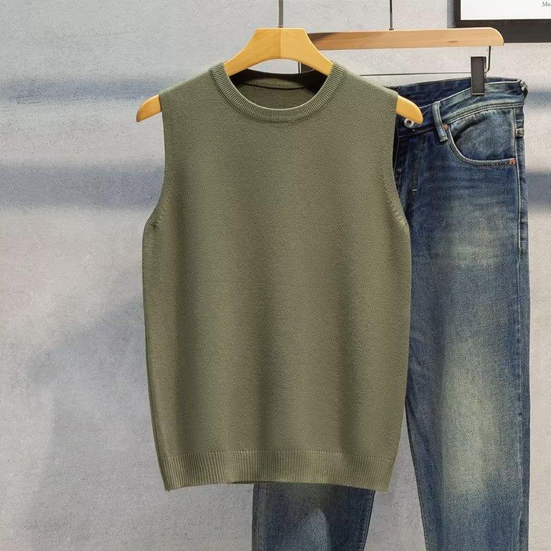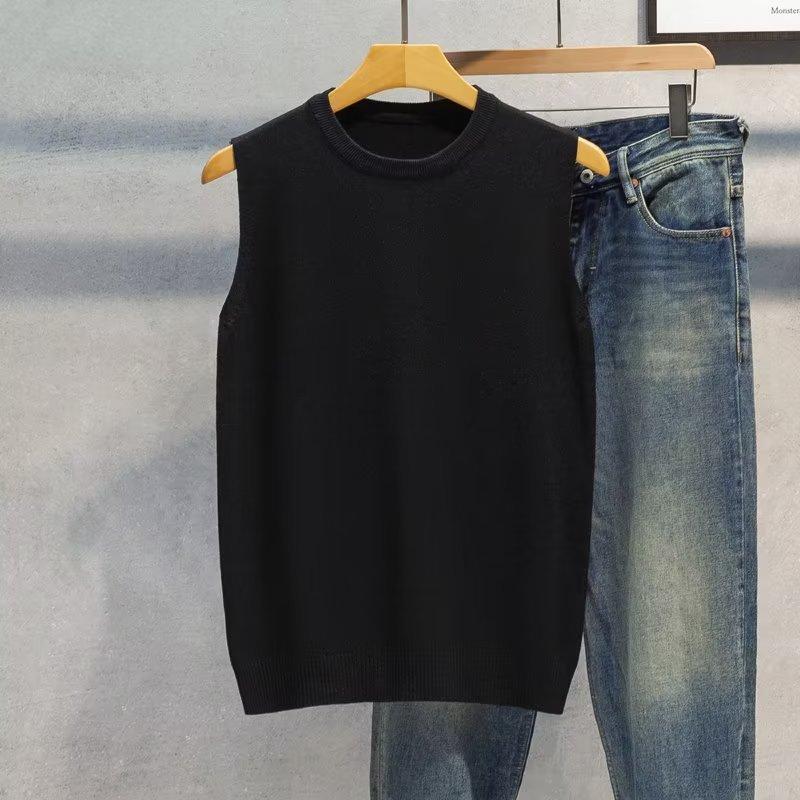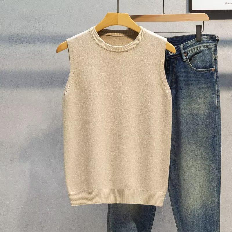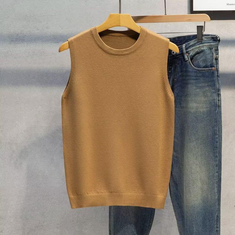 Novo Colete Suéter Sem Mangas Outono e Inverno 2024 Camisa de Base Masculina Gola Redonda Tricotado Estilo Coreano Colete Trbottomy Espessado