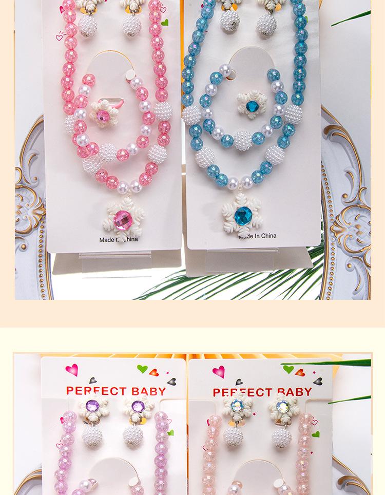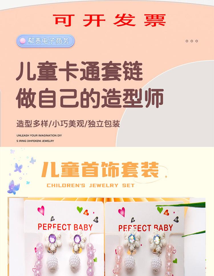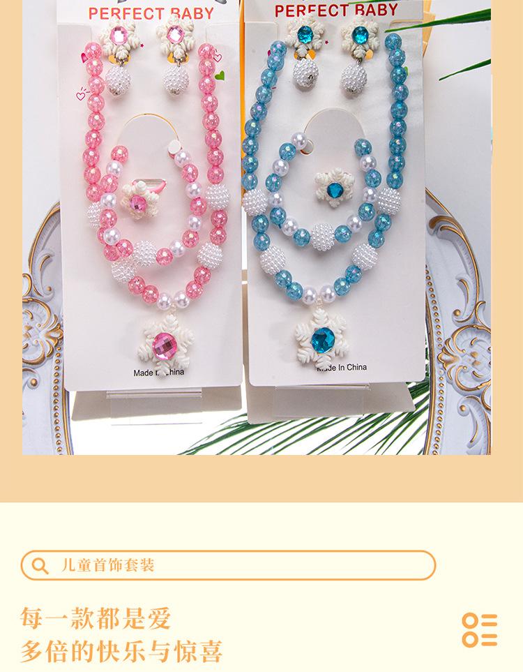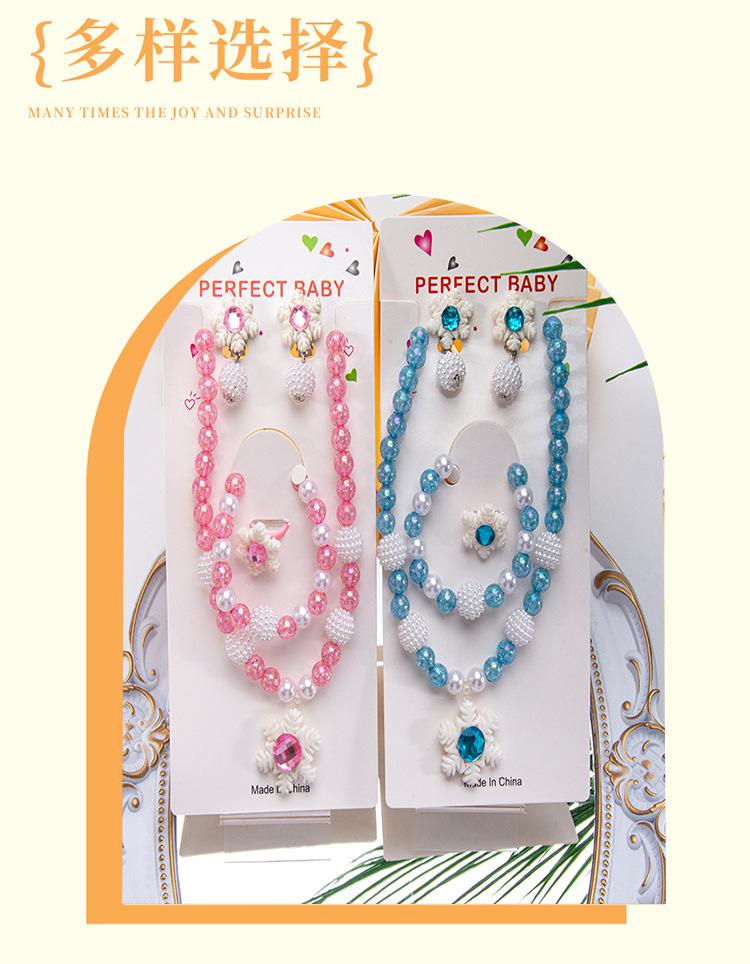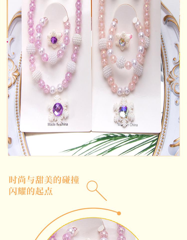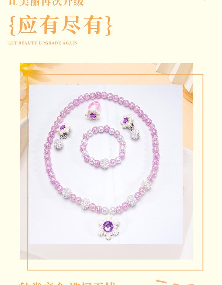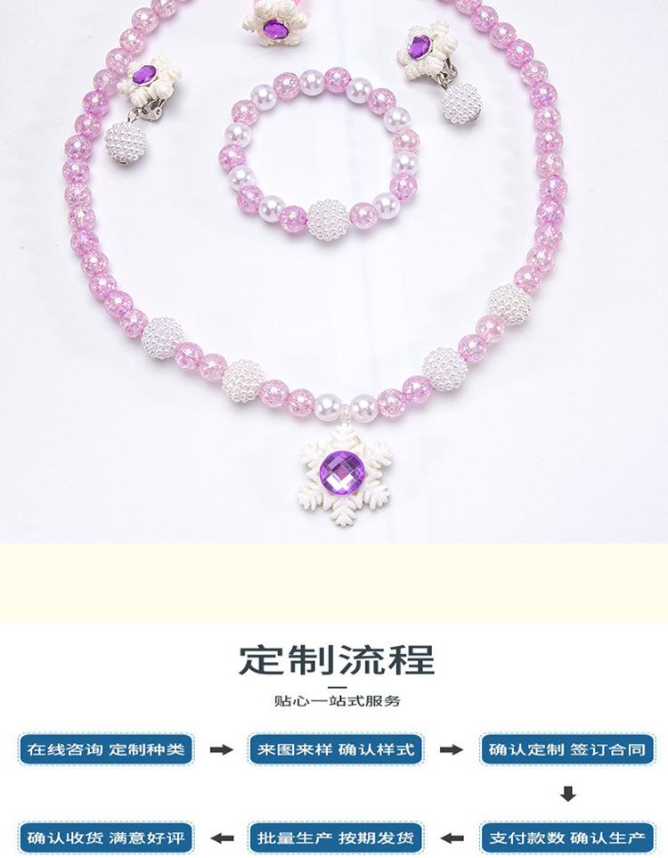 Desenho Animado Joias Infantis Colar de Floco de Neve de Cristal Pulseira Clipe de Orelha Anel Conjunto de Joias de Contas Elsa Frozen