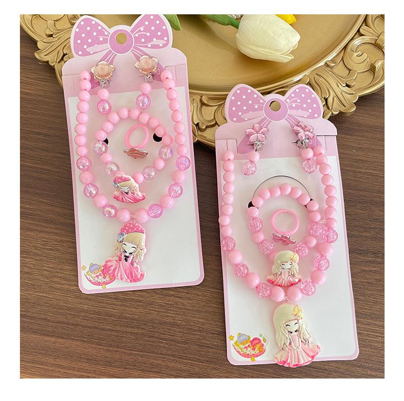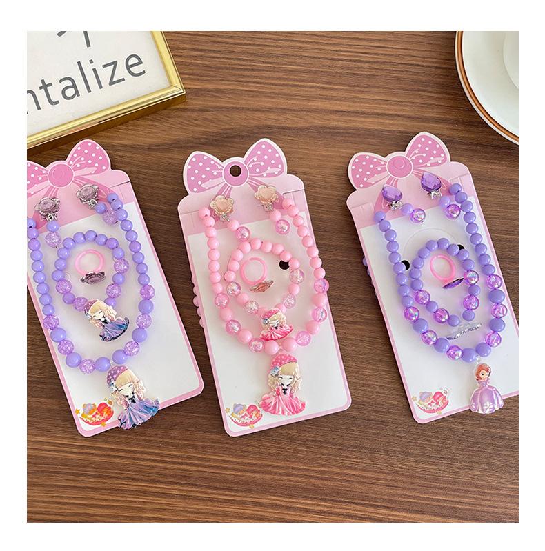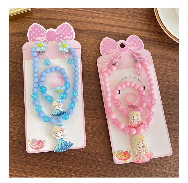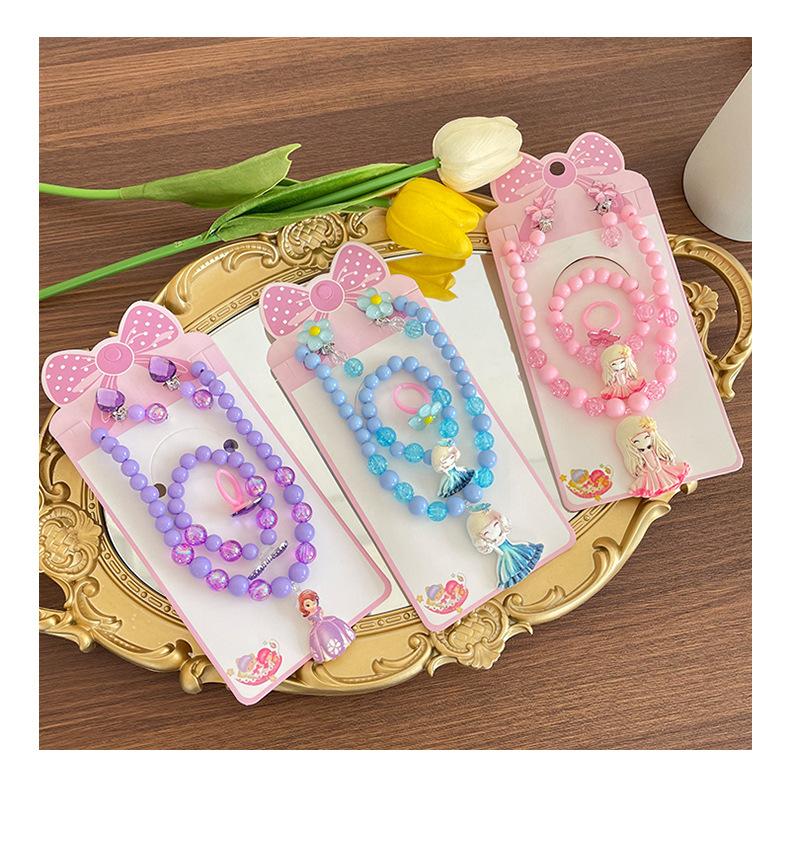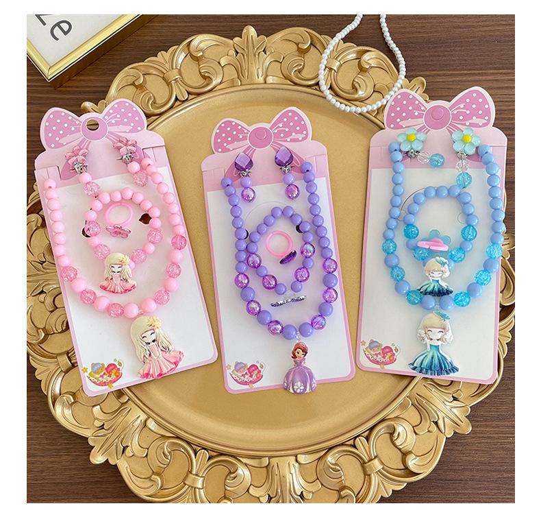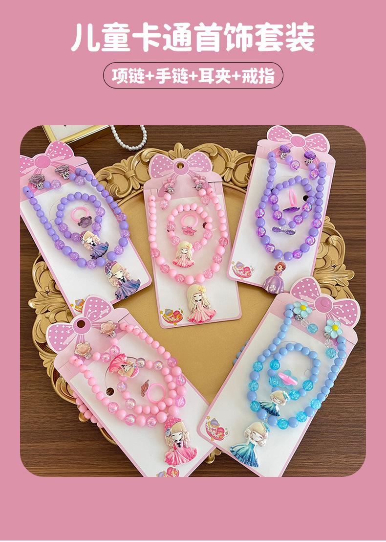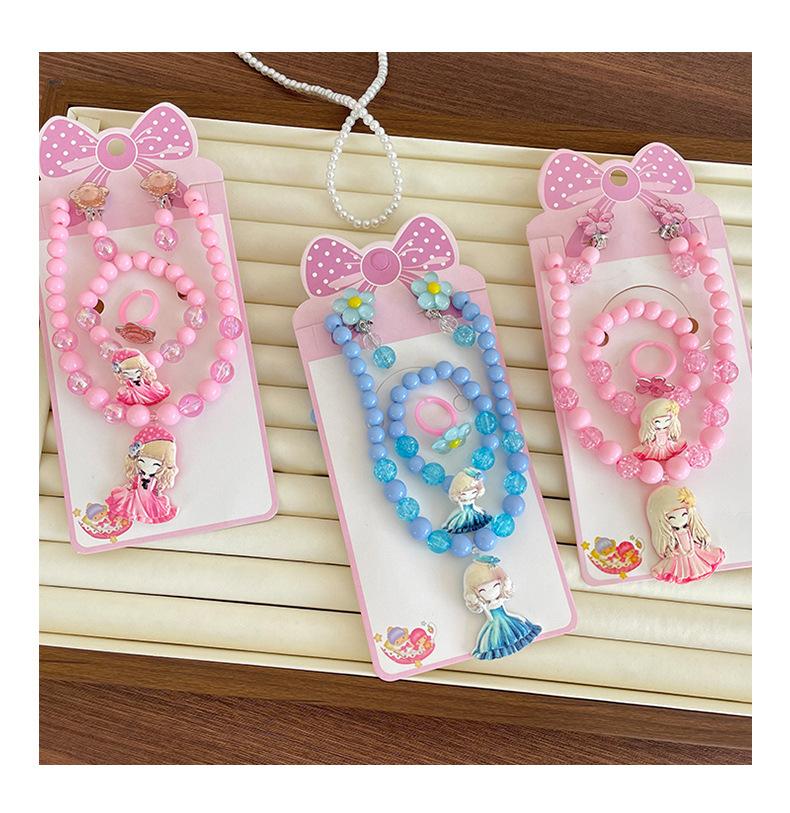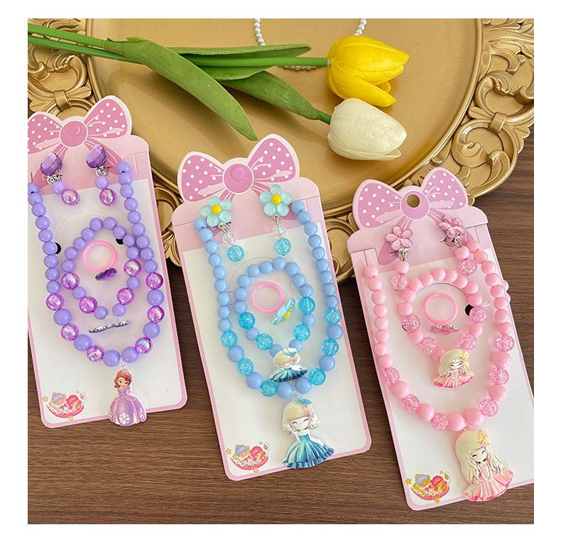 Colar infantil flor menina princesa pulseira terno bonito bebê desenho animado anel acessórios meninas miçangas joias