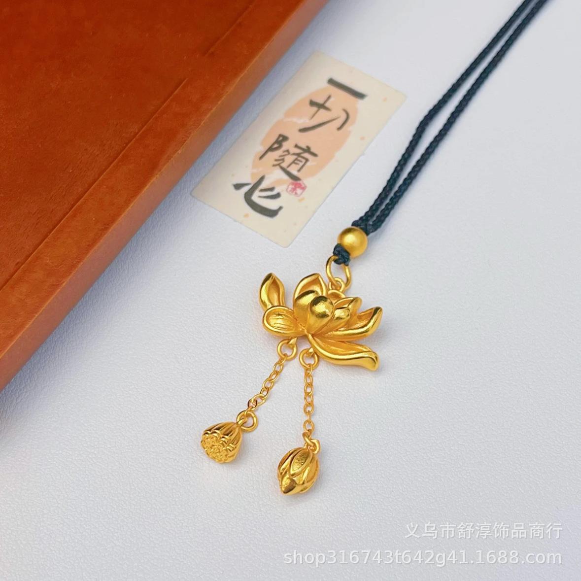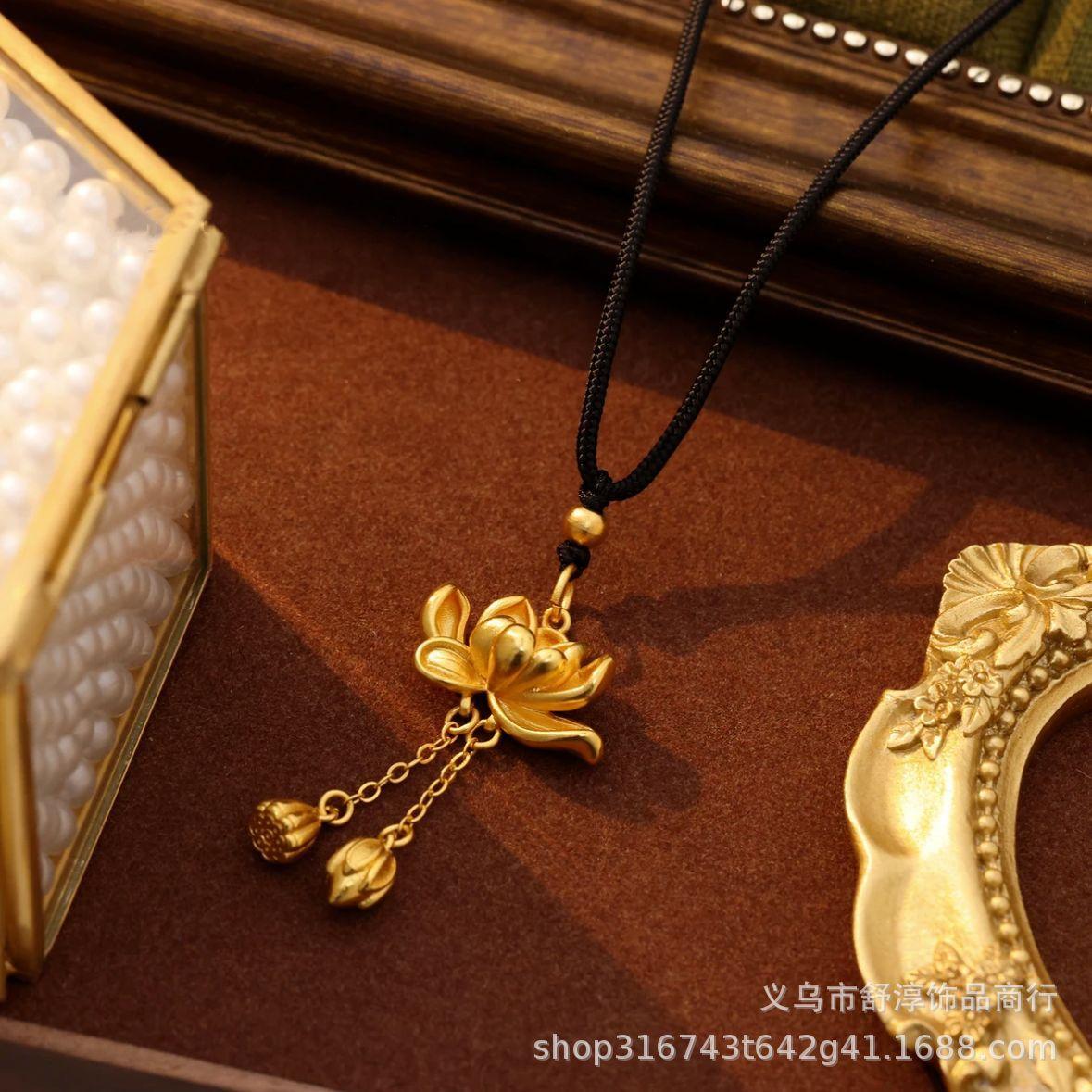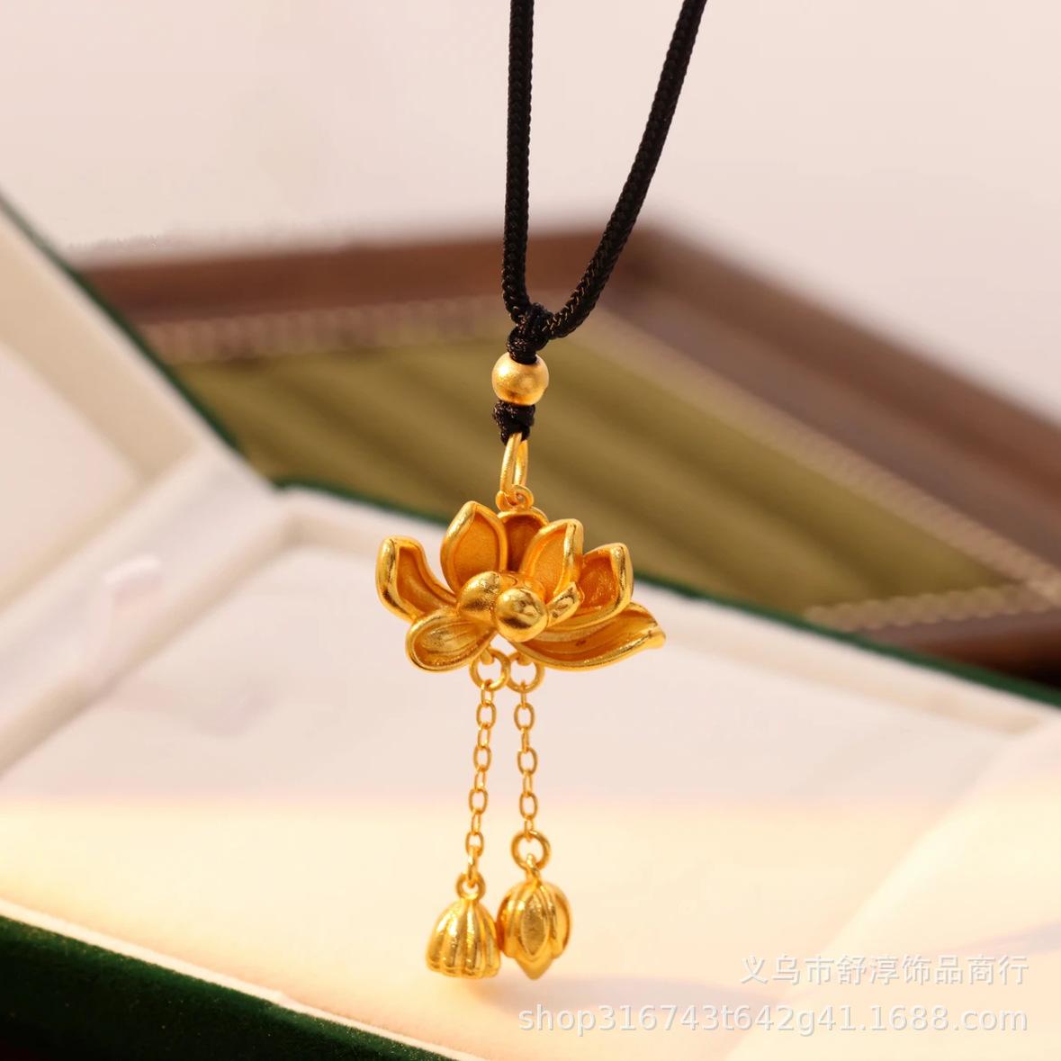 Pingente de lótus de ouro antigo de alta cor, pingente faça você mesmo, acessórios para colar feliz de dois mundos, explosão ao vivo, atacado