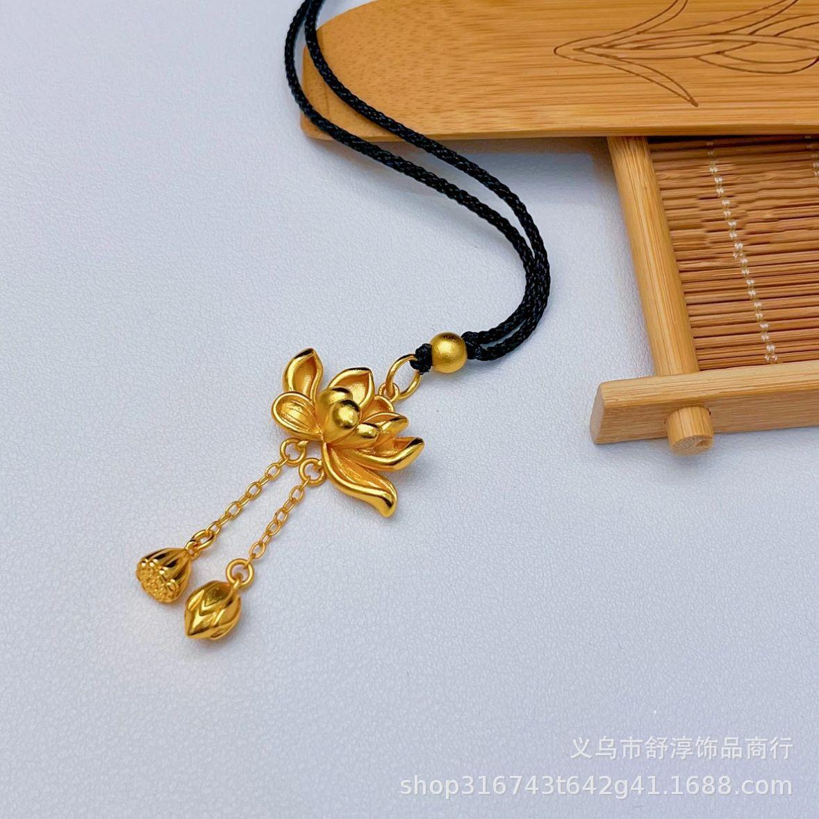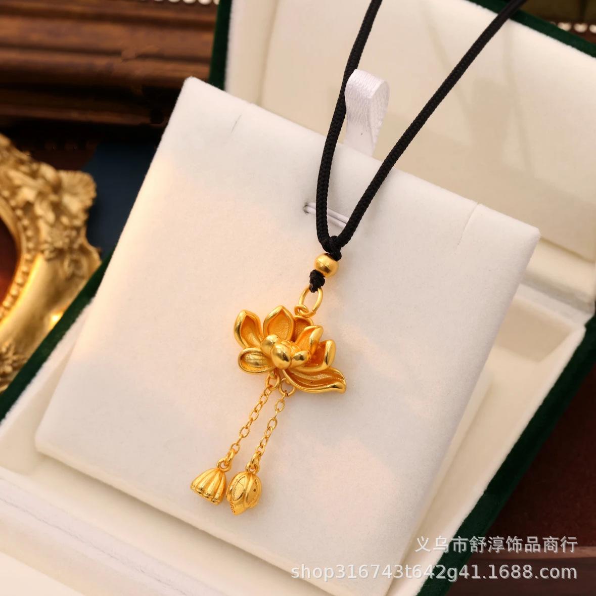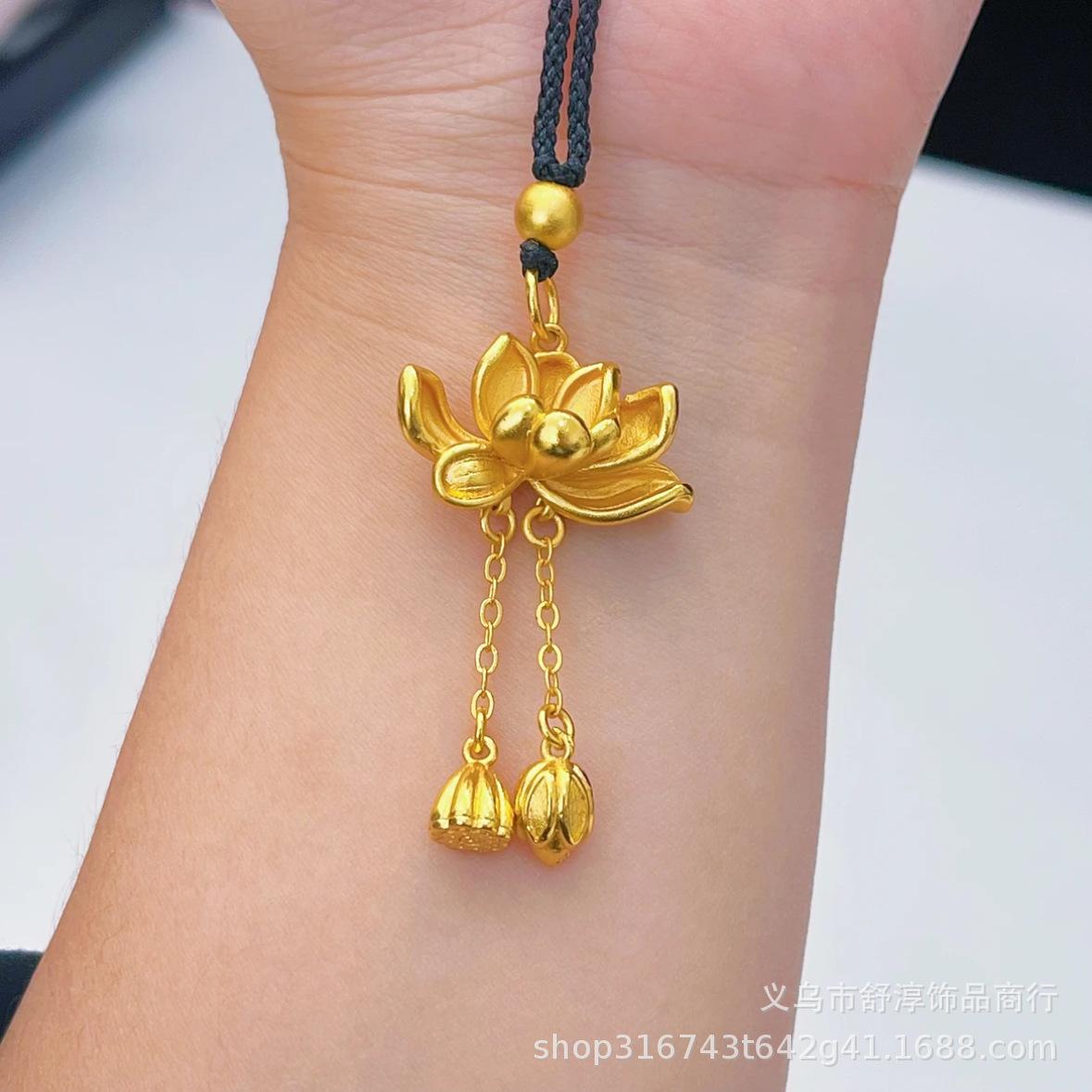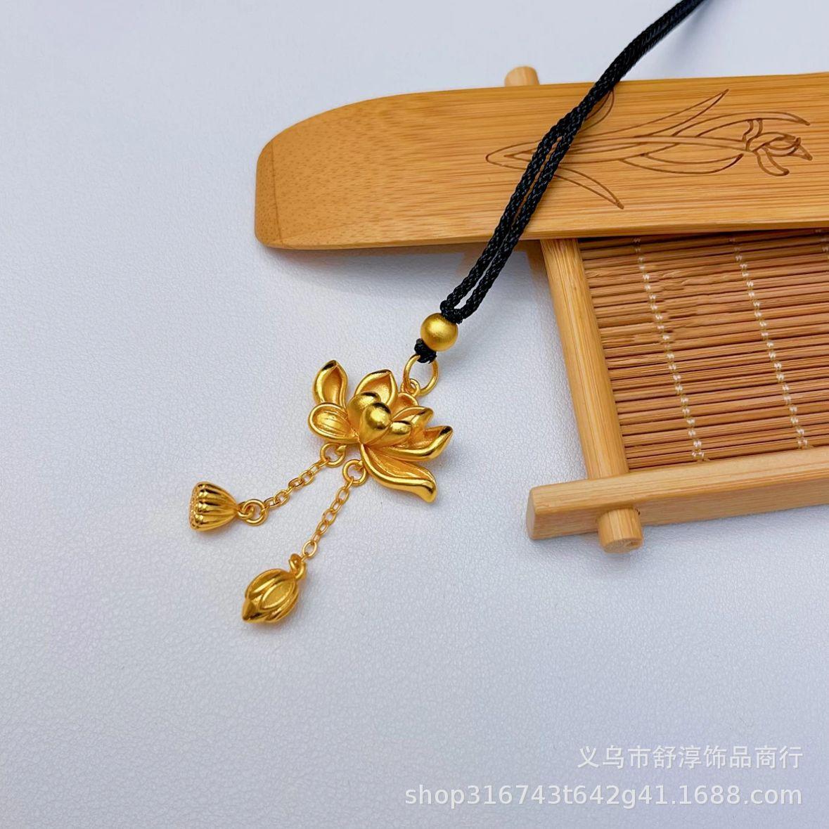 Pingente de lótus de ouro antigo de alta cor, pingente faça você mesmo, acessórios para colar feliz de dois mundos, explosão ao vivo, atacado