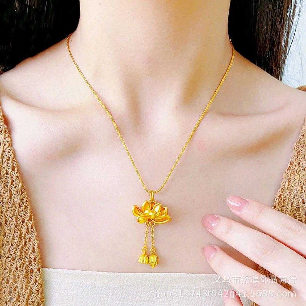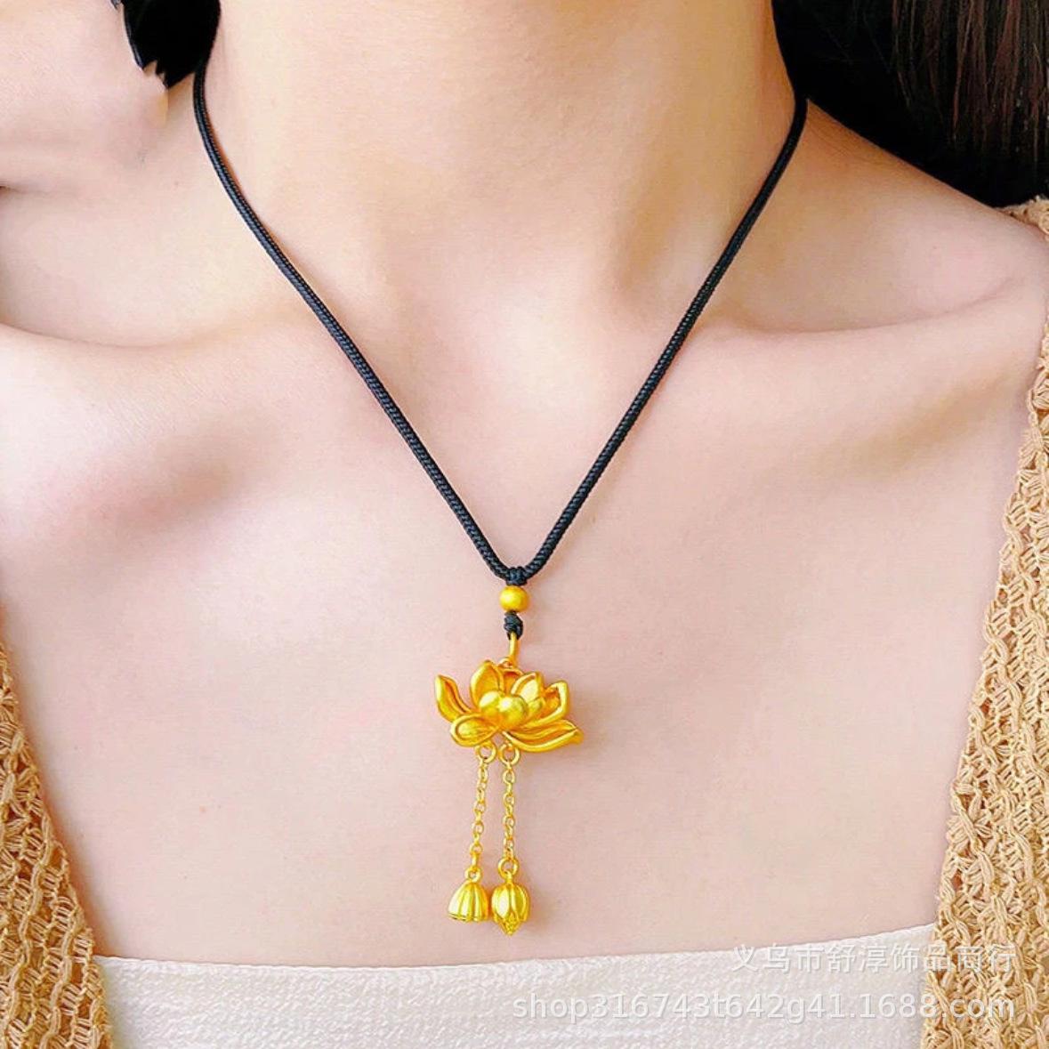 Compre Pingente de lótus de ouro antigo de alta cor, pingente faça você mesmo, acessórios para colar feliz de dois mundos, explosão ao vivo, atacado no atacado no Joom.pro