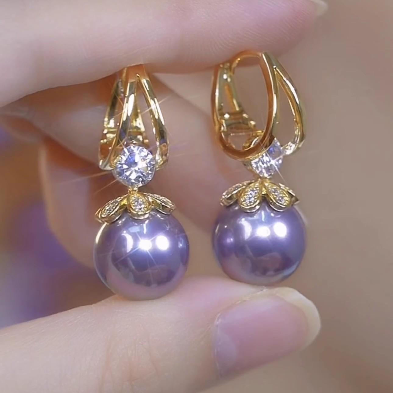 Compre Brincos de pérola roxa de luxo leve High-end Sense Micro-set 2024 Novos brincos requintados elegantes Brincos de luxo femininos no atacado no Joom.pro