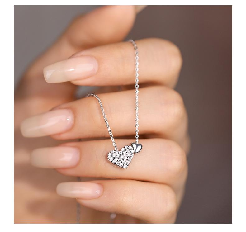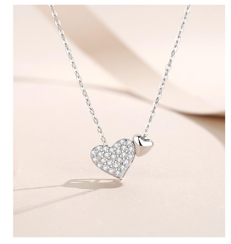 Compre S925 prata esterlina doce duplo amor colar moda feminina incrustado zircão coração pingente luz de luxo all-match clavícula cadeia tendência no atacado no Joom.pro