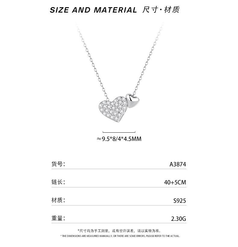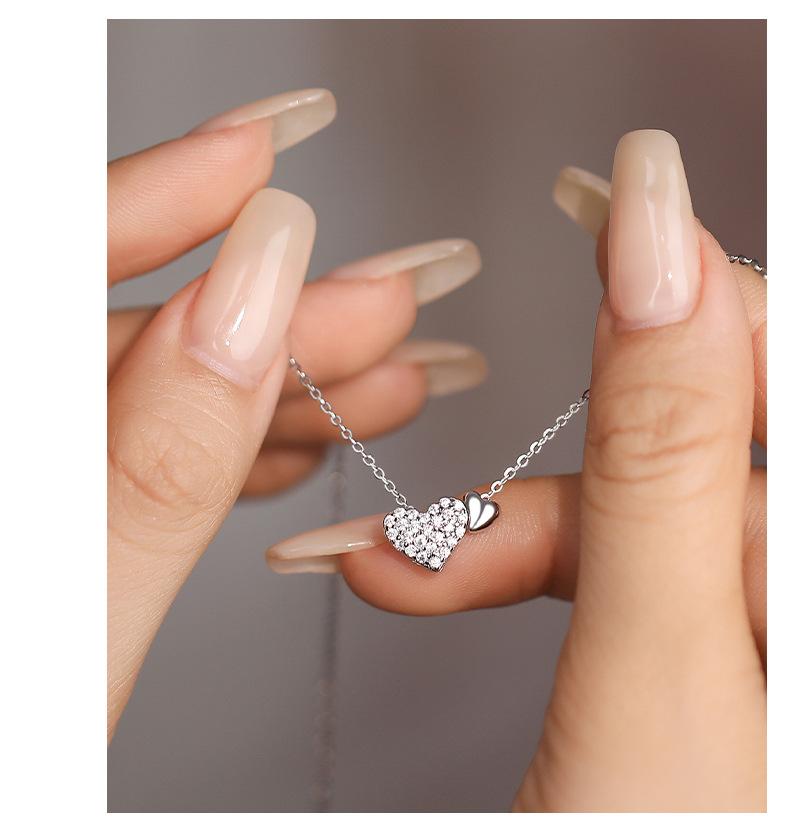 S925 prata esterlina doce duplo amor colar moda feminina incrustado zircão coração pingente luz de luxo all-match clavícula cadeia tendência