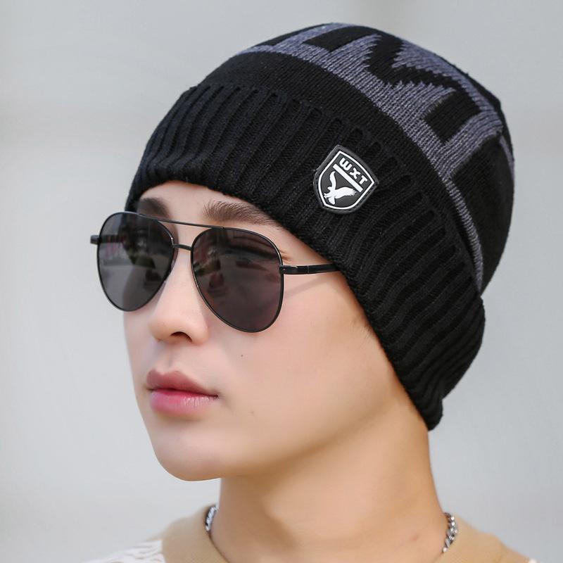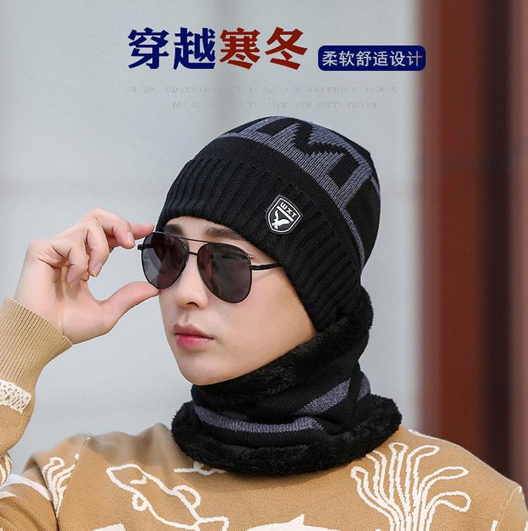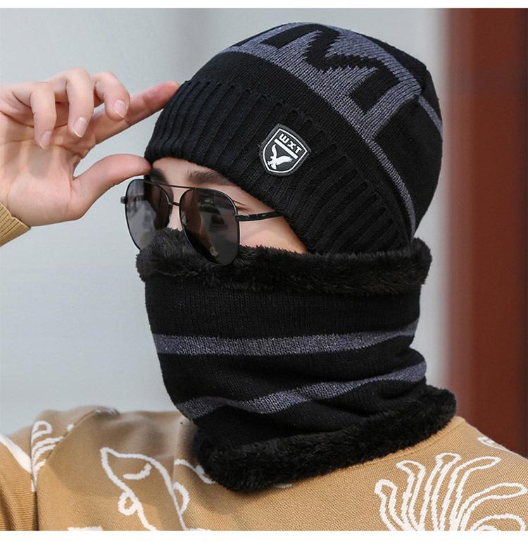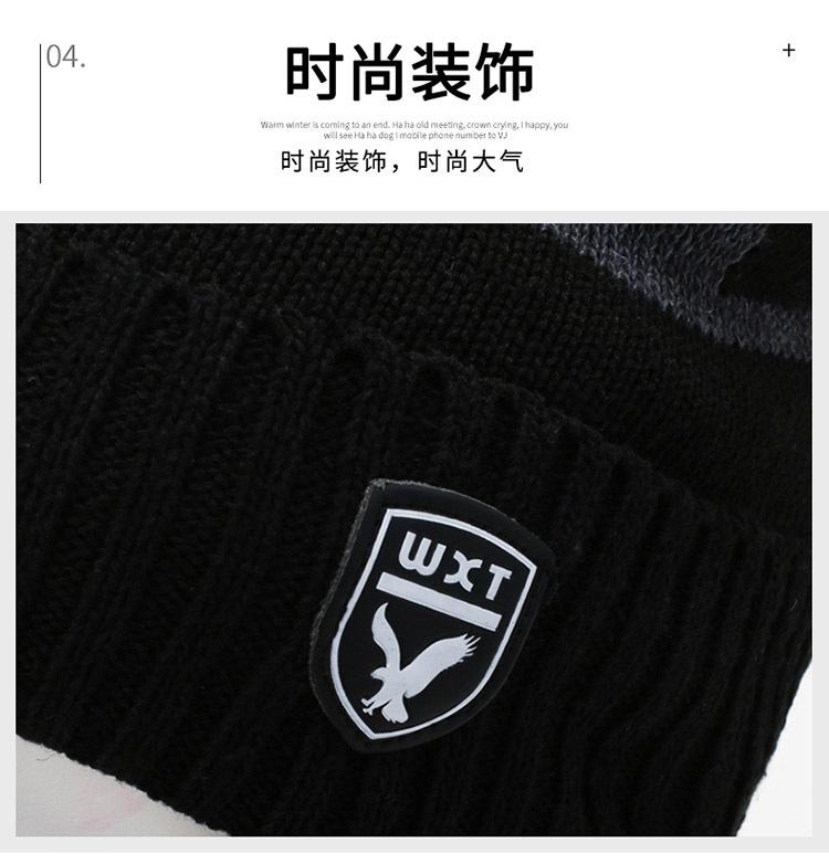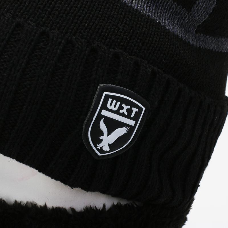 Gorro de Tricô Masculino Inverno Quente Espessado Lã Chapéu Forrado com Lã Outono e Inverno Marca Águia À Prova de Frio Pulôver Cachecol Chapéu Transfronteiriço