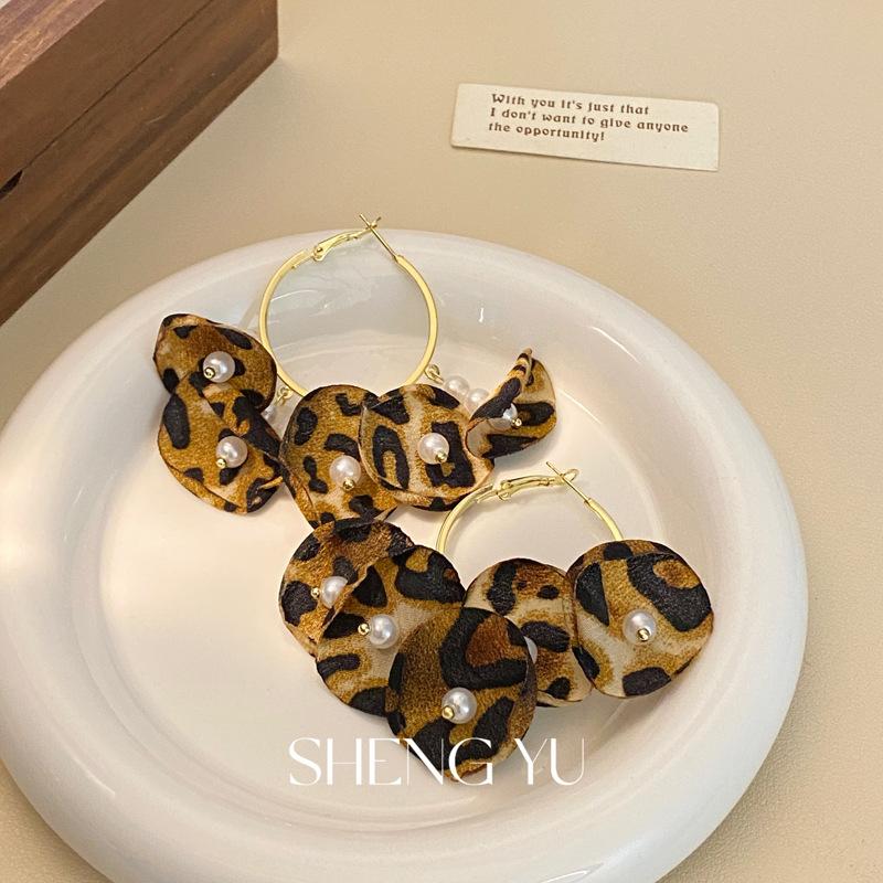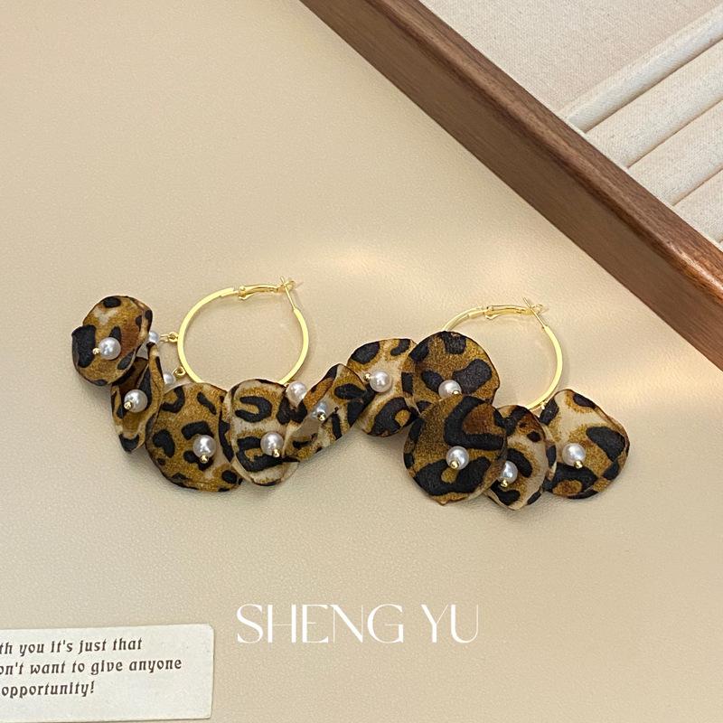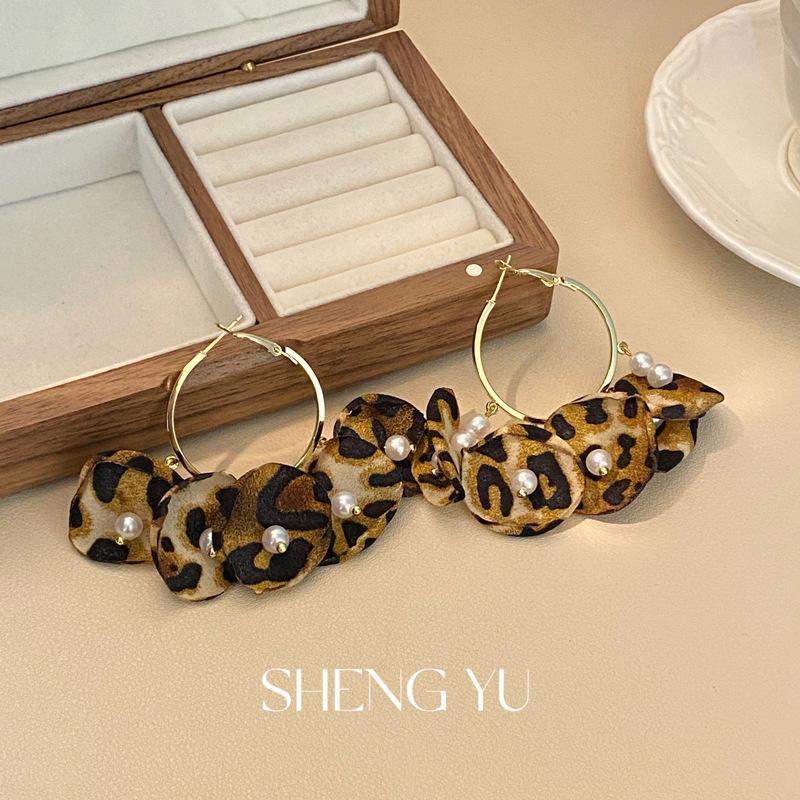 2024 Novo Leopardo Pérola Brinco Marrom Retro Personalizado Nicho High-end All-match Moda Feminina Brincos Brincos