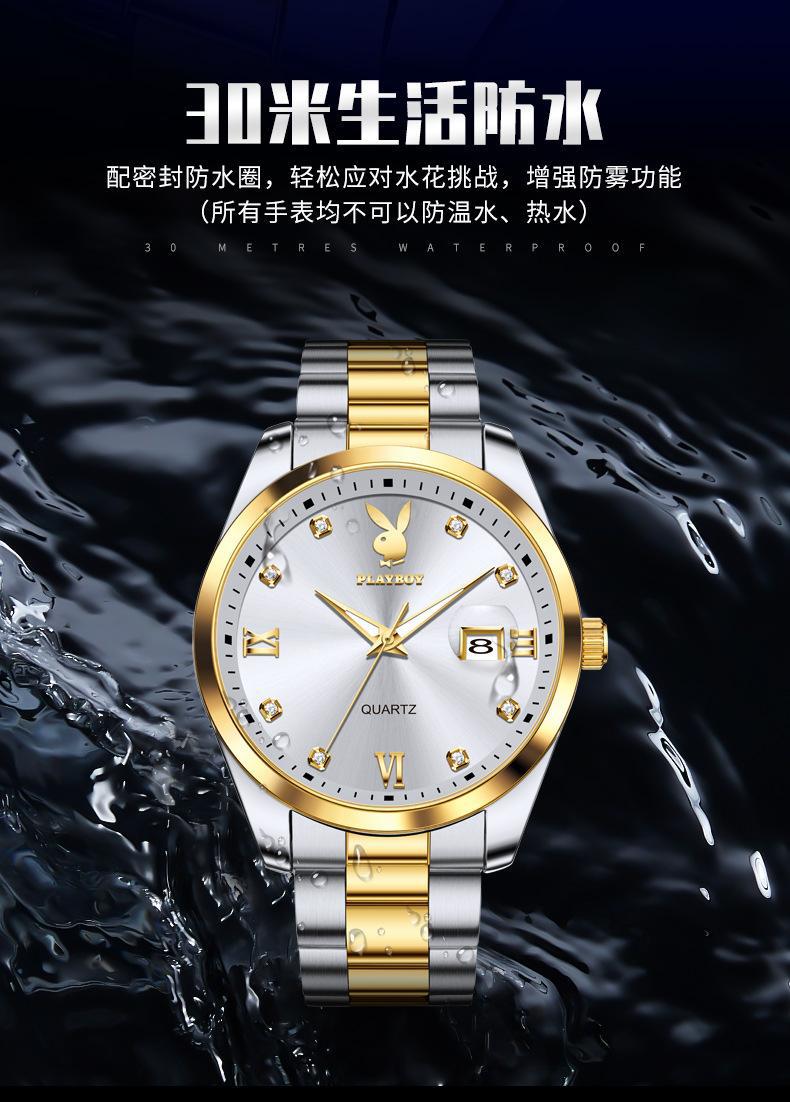 Fabricantes da marca Playboy em nome de negócios, relógios masculinos de moda, relógios de quartzo, relógios masculinos luminosos à prova d'água, atacado