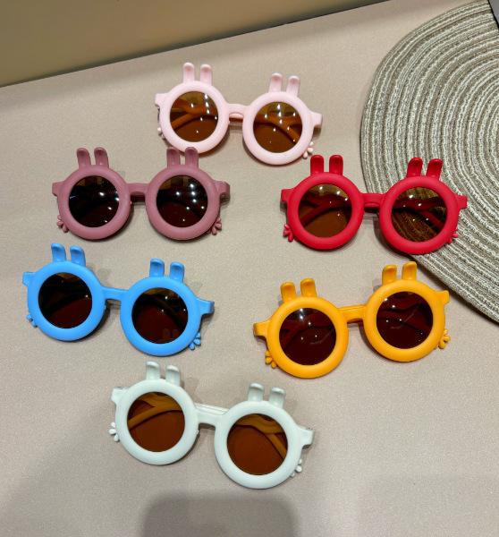 Novos óculos de sol infantis, óculos de sol fofos de desenho animado para bebês, orelhas de coelho, óculos fotográficos super fofos, óculos de sol por atacado