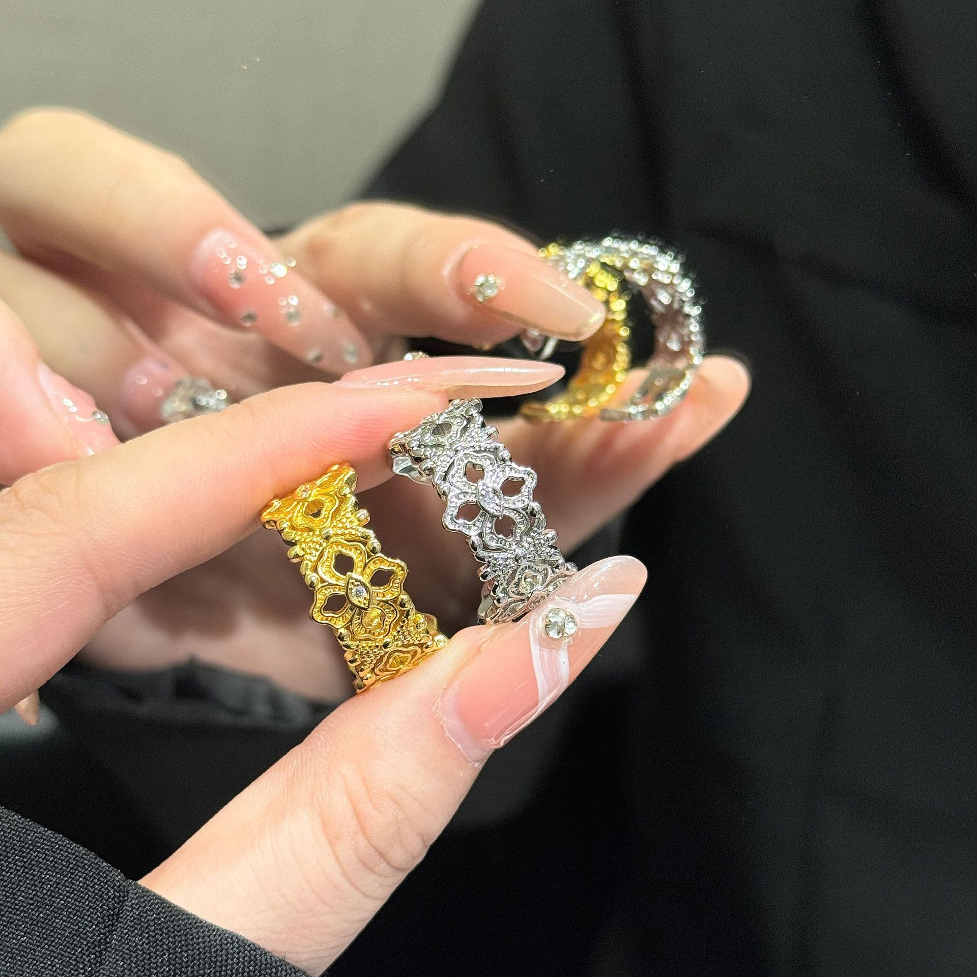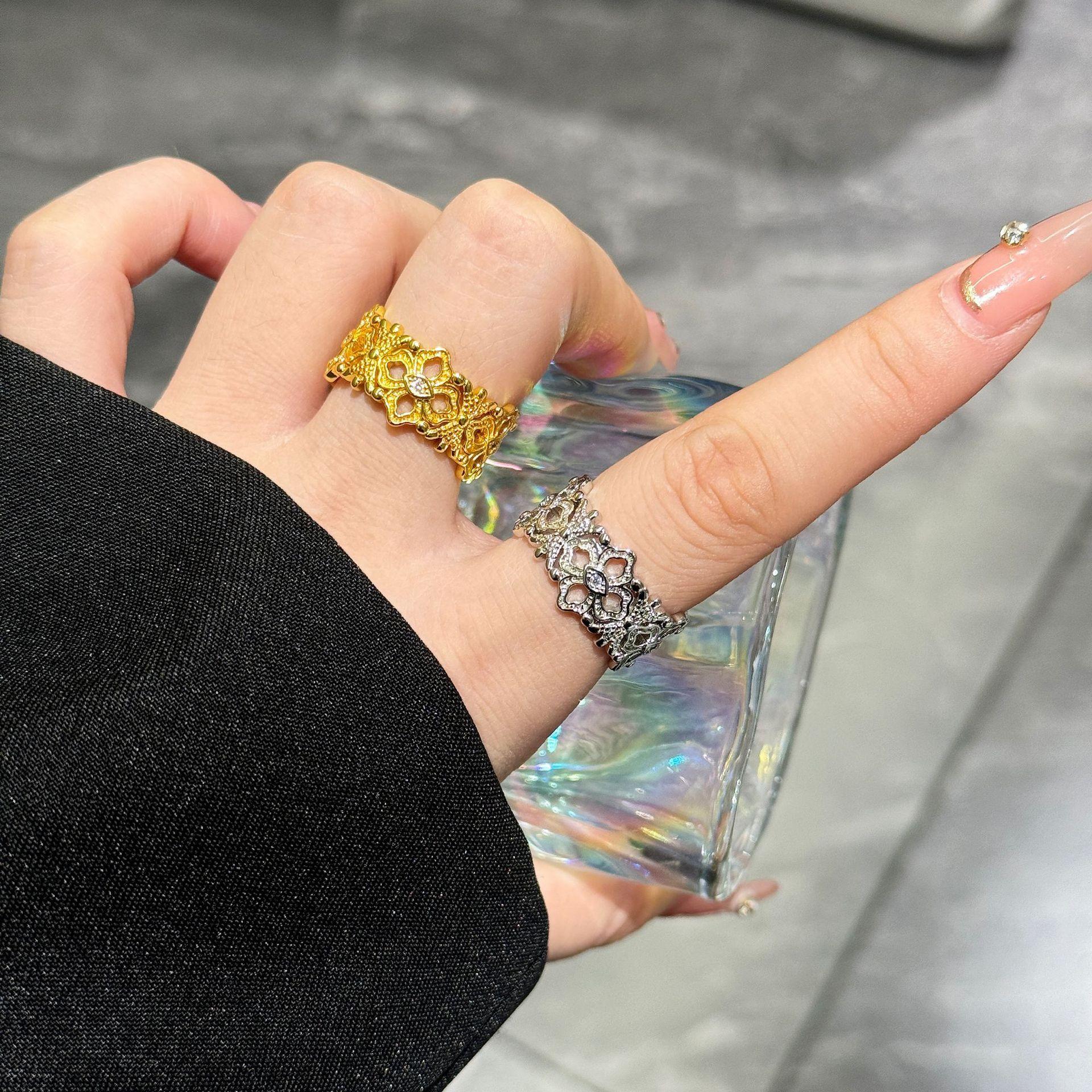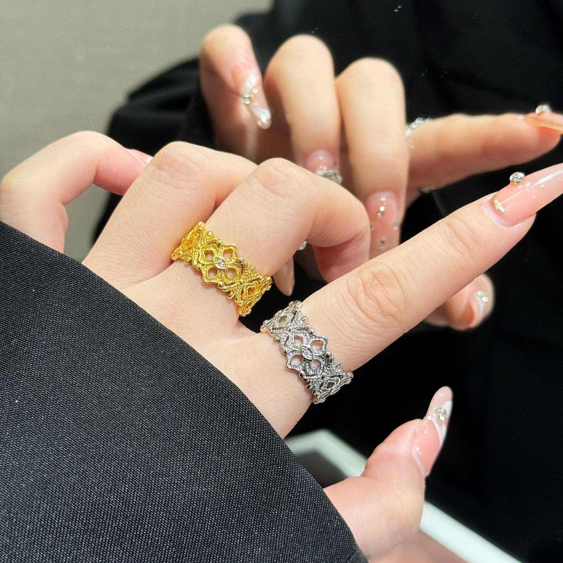 Moda simples anel de renda feminino nicho design personalidade diamante abertura dedo indicador anel atacado
