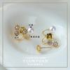Moda Japonesa e Coreana Brincos Assimétricos de Zircônia Micro-Cravejada e Pérola Agulha de Prata Design Elegante e Versátil de Alta Qualidade Brincos para Mulheres