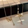 Corrente de clavícula elegante com zircônia microincrustada em ouro verdadeiro galvanizado, design de nicho feminino, colar com quatro estrelas e lua, corrente de pescoço versátil