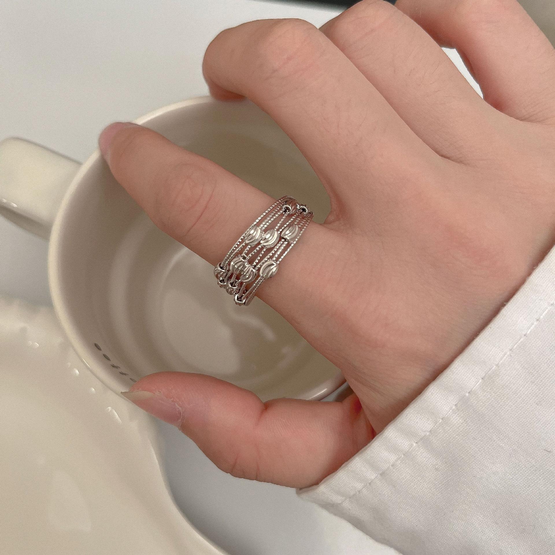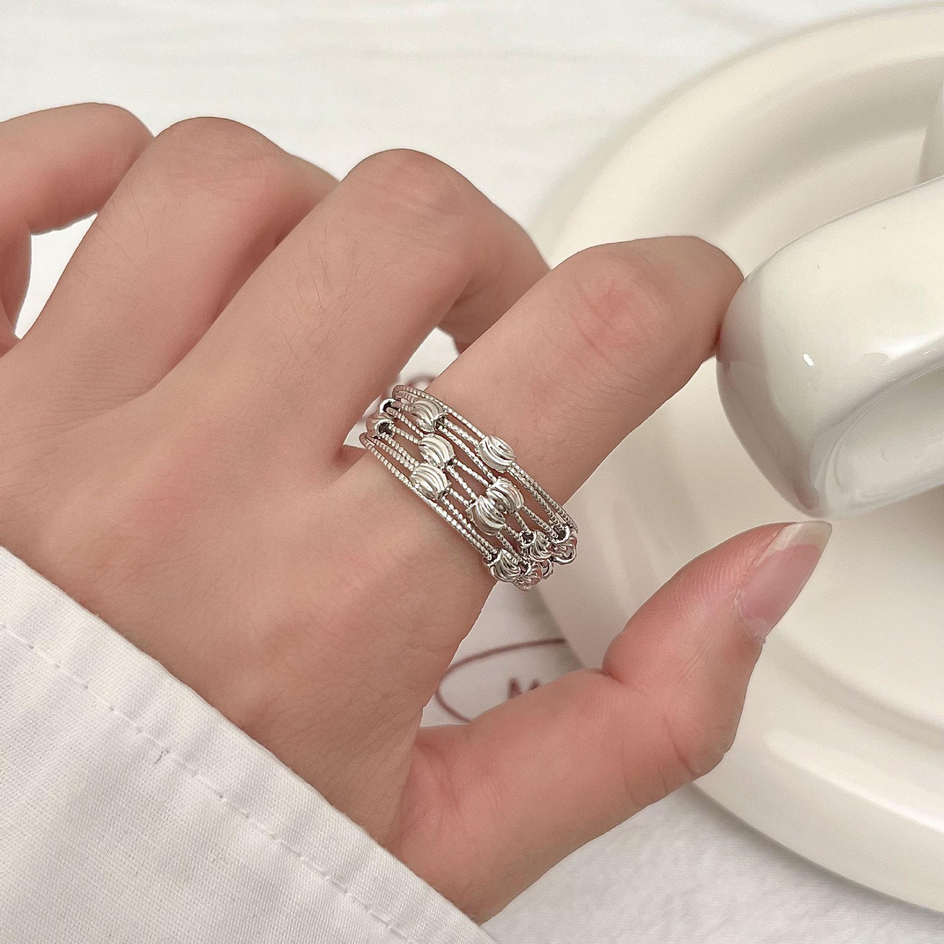 Compre Anel aberto de metal multicírculo feminino design nicho retrô elegante simples versátil elegante anel de moda no atacado no Joom.pro