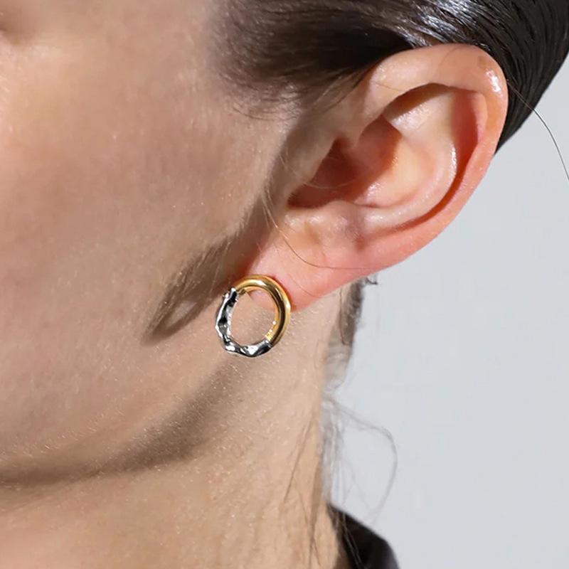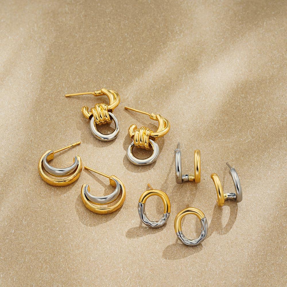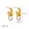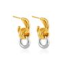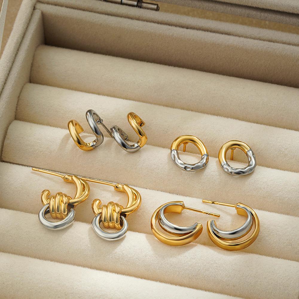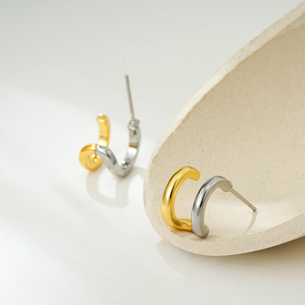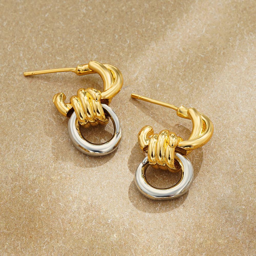 Europa e Estados Unidos transfronteiriço ouro 18k e prata dupla cor contraste irregular cor brincos de enrolamento ouro e prata cor correspondente corda nó círculo C- brincos em forma de