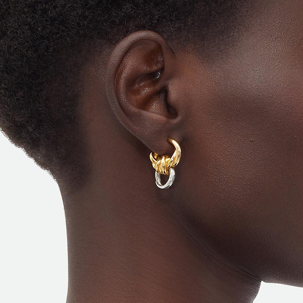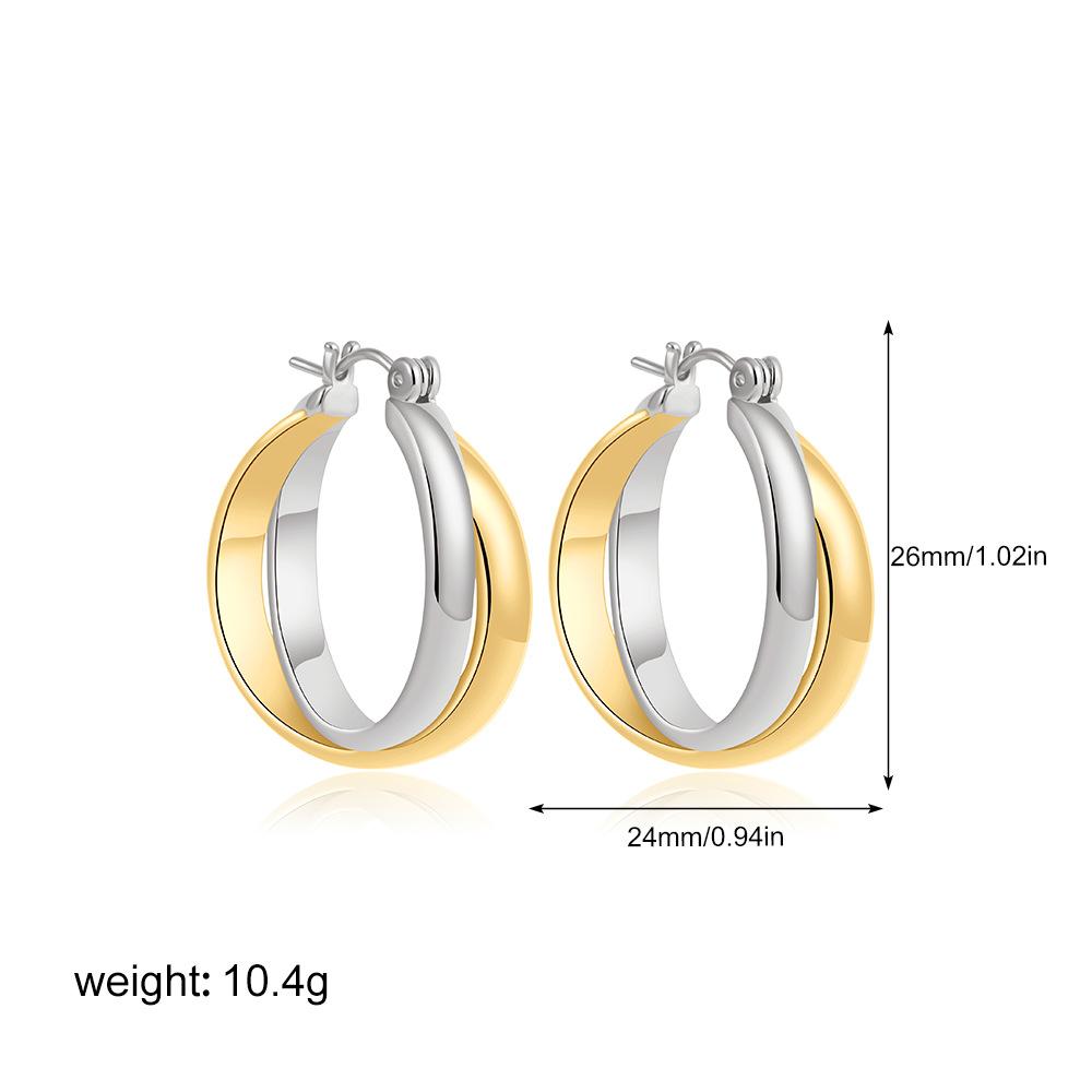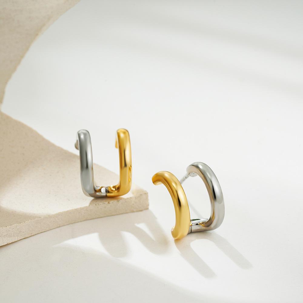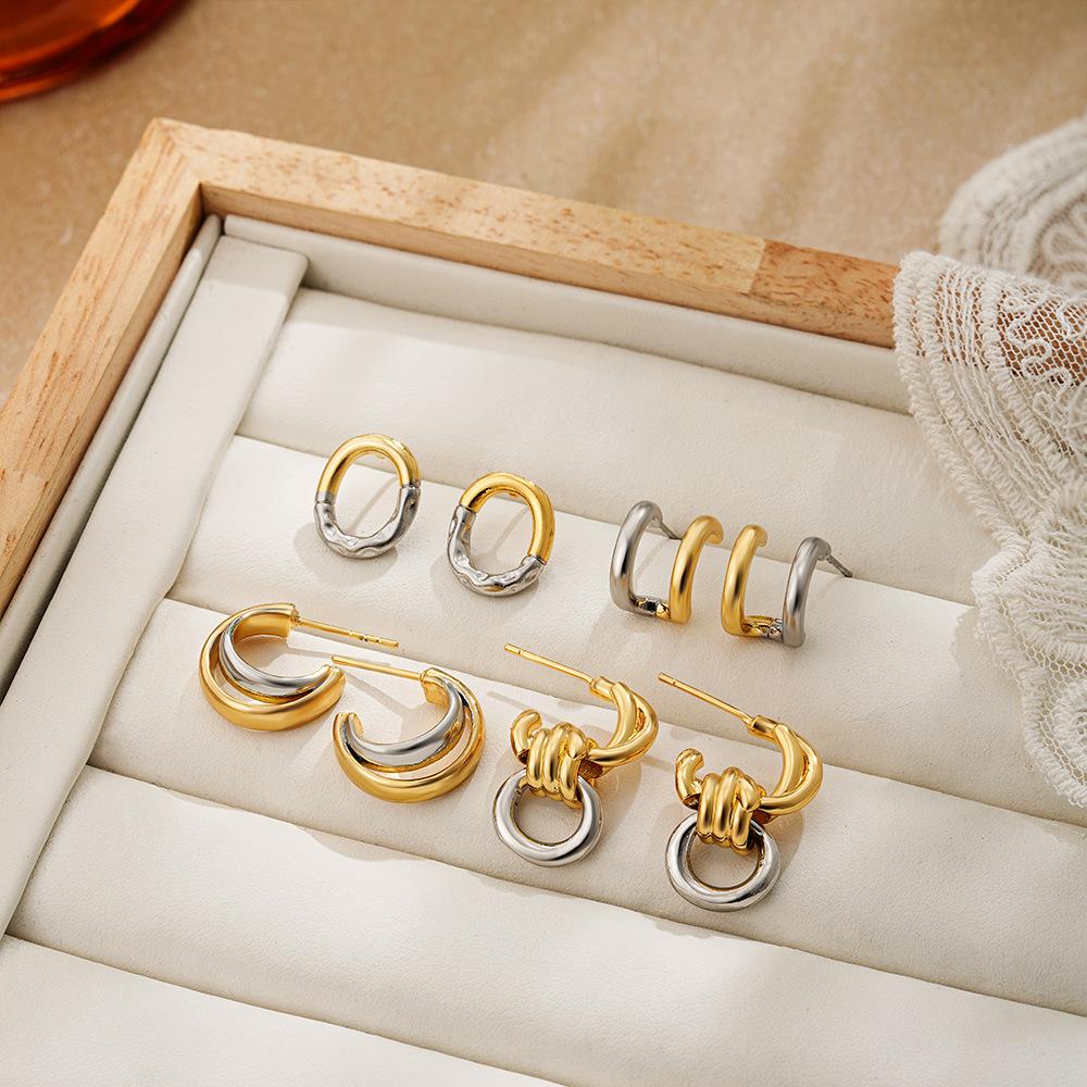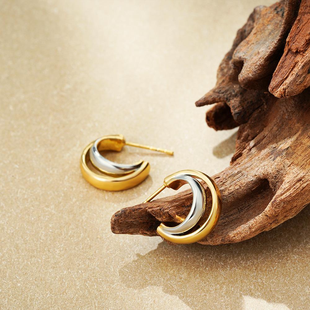 Europa e Estados Unidos transfronteiriço ouro 18k e prata dupla cor contraste irregular cor brincos de enrolamento ouro e prata cor correspondente corda nó círculo C- brincos em forma de
