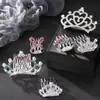 Pente de cabelo de coroa pequena para crianças, pente de strass fofo para meninas, cartão de cabelo de bebê, acessórios de cabelo de coroa para meninas
