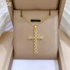 [Aço titânio] Cruz Full Diamond Light Luxo Elegante Lindo Colar Full Diamond Feminino All-match Clavícula Corrente Corrente de Aço Titânio