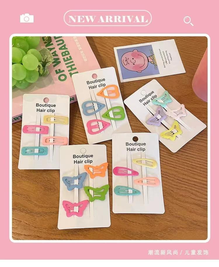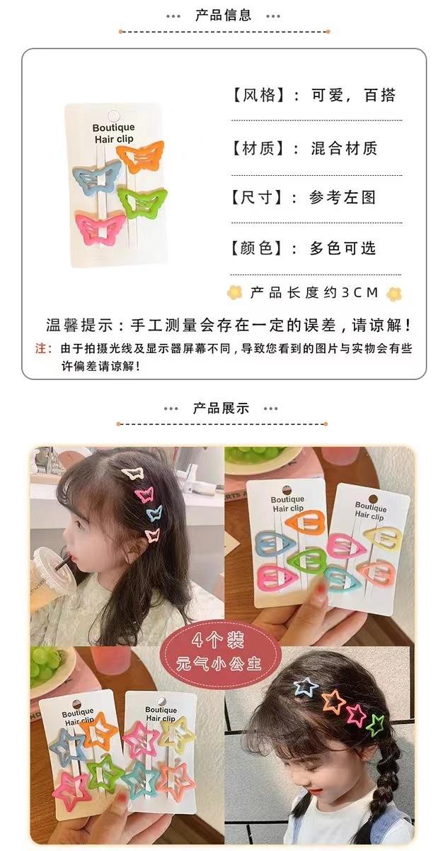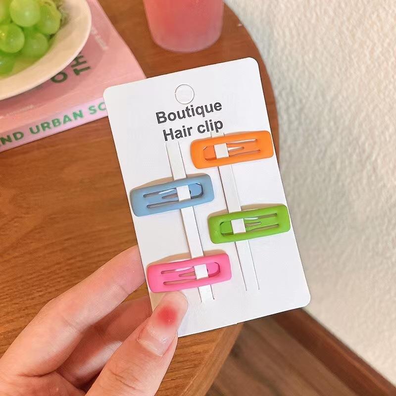 Rectangular frosted orange blue hair clips 4 pack, Rectangular luminous glossy light green and purple hair cli...