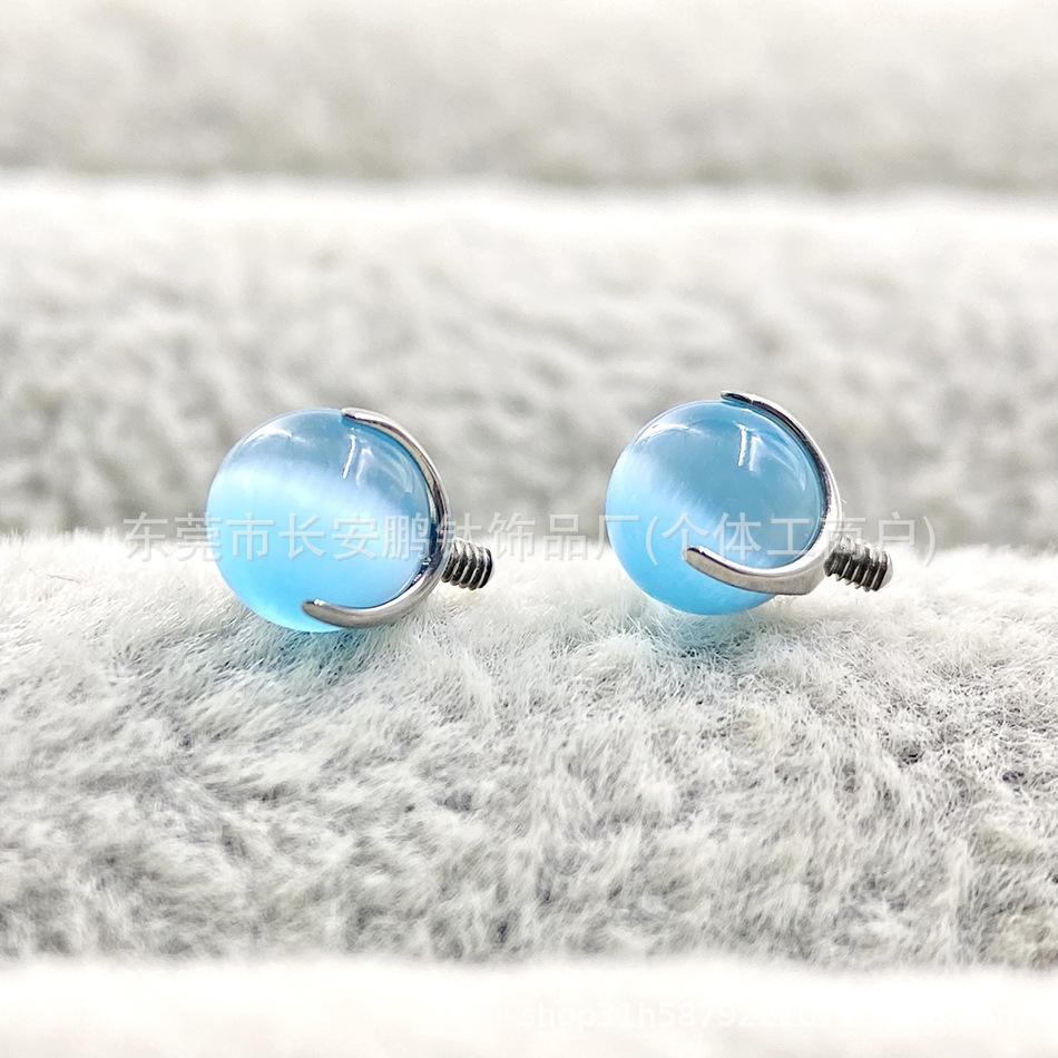 Astm F-136 Brincos de bola de olho de gato de três garras de titânio G23 Osso de orelha de olho de gato de titânio Unha Coclear Piercing de unha Jóias