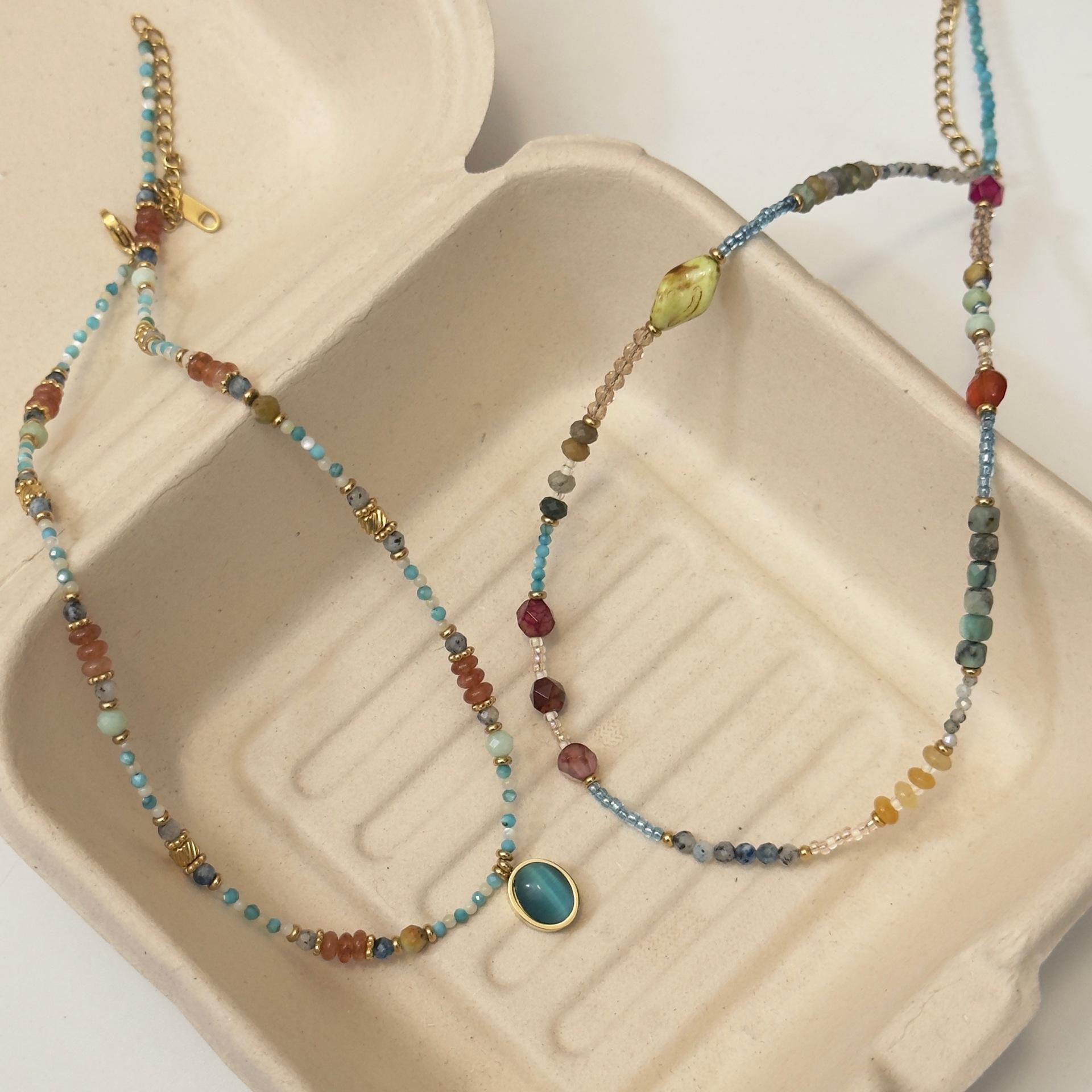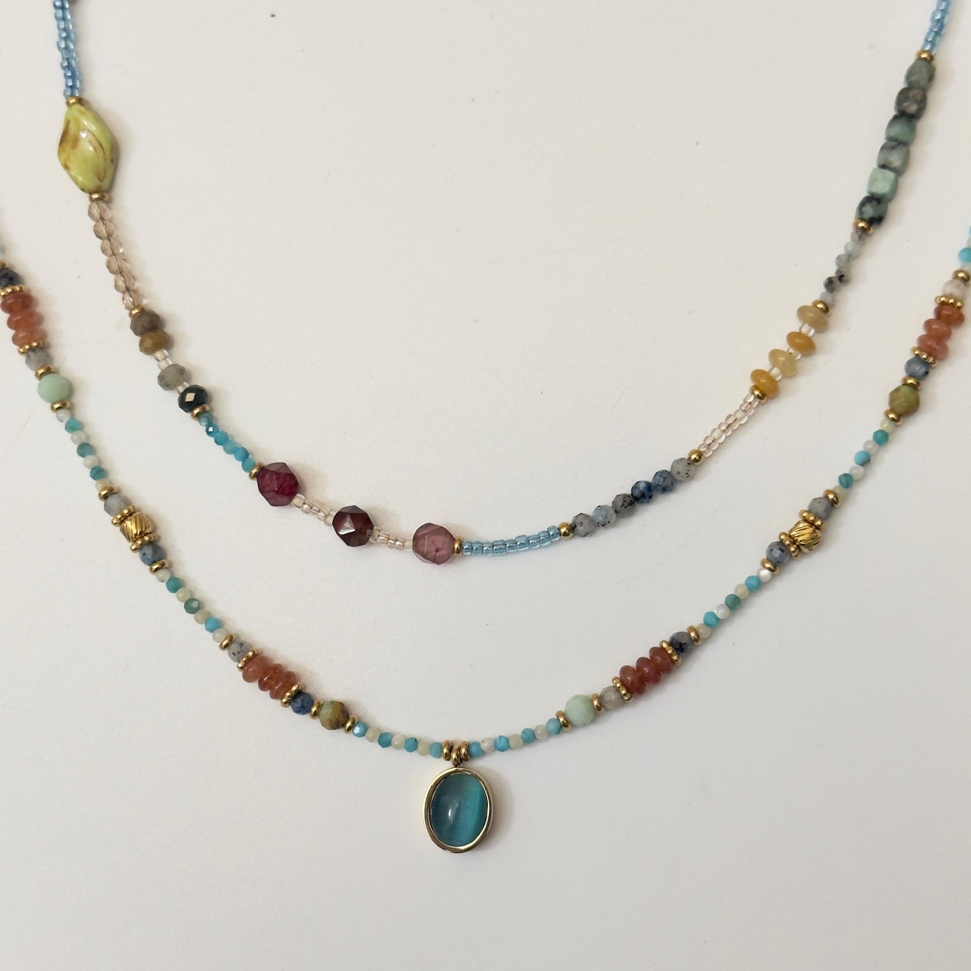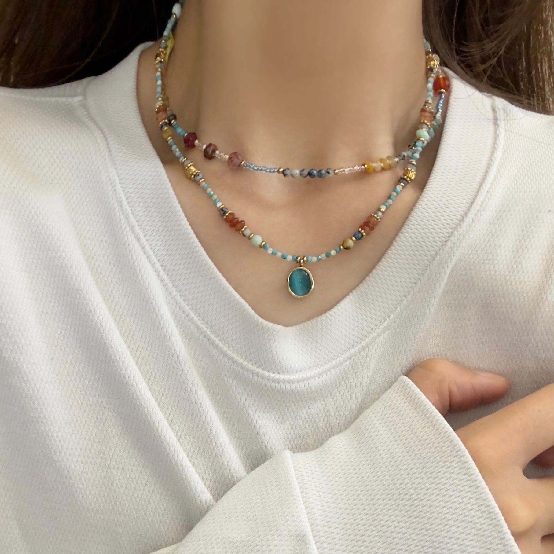 Duobao Pearl Natural Green Stone Red Agate Colar de contas Outono e Inverno Luz Luxo Nicho Chinês Clavícula Pescoço Corrente
