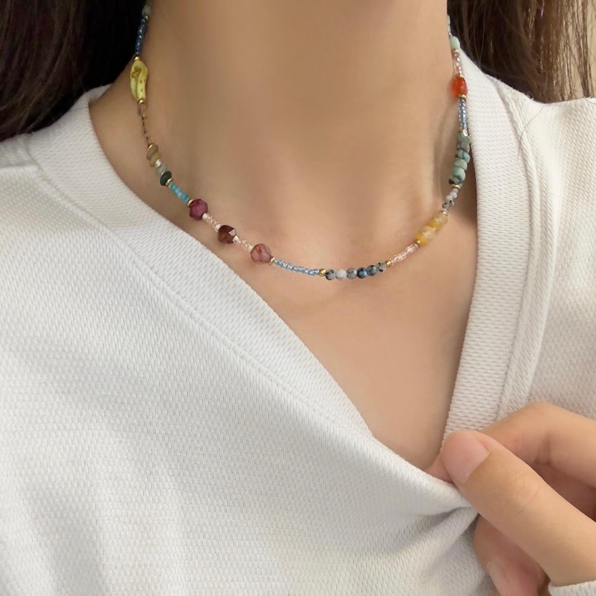 Compre Duobao Pearl Natural Green Stone Red Agate Colar de contas Outono e Inverno Luz Luxo Nicho Chinês Clavícula Pescoço Corrente no atacado no Joom.pro