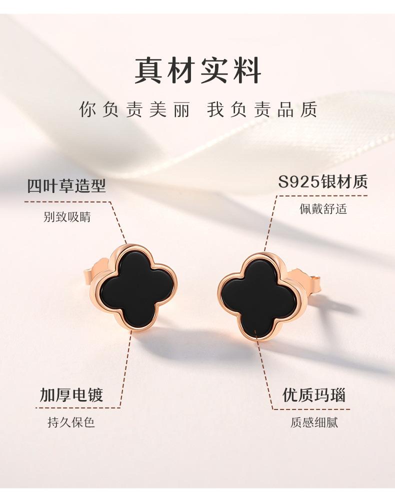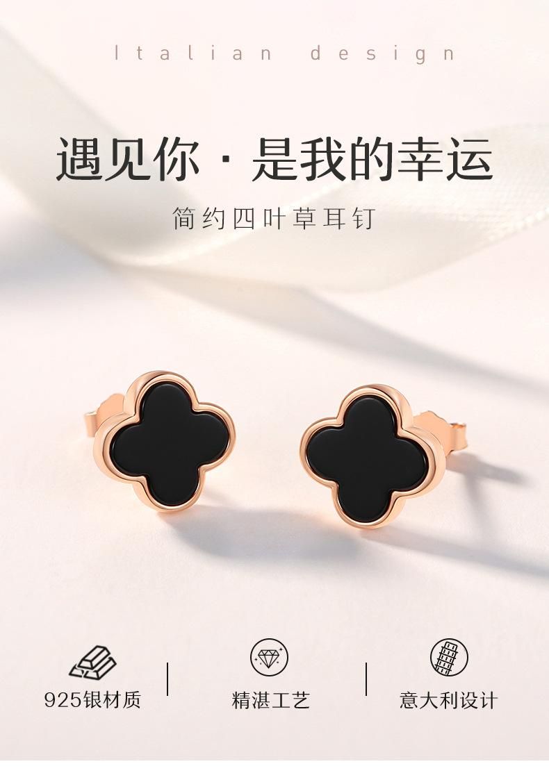 Compre Brincos de trevo de quatro folhas de pedra de ágata de prata esterlina S925, design de nicho feminino, brincos de flor, joias femininas de alta qualidade no atacado no Joom.pro