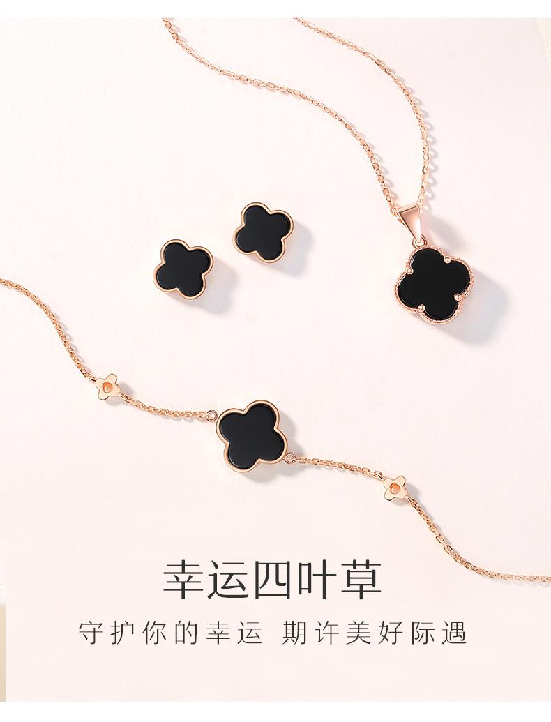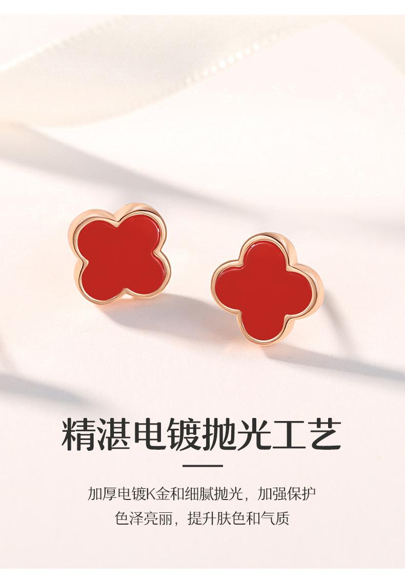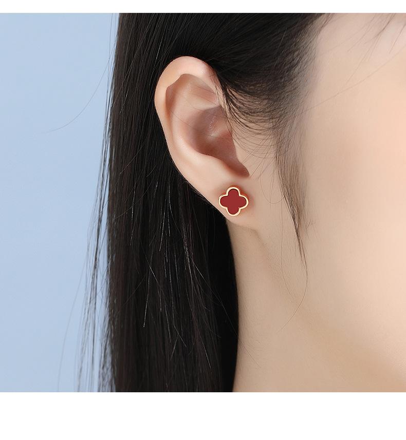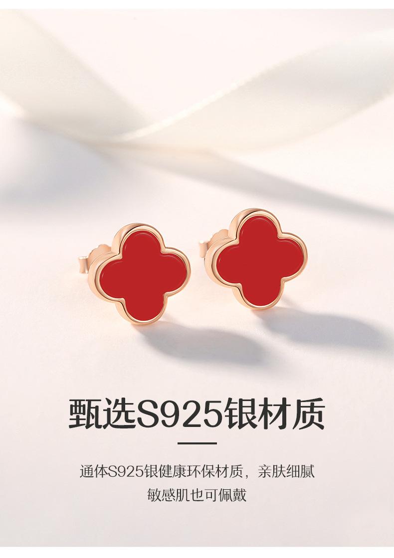 Brincos de trevo de quatro folhas de pedra de ágata de prata esterlina S925, design de nicho feminino, brincos de flor, joias femininas de alta qualidade