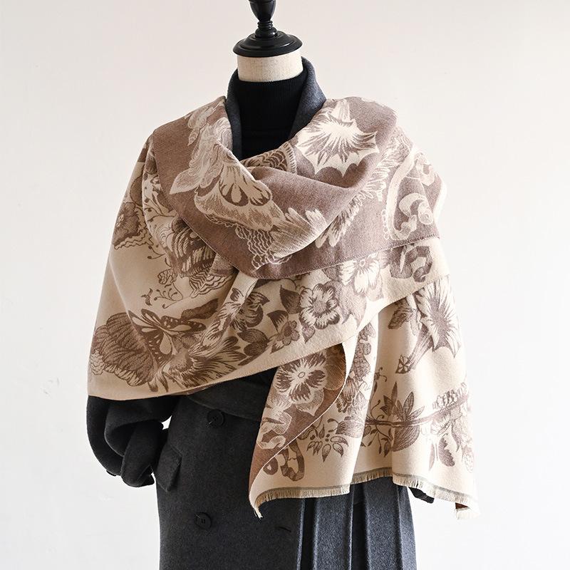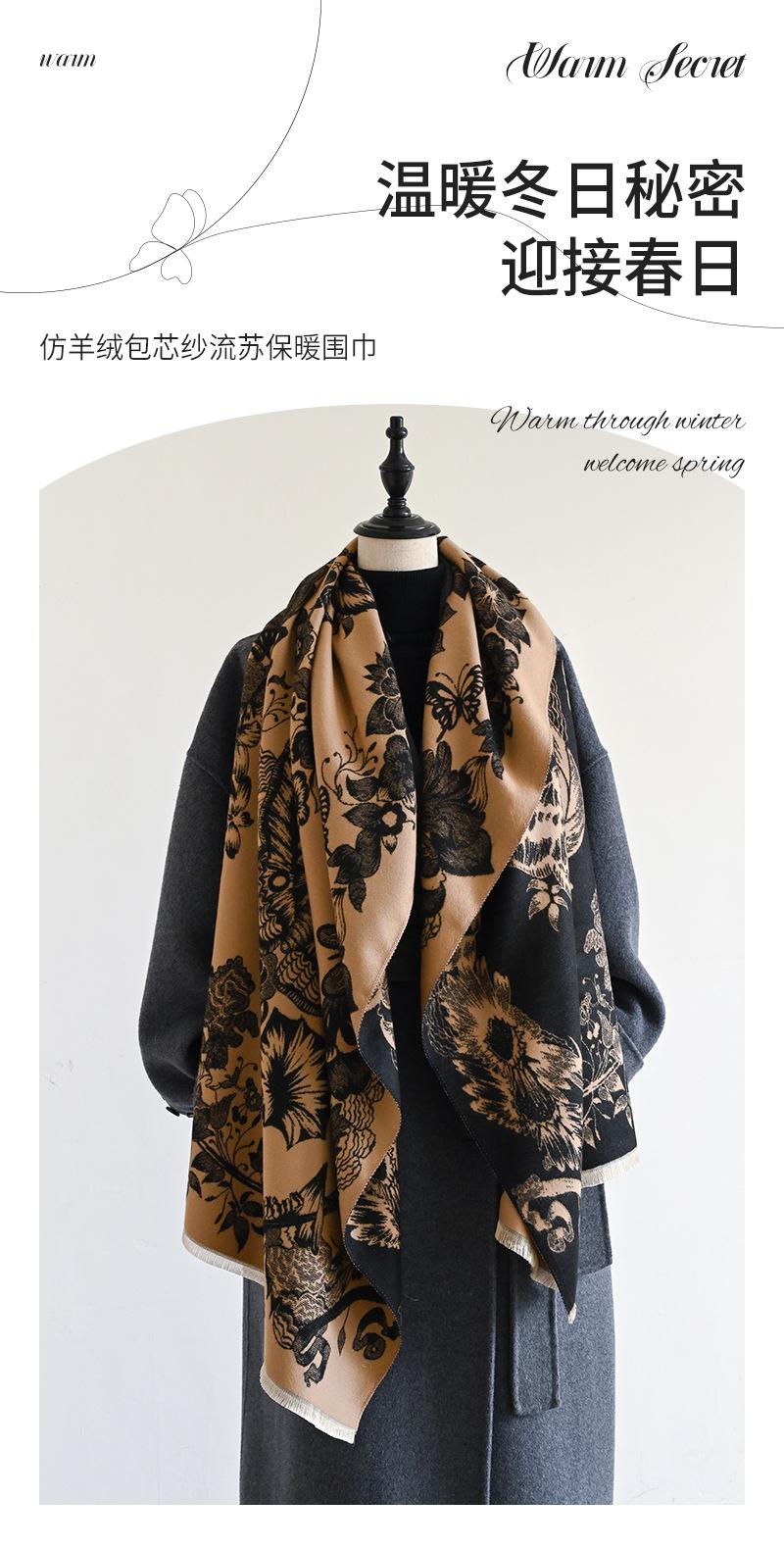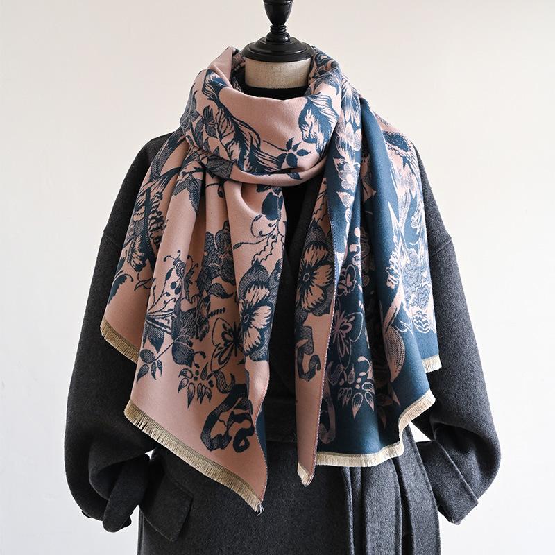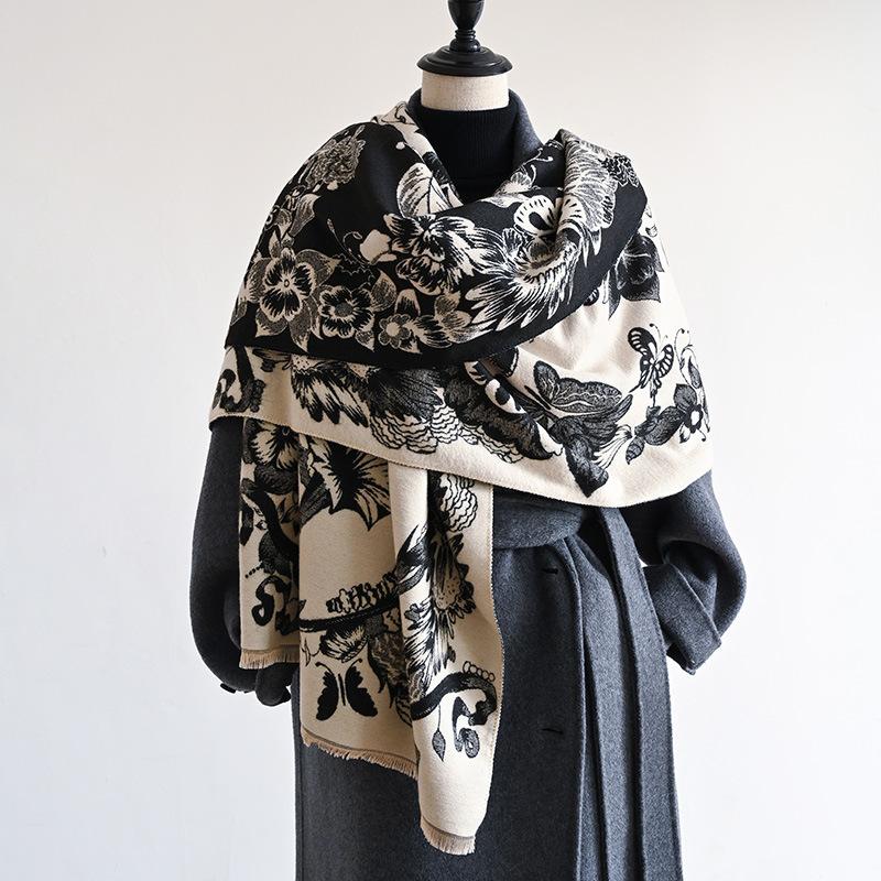 Flores de outono e inverno assombrando borboleta simples caxemira feminina cachecol quente moda all-match longo xale capa