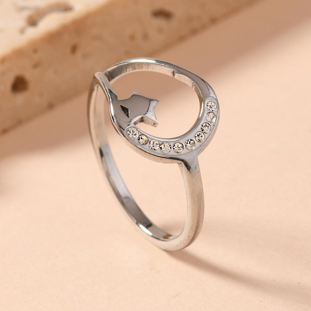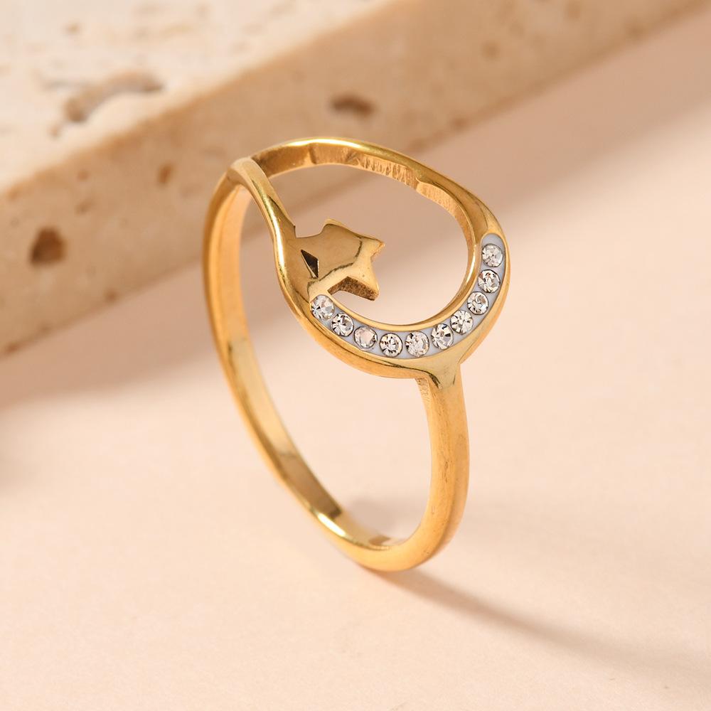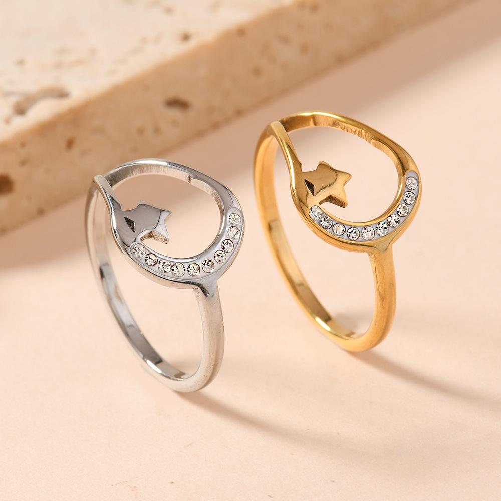 Anel de moda coreano feminino, anel de diamante com corte simples, estrela e lua, design de nicho, anel de casal