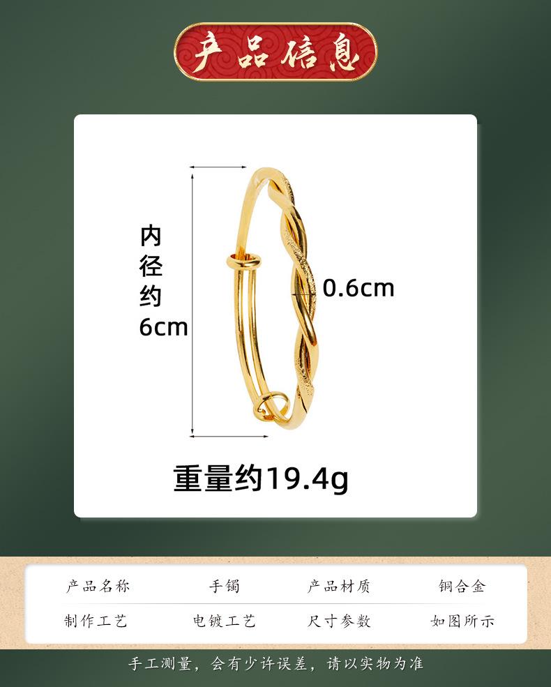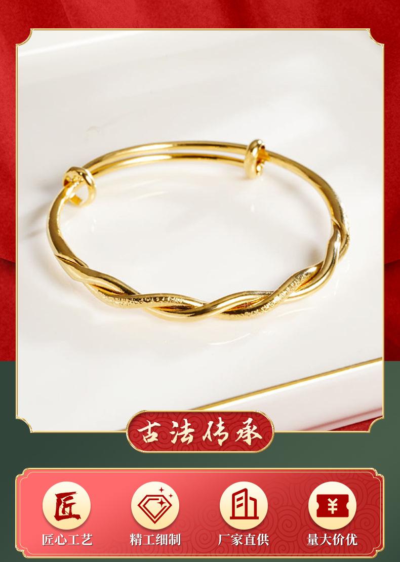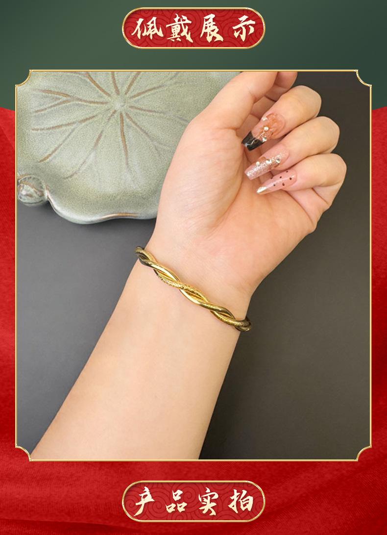 Pulseira de ouro chinês com areia vietnamita antiga, torção de vento, suave, fosca, push-pull, temperamento, joias simples de alta qualidade