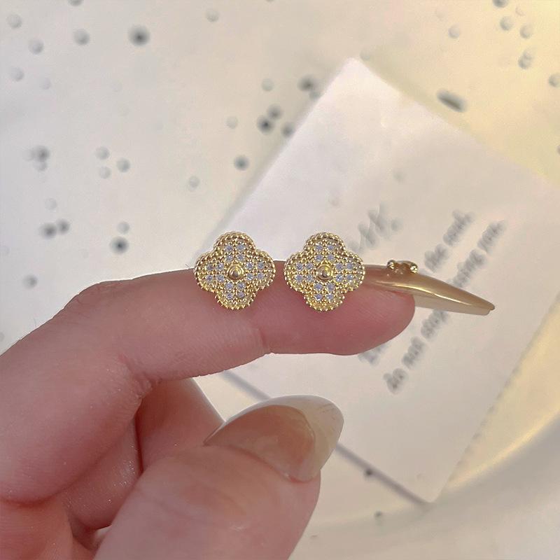 Compre Brincos de flor de diamante completo ~ Brincos de luxo leves avançados 2024 Novo design de nicho Brincos de celebridades da Internet da moda para mulheres no atacado no Joom.pro