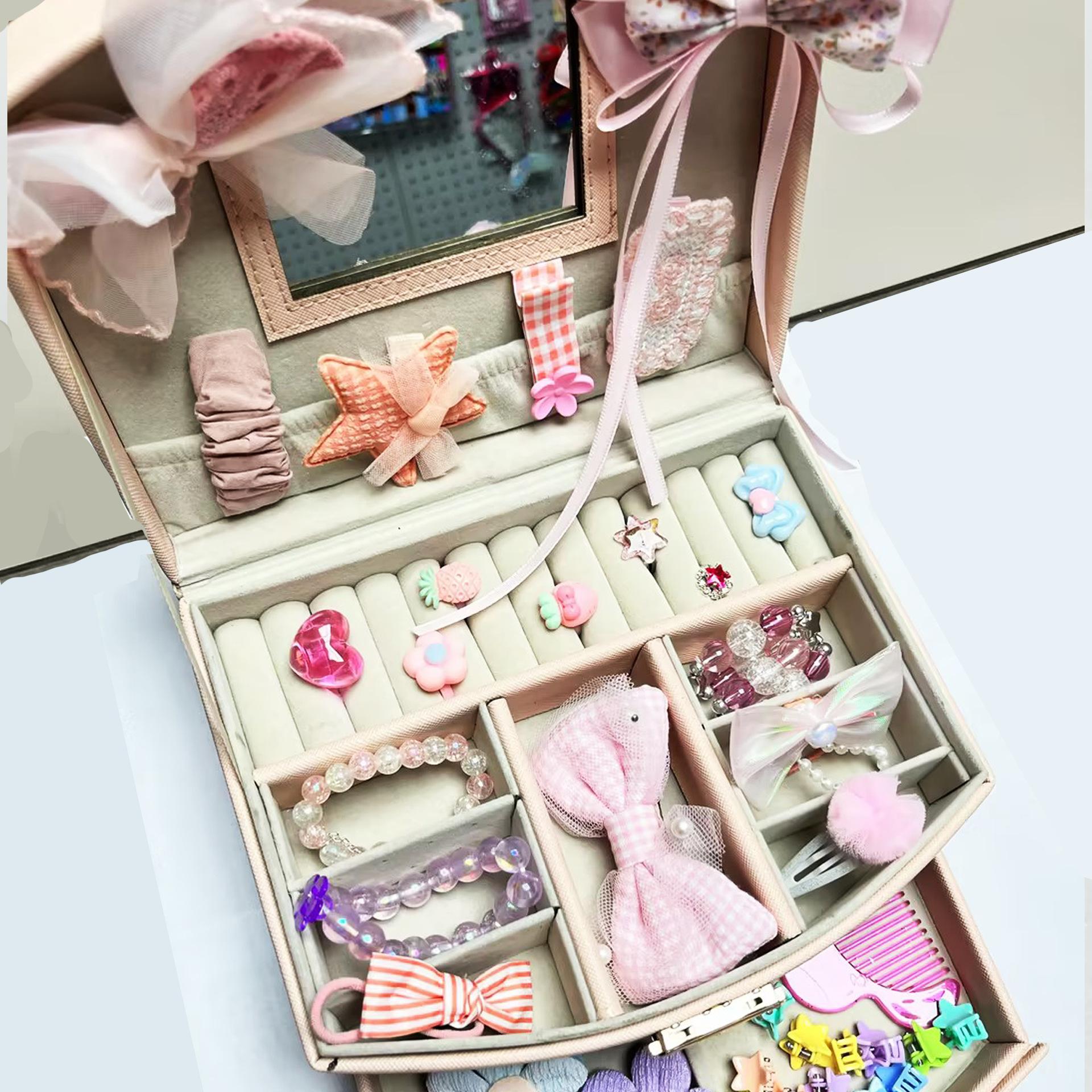 Conjunto Caixa de Presente Acessórios de Cabelo Infantil Pequeno Elástico Coroa Grampo de Cabelo Acessórios de Cabelo de Princesa Caixa de Armazenamento de Joias para Menina