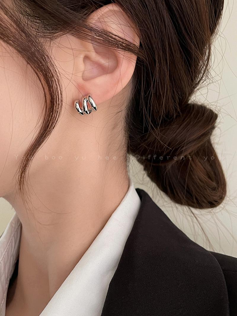 Compre Brincos de metal multicamadas estilo frio femininos de alta qualidade senso de nicho brincos exclusivos temperamento simples design pequeno senso brincos no atacado no Joom.pro