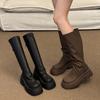 Botas elásticas, sola grossa, botas finas, botas altas, femininas, outono 2024, novo estilo britânico, pequenas botas altas de cavaleiro