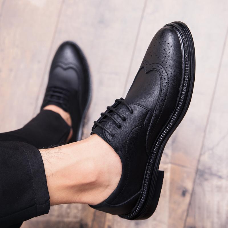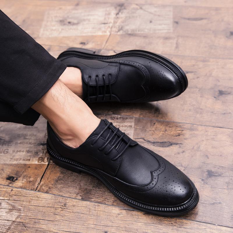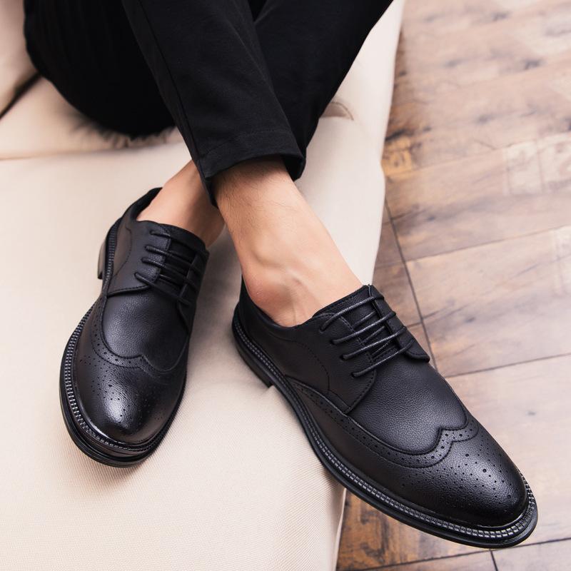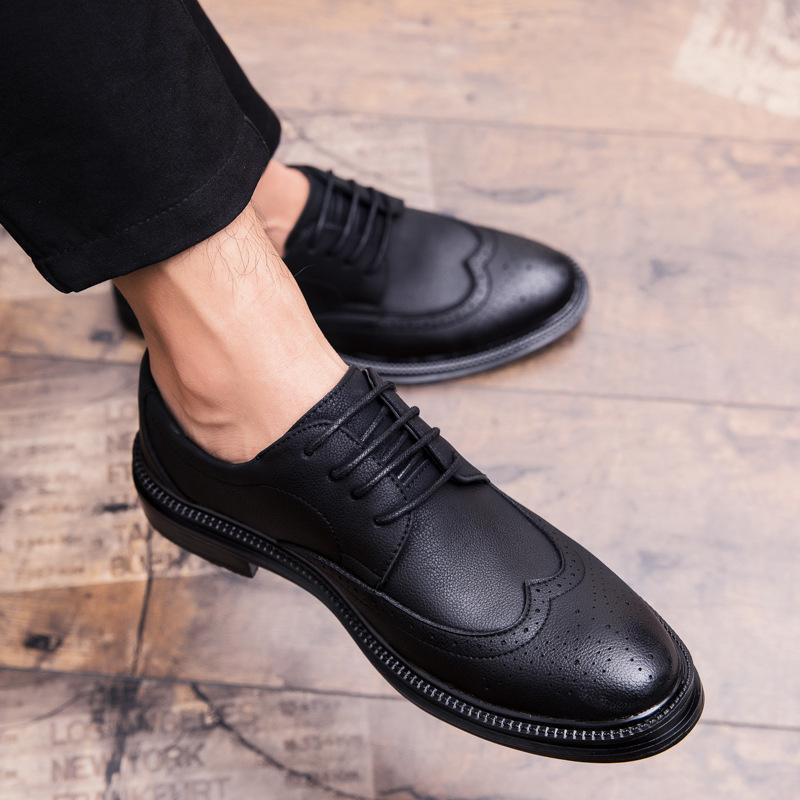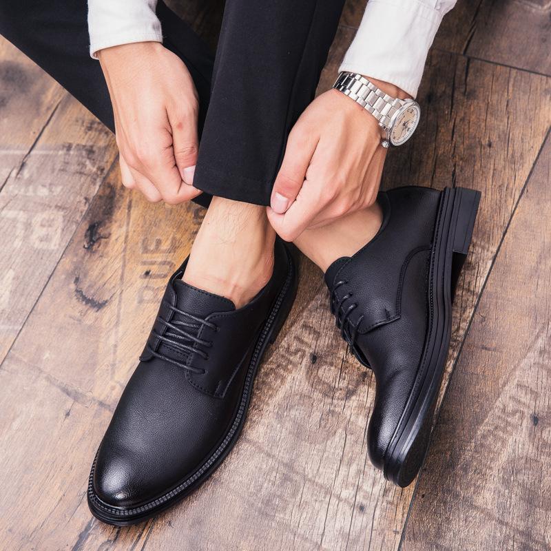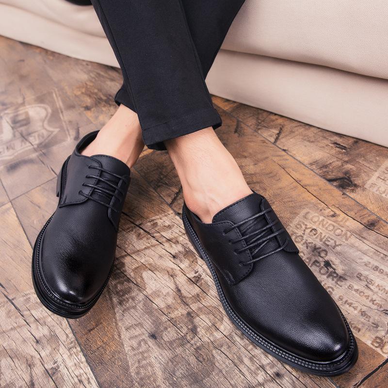 Sapatos masculinos de couro para negócios no verão de 2020, sapatos masculinos pretos casuais, estilo coreano formal, respiráveis, da moda, sapatos de couro, sapatos masculinos