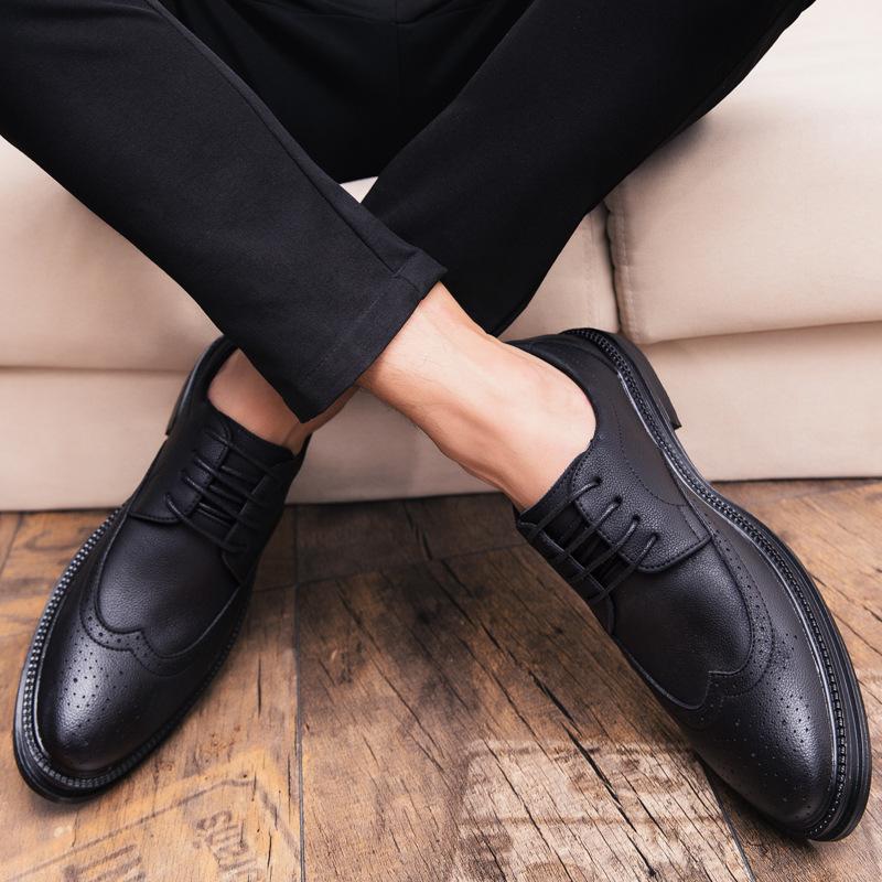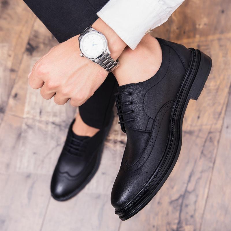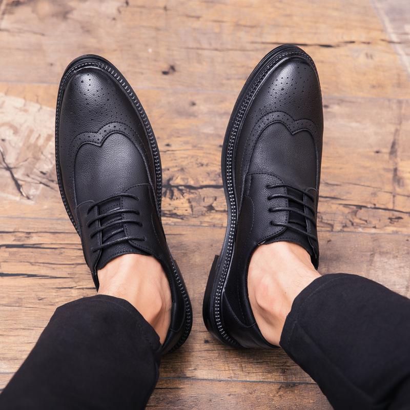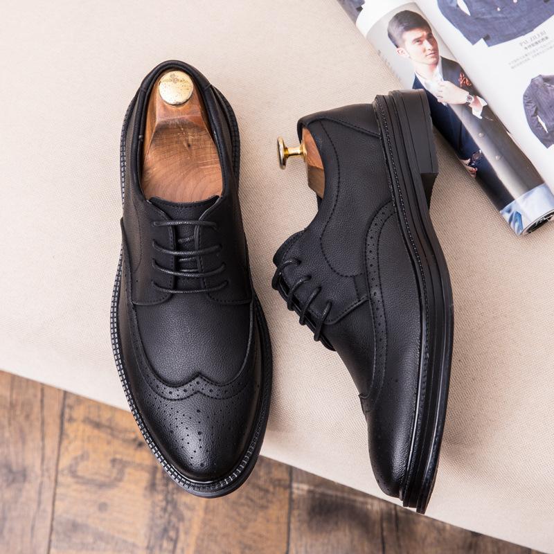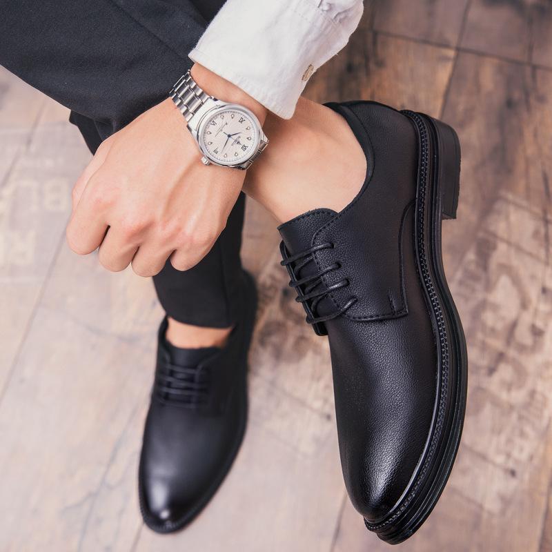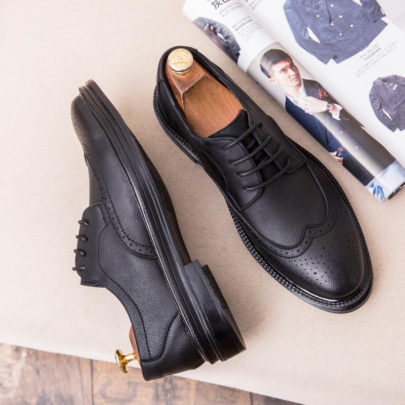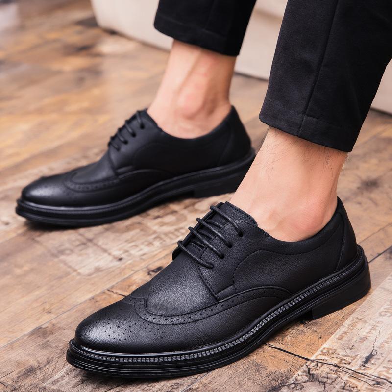 Sapatos masculinos de couro para negócios no verão de 2020, sapatos masculinos pretos casuais, estilo coreano formal, respiráveis, da moda, sapatos de couro, sapatos masculinos