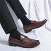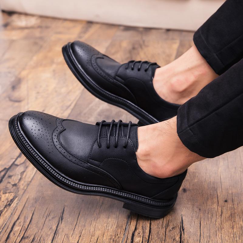 Verão 2024 Sapatos Sociais de Couro Masculinos Sapatos Casuais da Moda Masculina Pretos Formais Estilo Coreano Sapatos Transpiráveis da Moda Sapatos de Couro Sapatos Masculinos