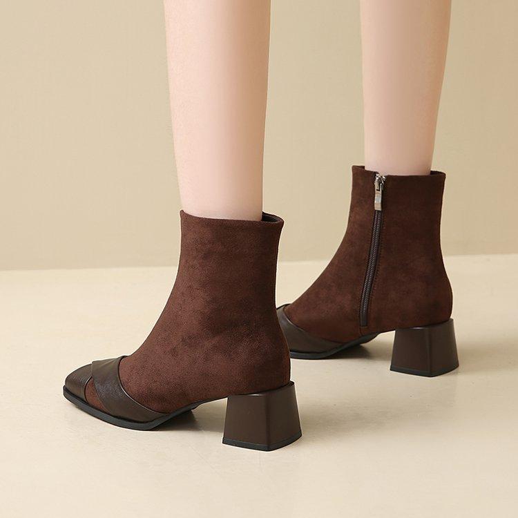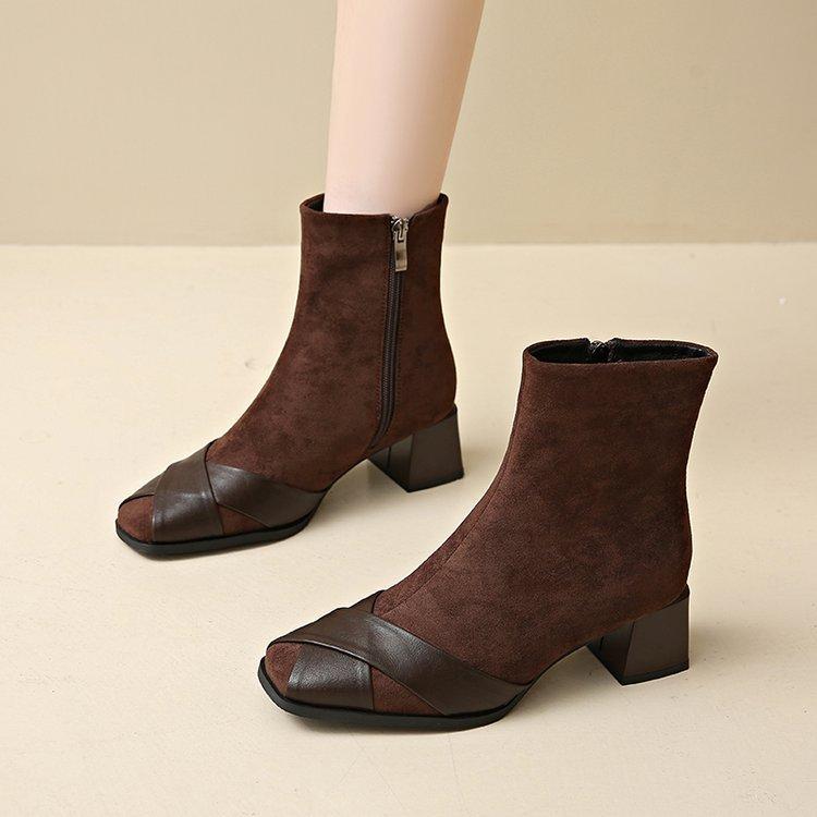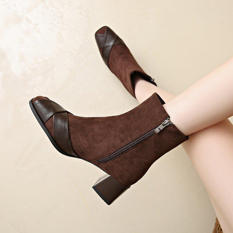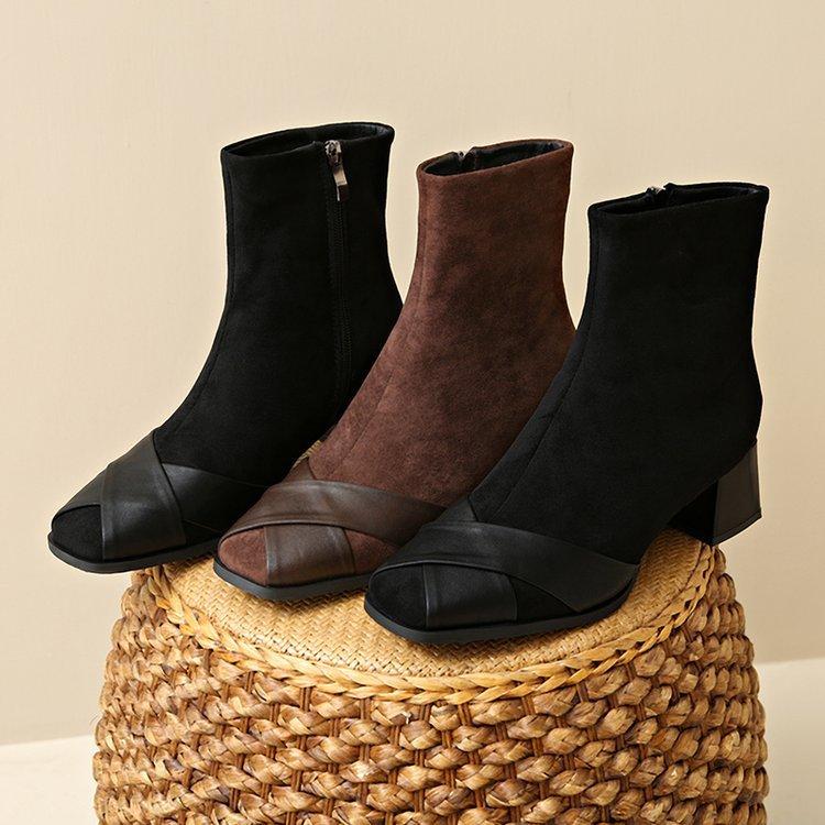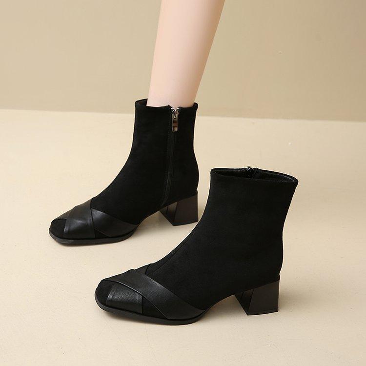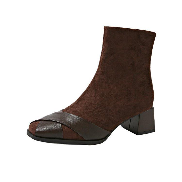Compre Botas Martin Botas Curtas Femininas com Zíper Lateral Inverno Novo 2024 Estilo Fada Salto Grosso Salto Médio Botas da Moda 5cm no atacado no Joom.pro