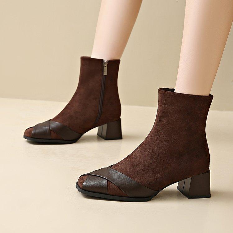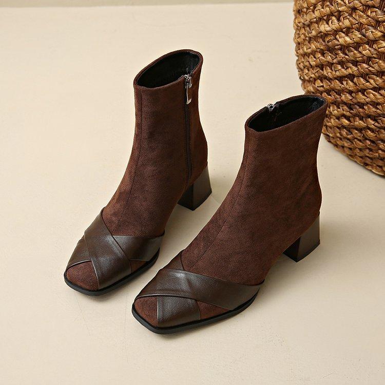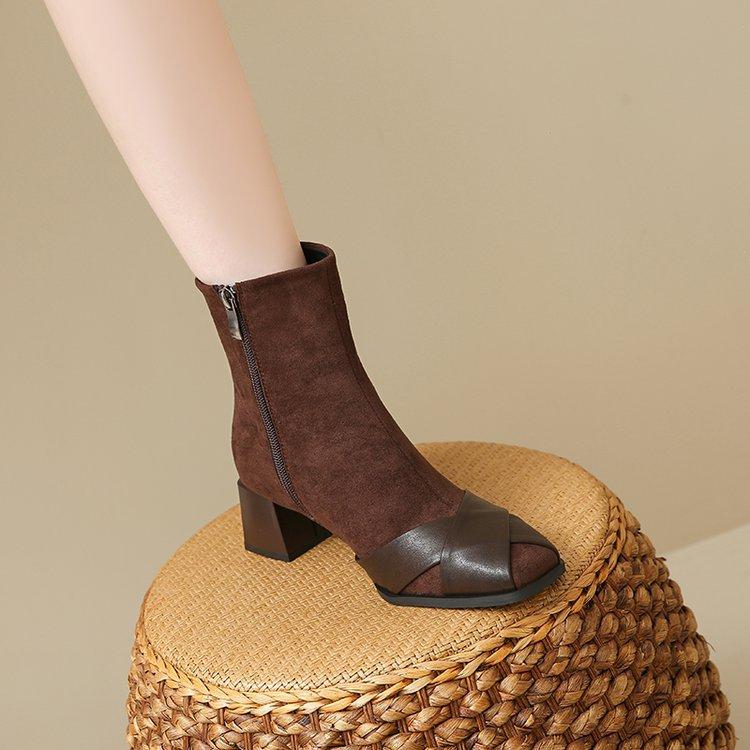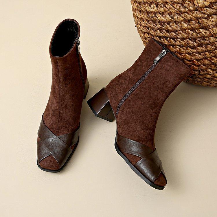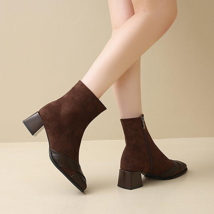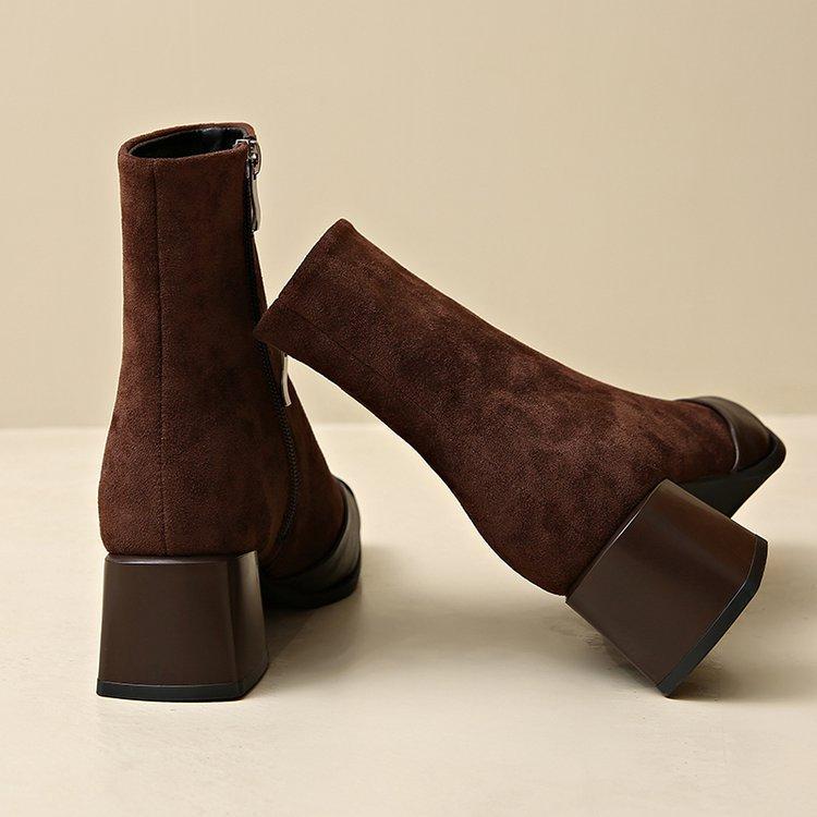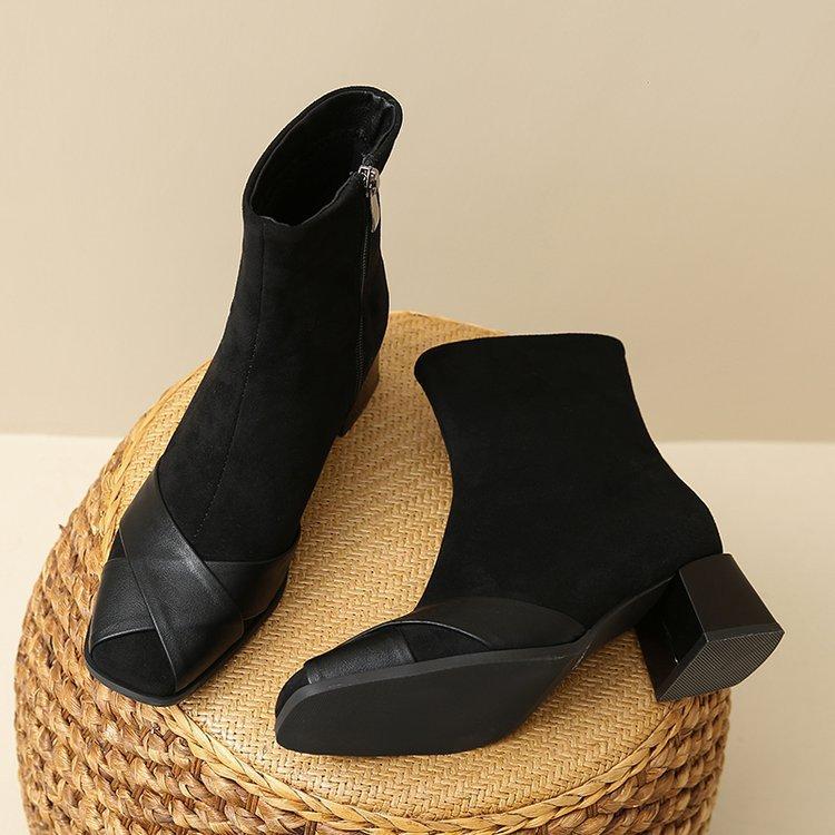 Compre Botas Martin Botas Curtas Femininas com Zíper Lateral Inverno Novo 2024 Estilo Fada Salto Grosso Salto Médio Botas da Moda 5cm no atacado no Joom.pro