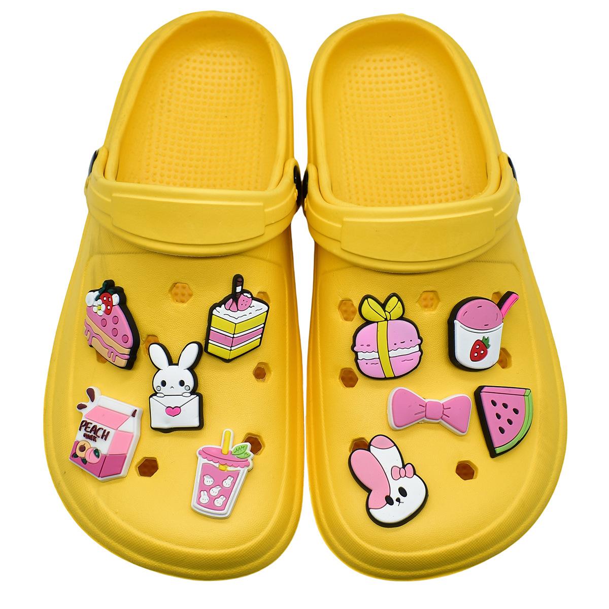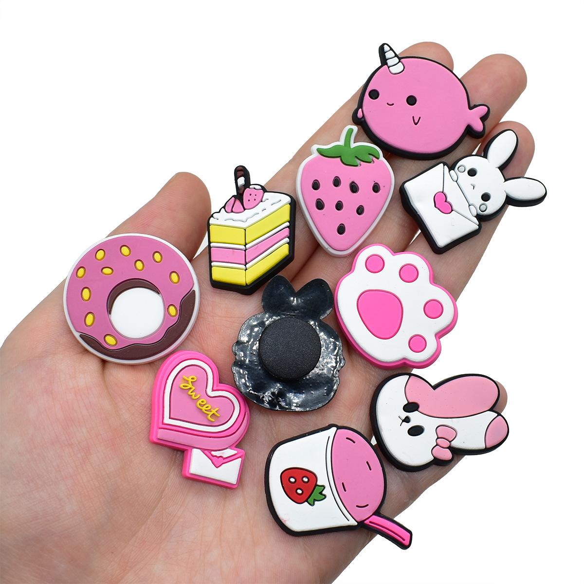 Bonito Rosa Sapatos Sapatos Flor Sapatos Fivela PVC Borracha Macia Destacável Dos Desenhos Animados Sapatos De Jardim Fivela DIY Acessórios