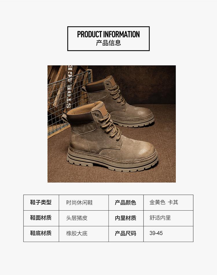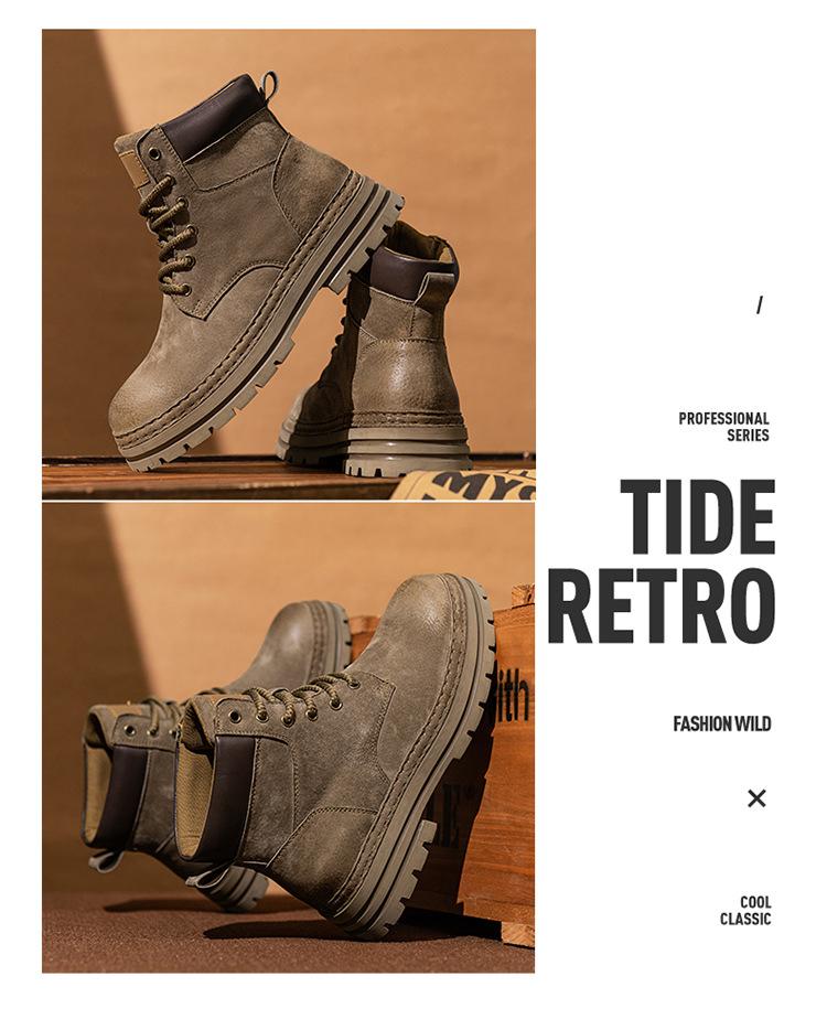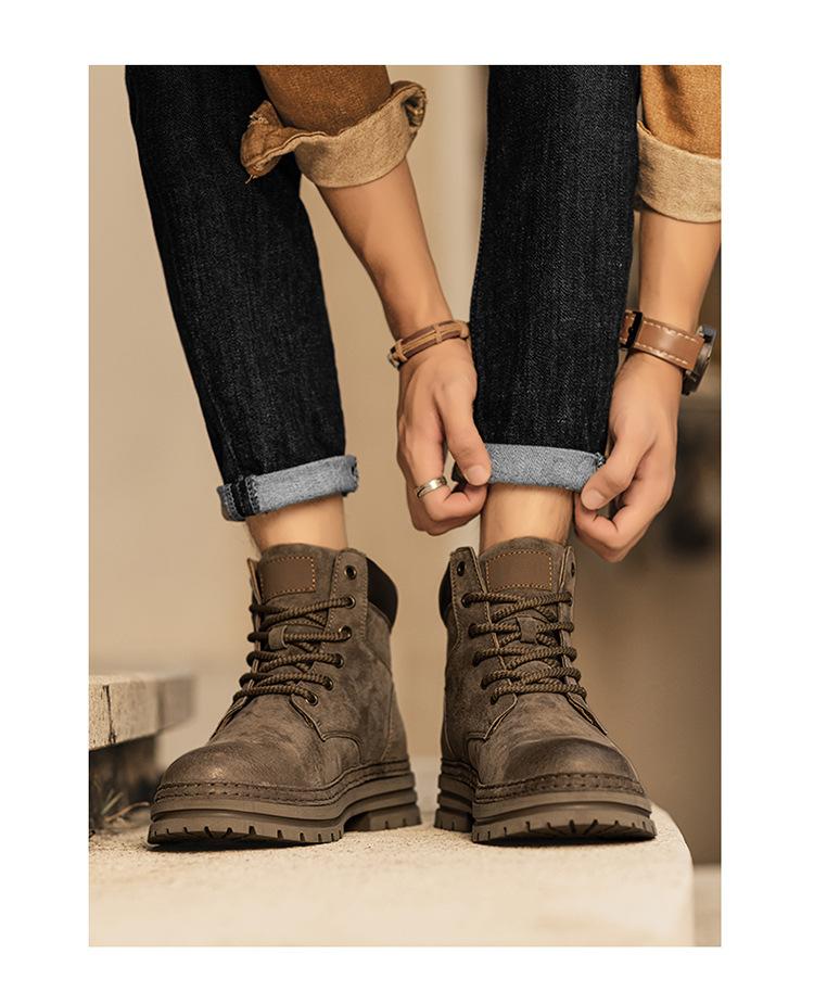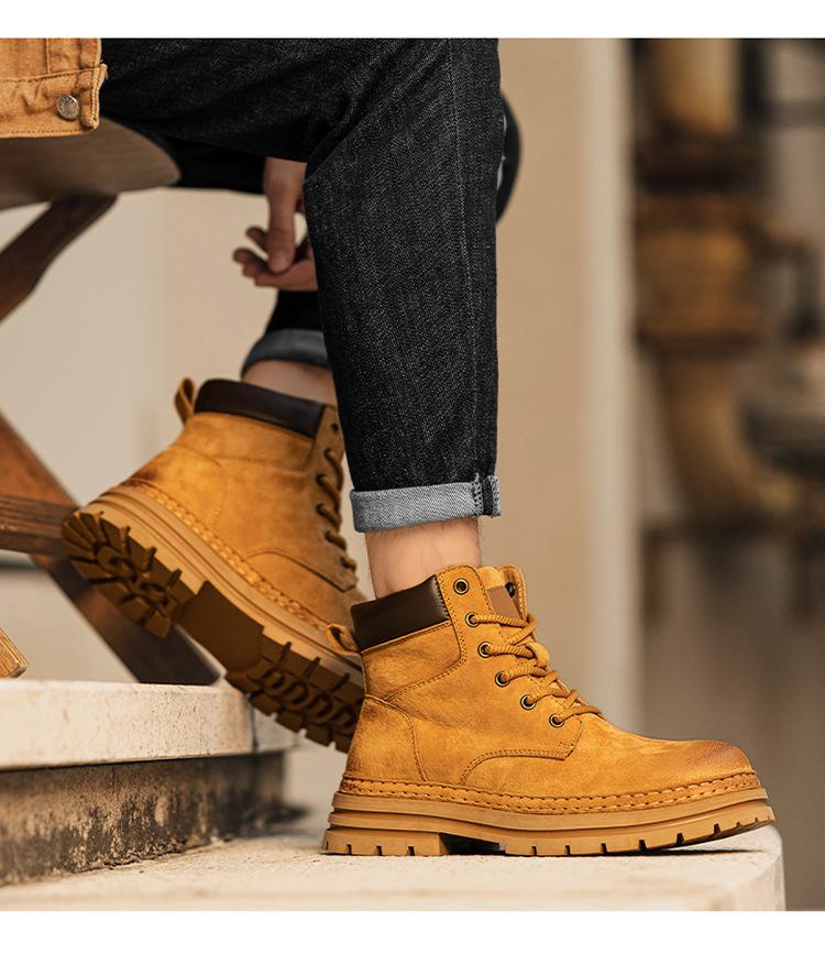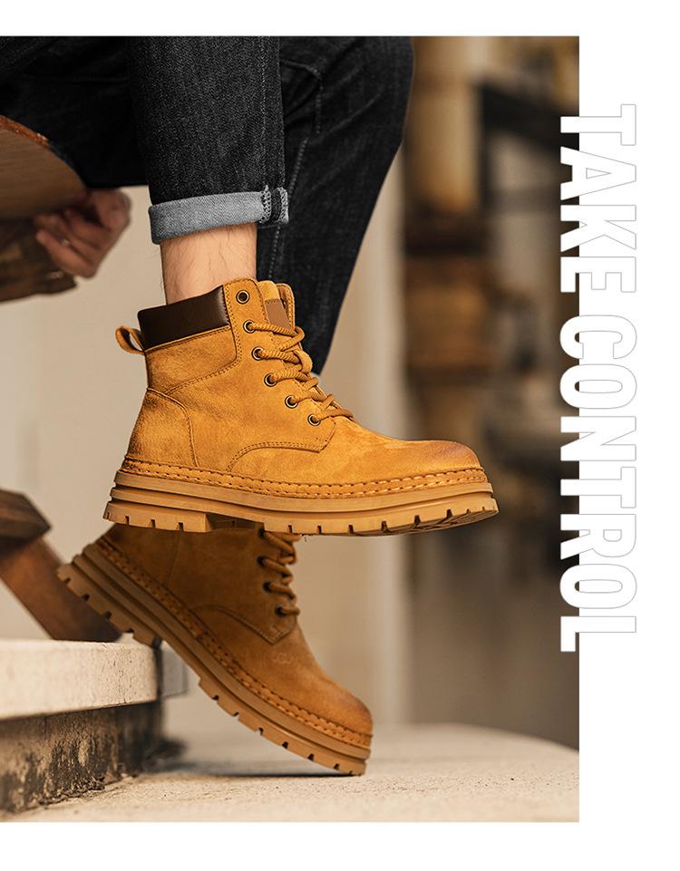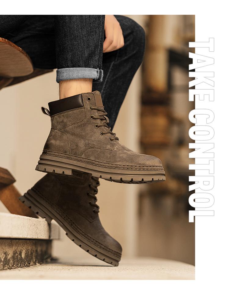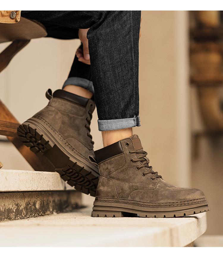 2024 Comércio Exterior Mais Vendido Martin Botas Novas Outono Couro Genuíno Masculino Ao Ar Livre Casual Altura Aumentando Sola Grossa Ferramentas Sapatos Masculinos